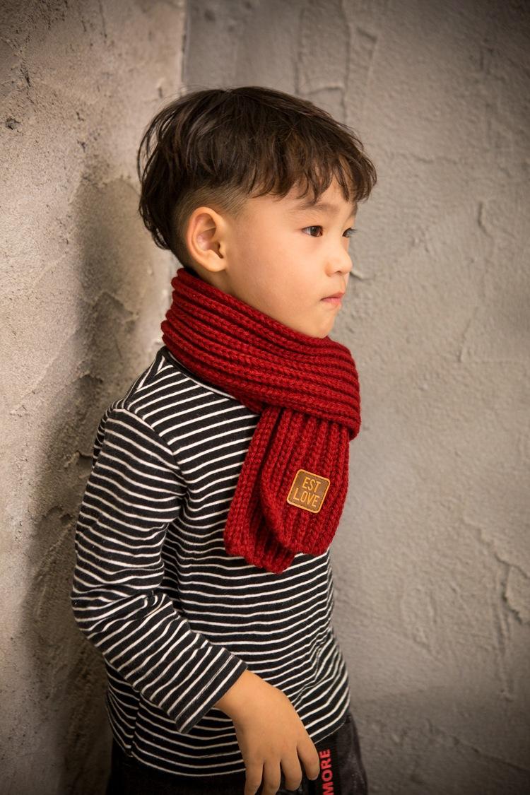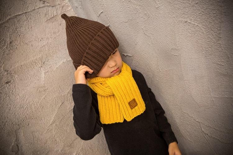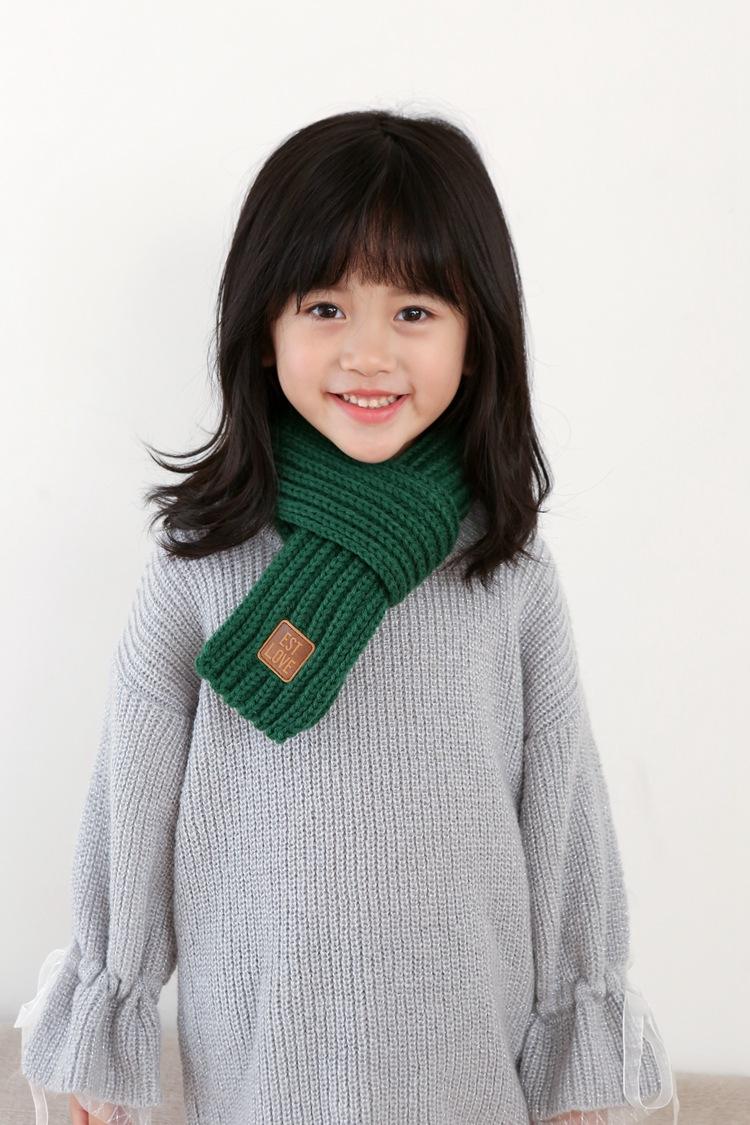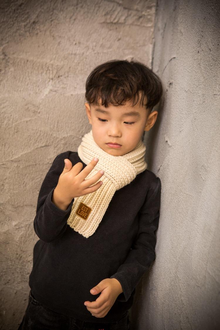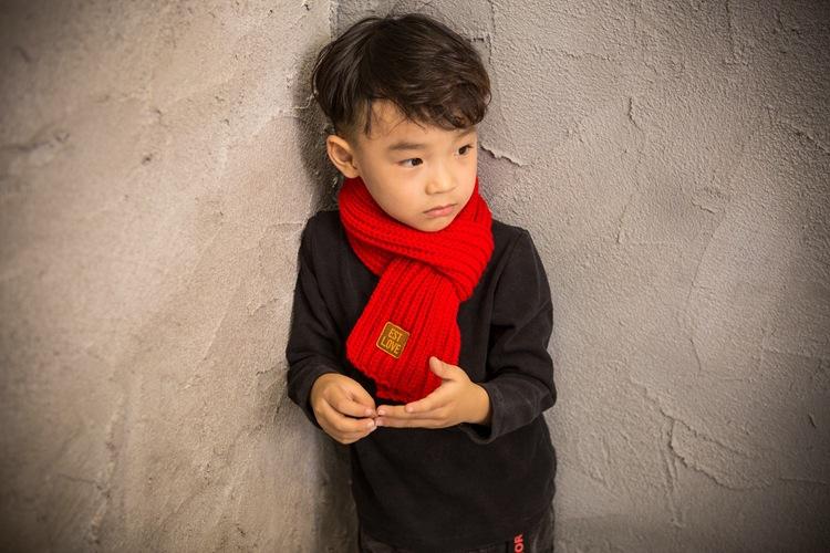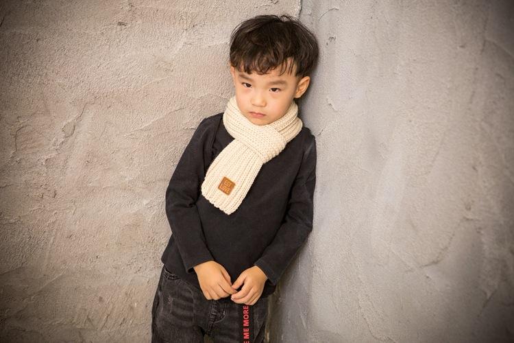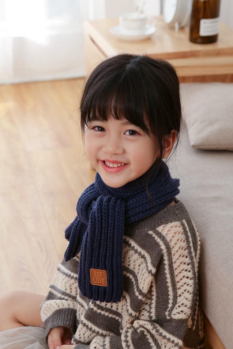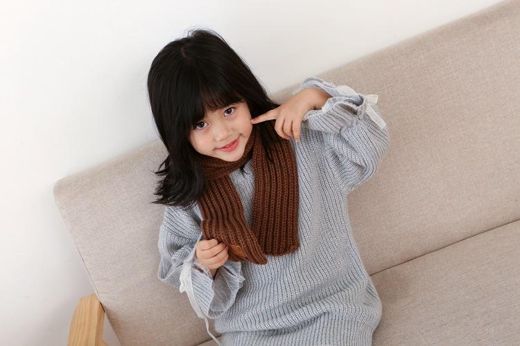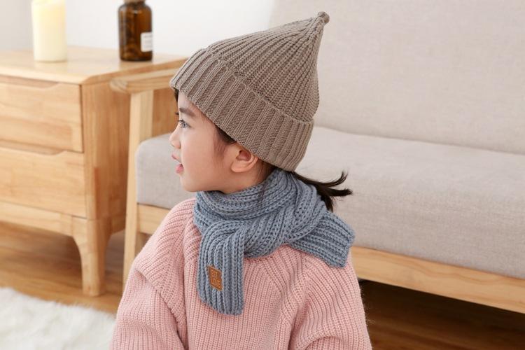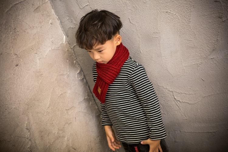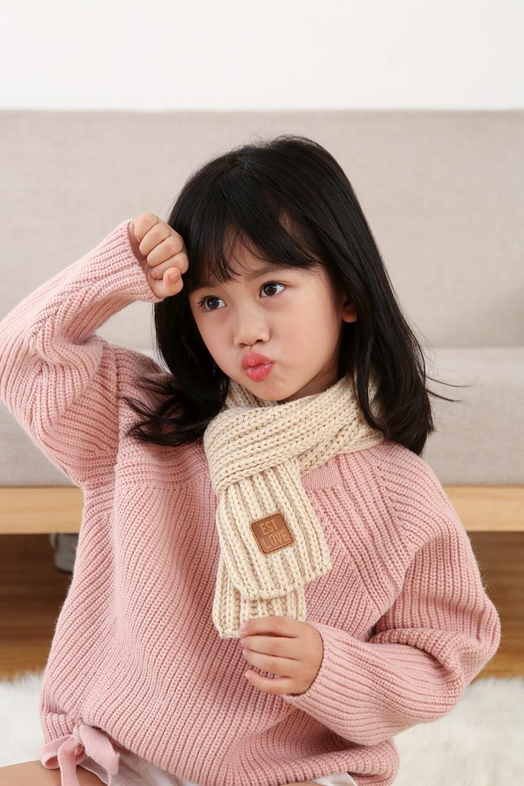 Bufanda cálida de punto para niños de estilo coreano, etiqueta de cuero de invierno, bufanda de lana para bebés, bufanda de invierno para padres e hijos.