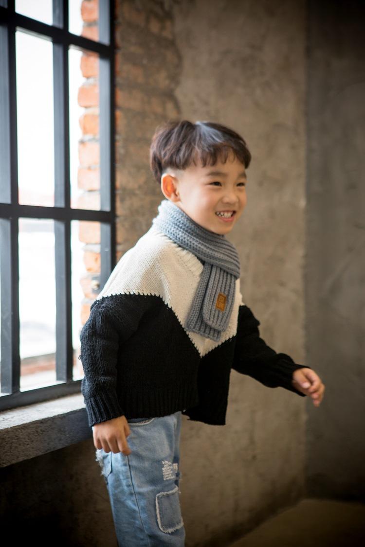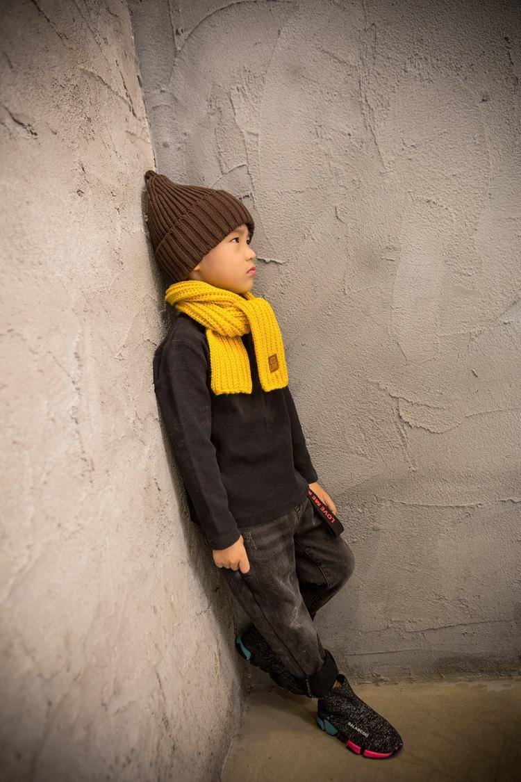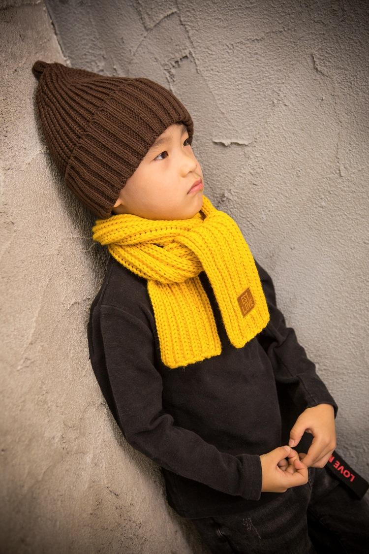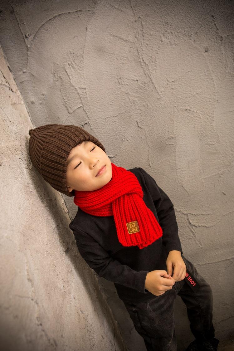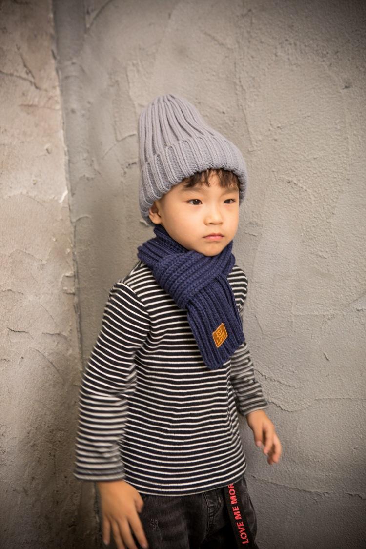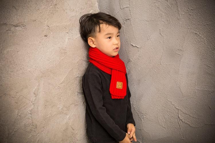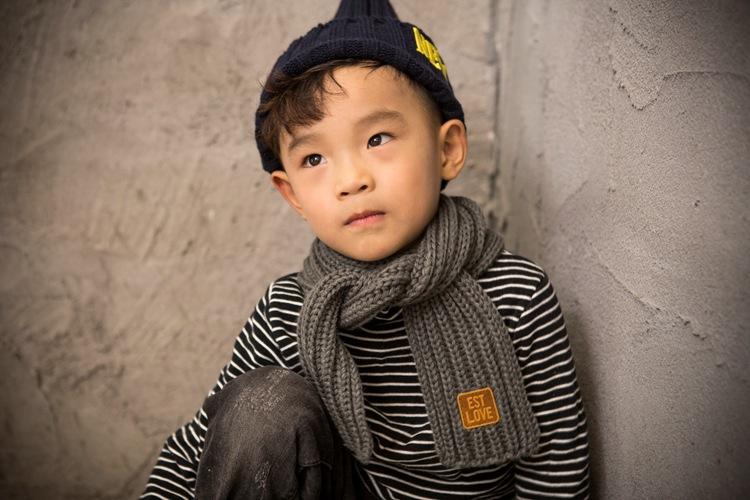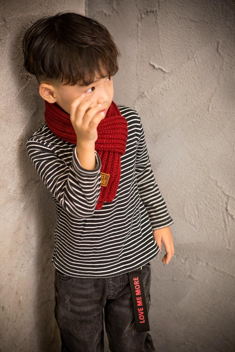 Bufanda cálida de punto para niños de estilo coreano, etiqueta de cuero de invierno, bufanda de lana para bebés, bufanda de invierno para padres e hijos.