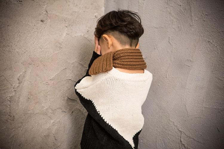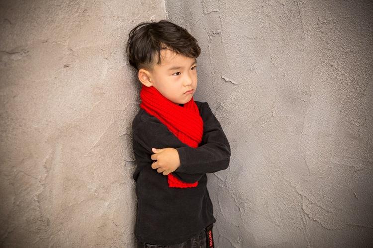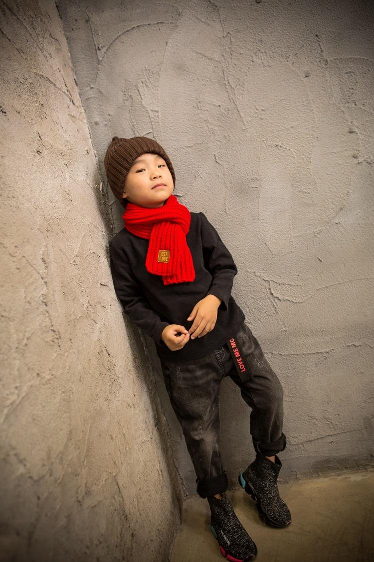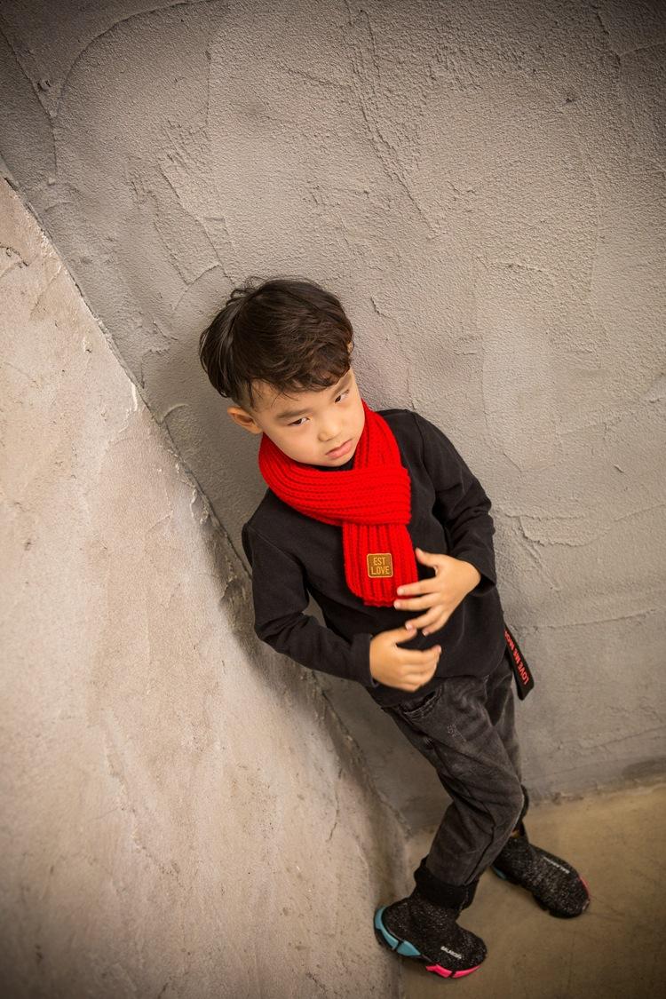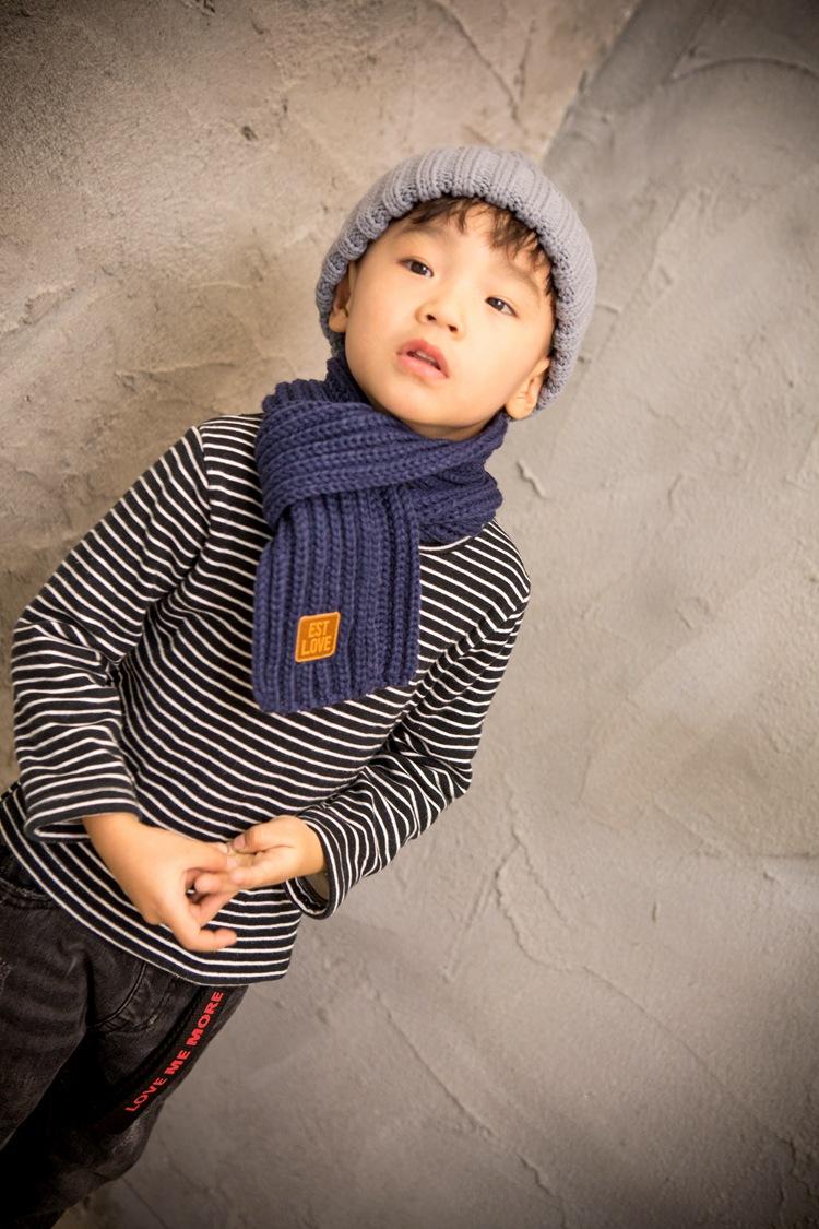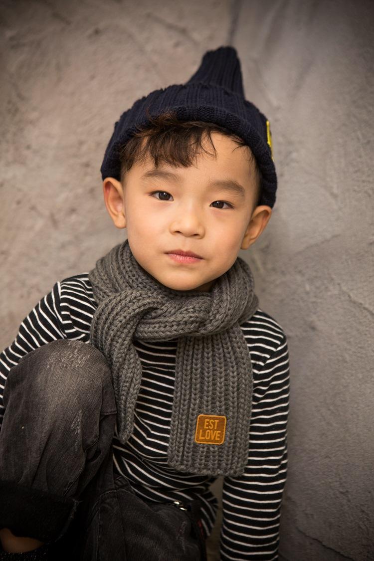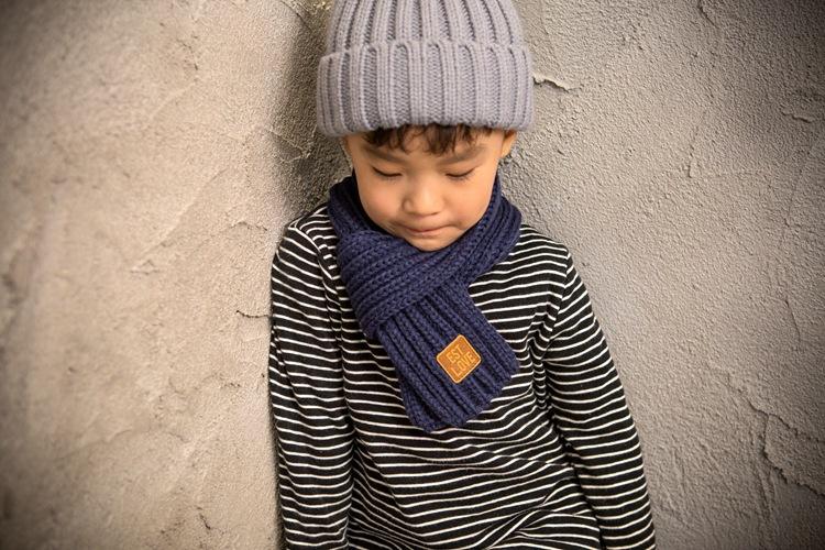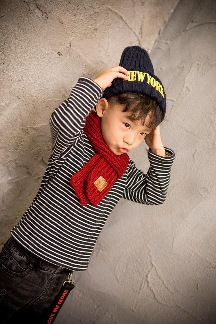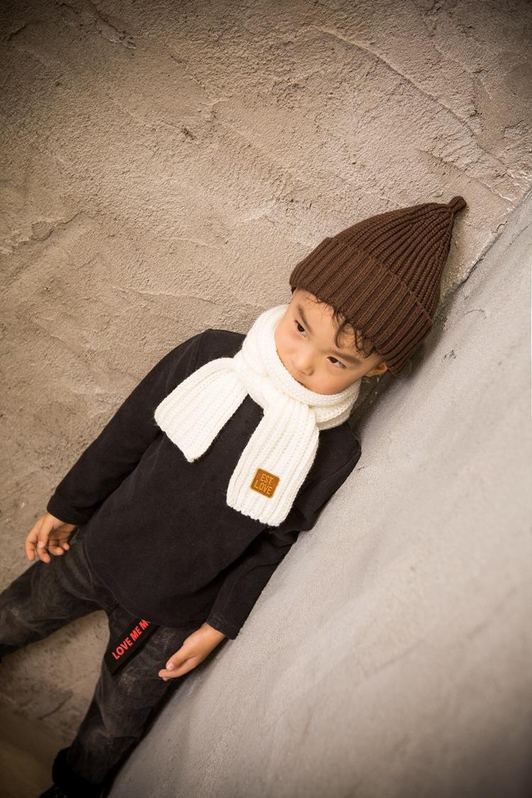Bufanda cálida de punto para niños de estilo coreano, etiqueta de cuero de invierno, bufanda de lana para bebés, bufanda de invierno para padres e hijos.