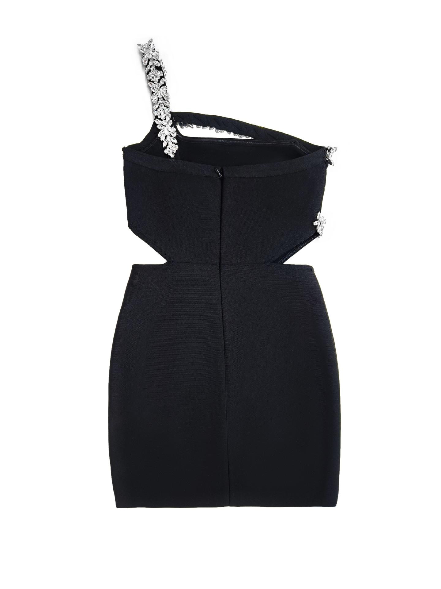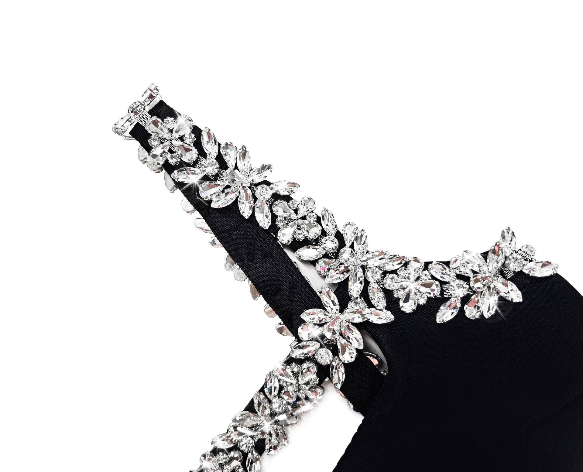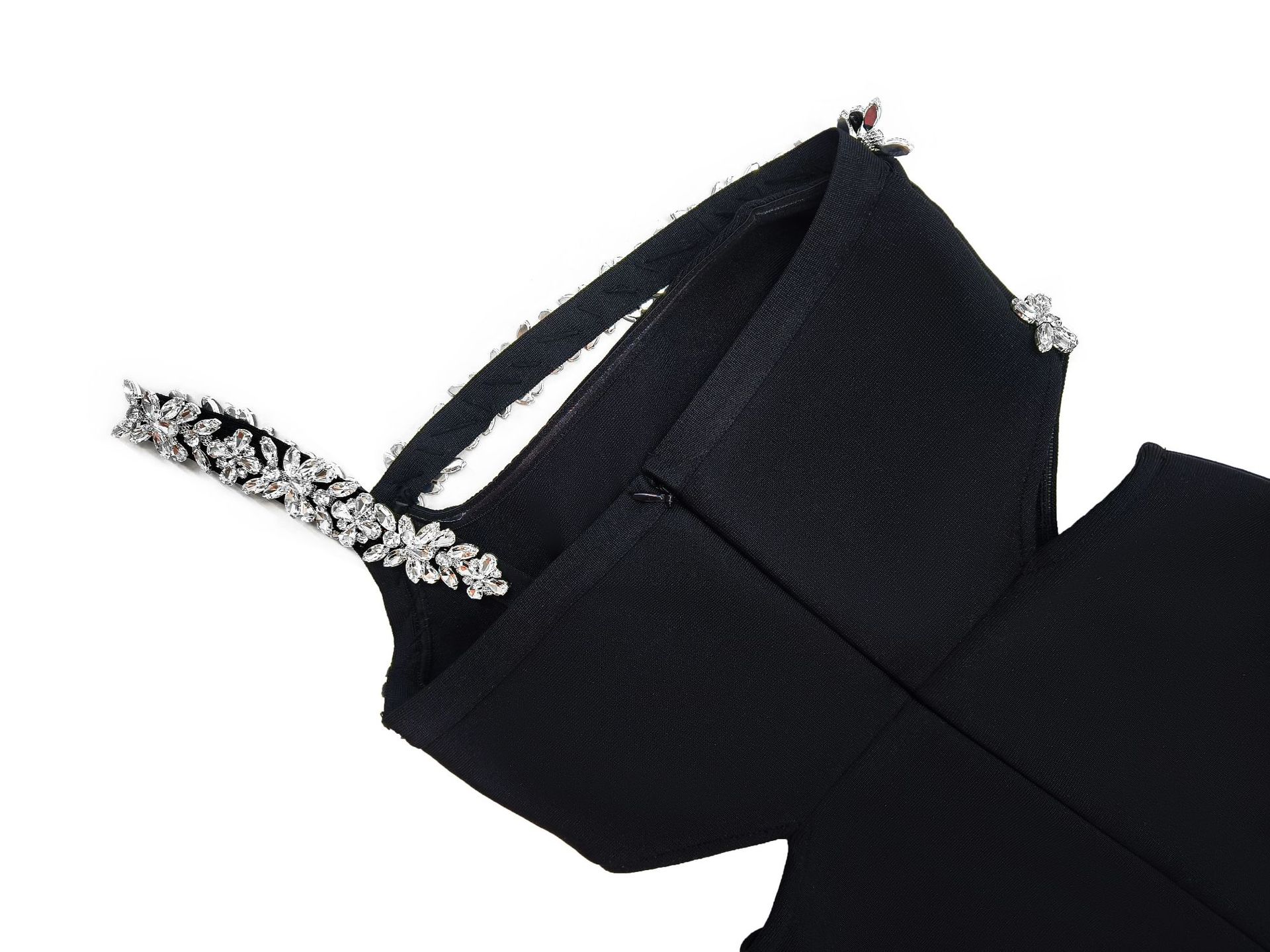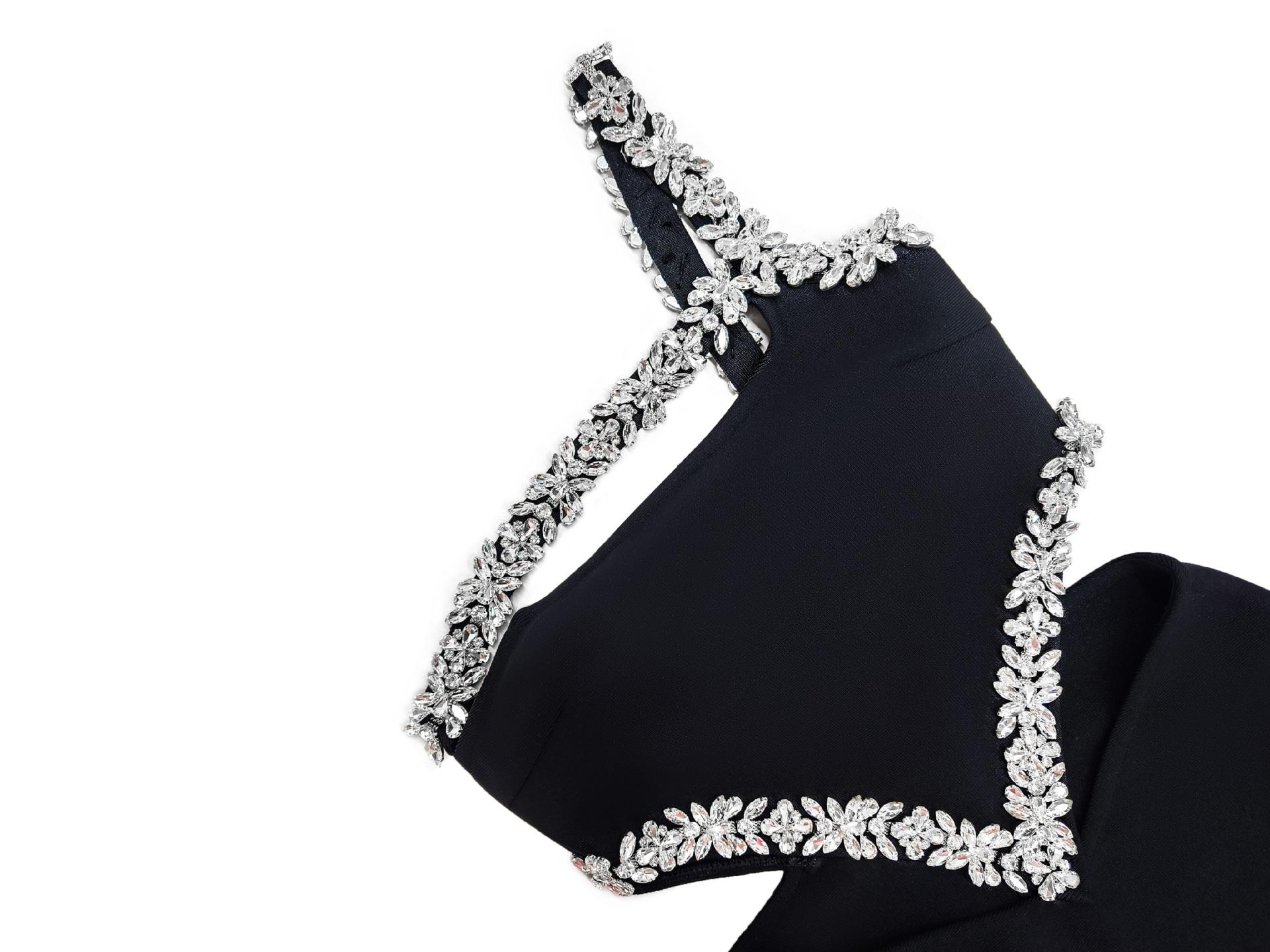 Vestido de noche corto de estilo vendaje, negro, ligero, de lujo, con incrustaciones de diamantes, ajustado, para fiestas europeas y americanas.