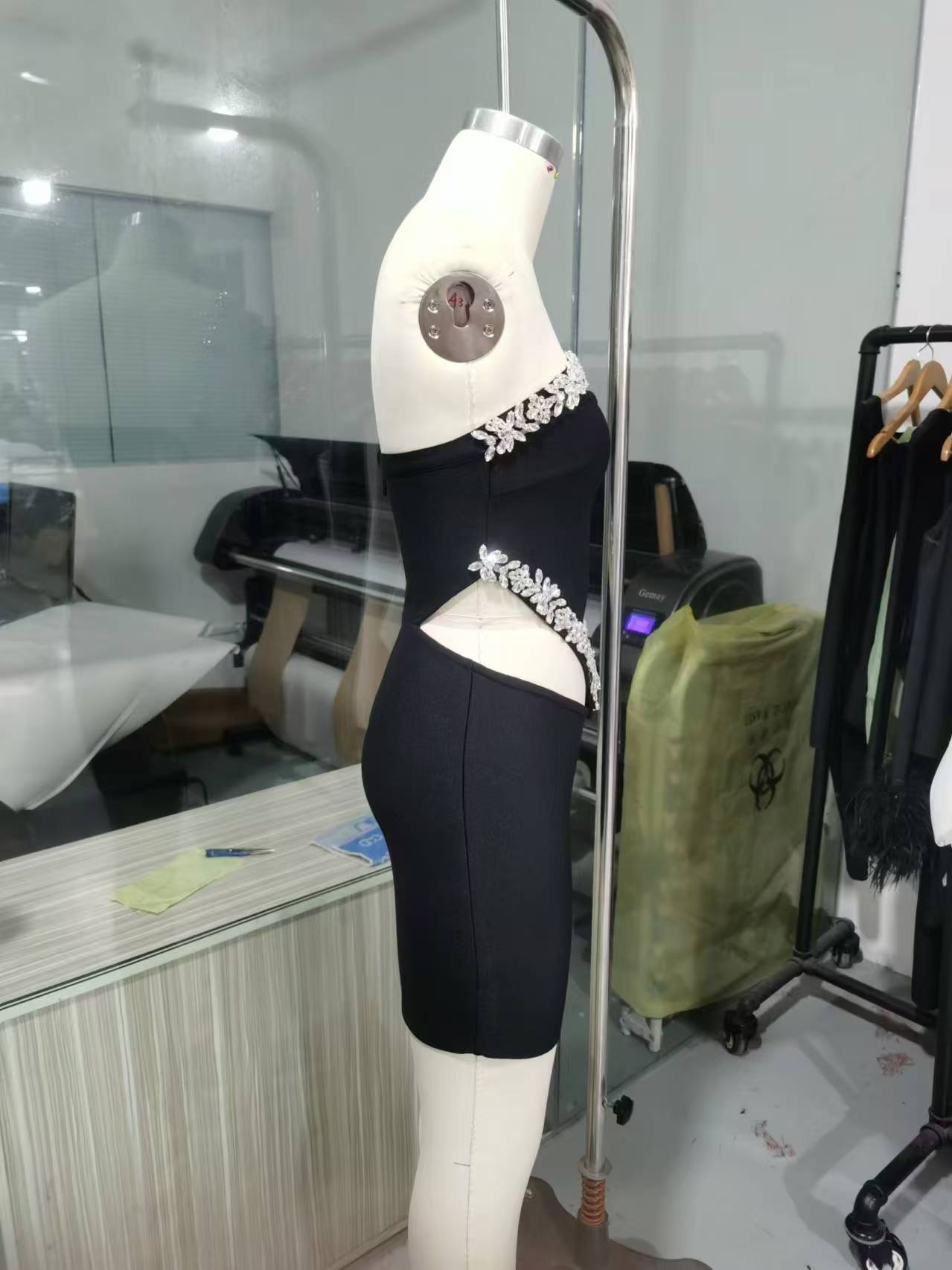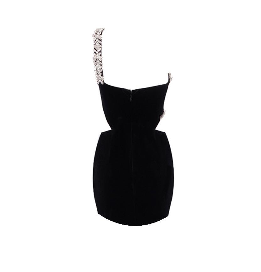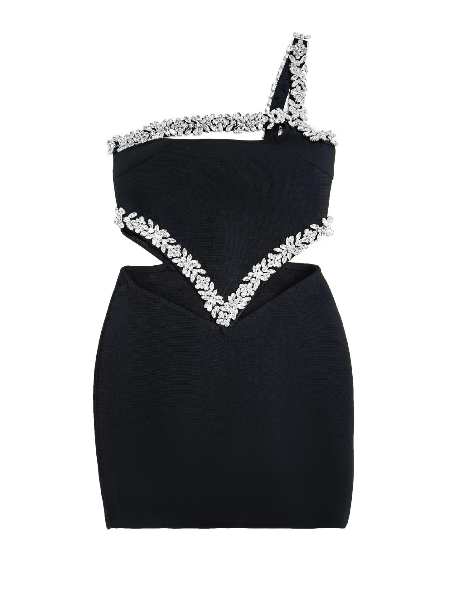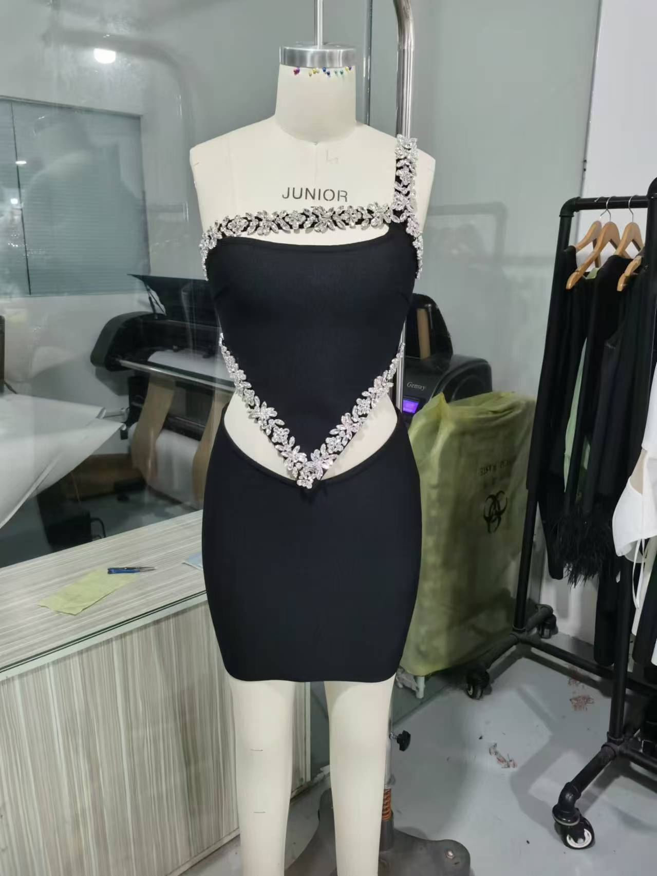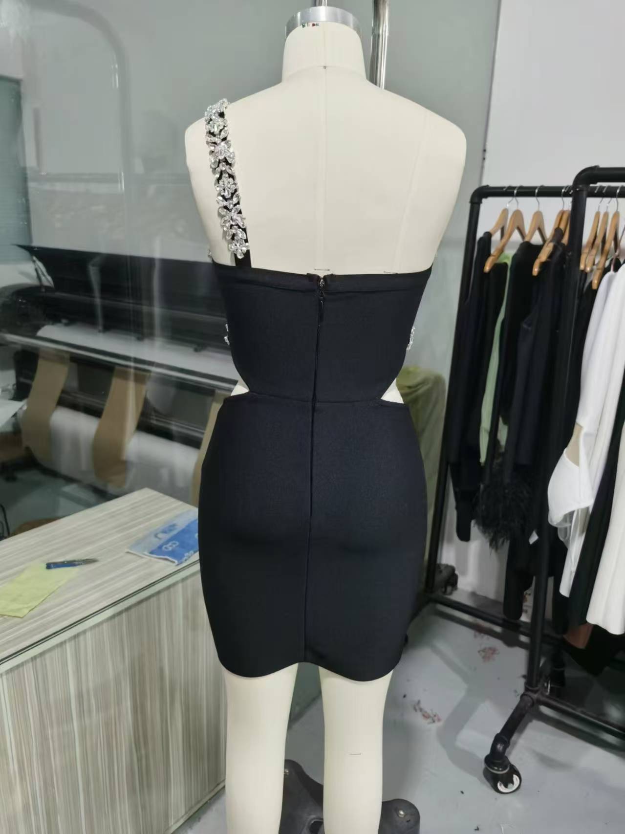 Vestido de noche corto de estilo vendaje, negro, ligero, de lujo, con incrustaciones de diamantes, ajustado, para fiestas europeas y americanas.