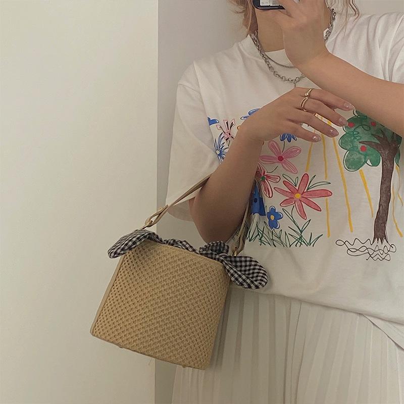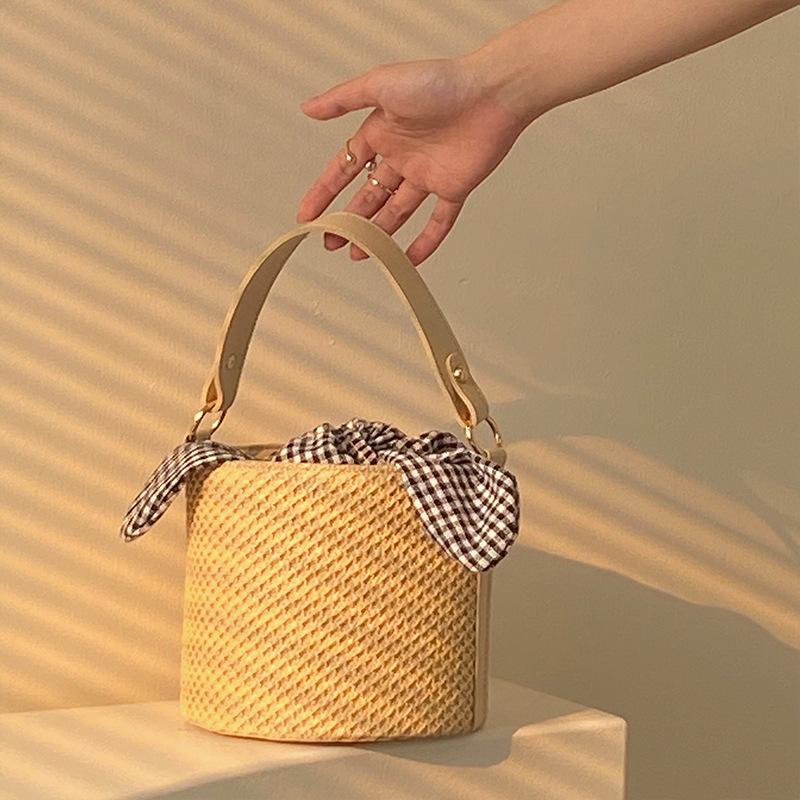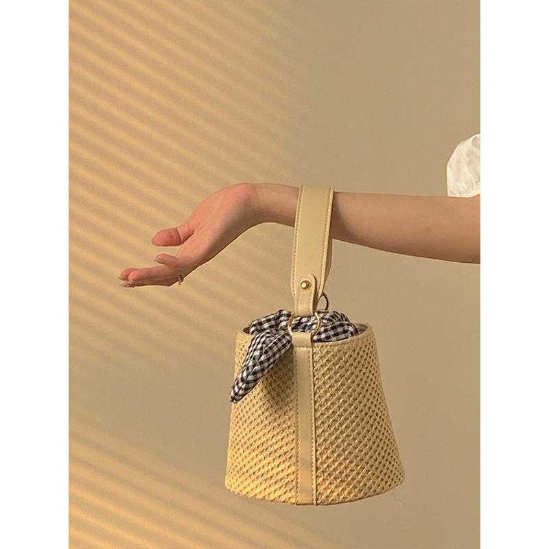 Bolso Cubo de Paja para Mujer Moda Verano 2025 Celebridad de Internet Personalizado Anudado Bolso de Mano Bandolera Bolso Tejido Bolso de Mujer