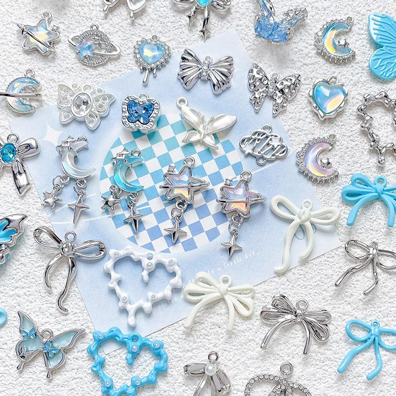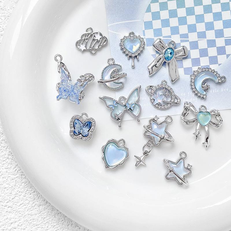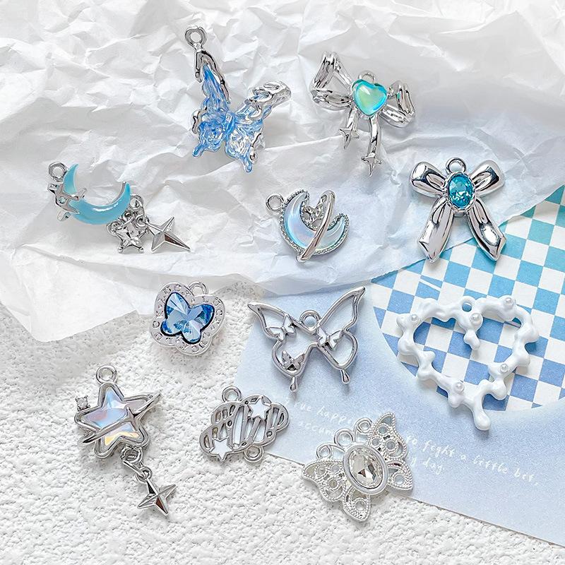 [Azul marino] Aleación de amor, mariposa, nubes, luna, colgante, bricolaje, pulsera, collar, accesorios