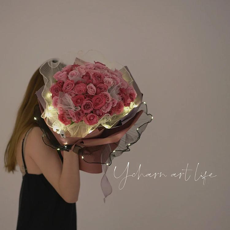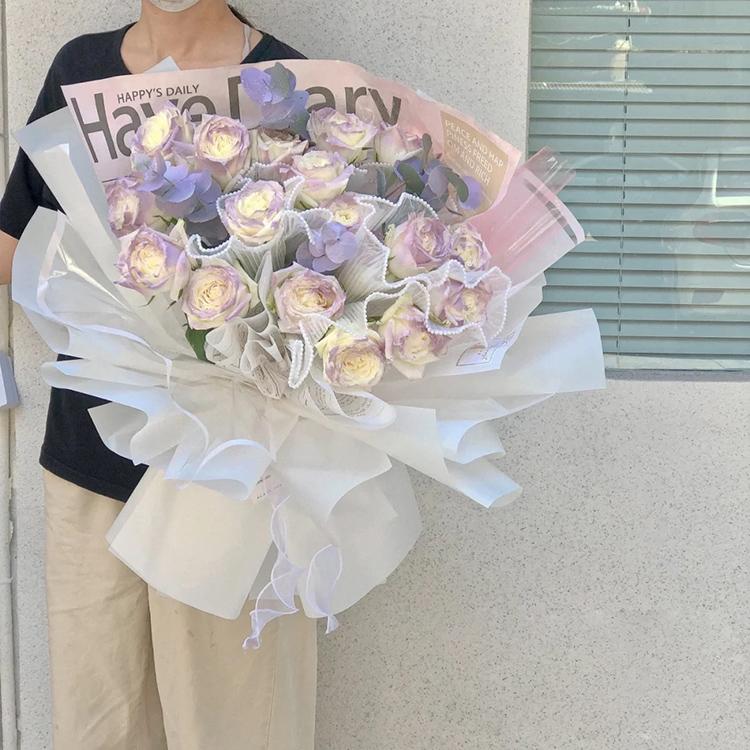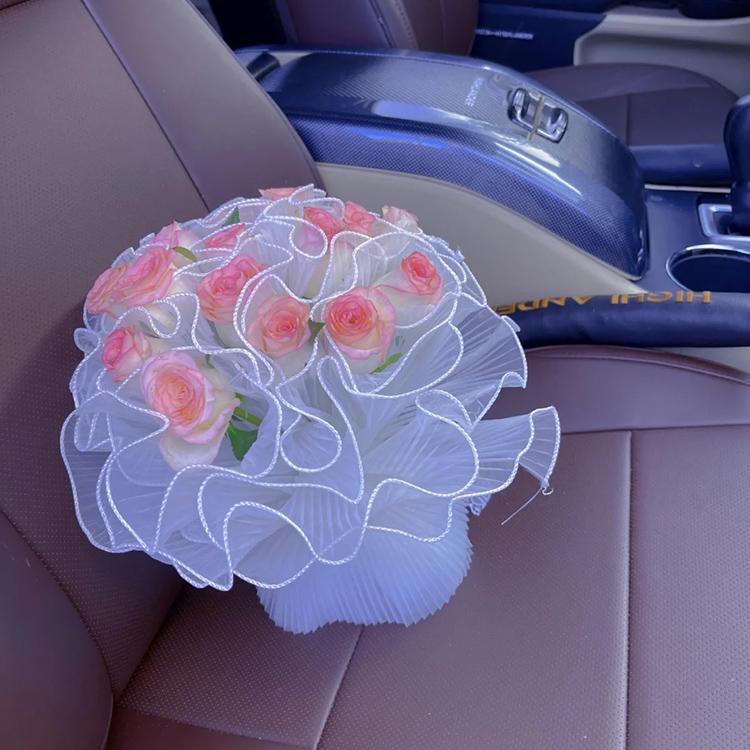 Hilo de onda plisado, hilo de onda de perla blanca, gasa luminosa para embalaje de flores, malla de ramo negro, material floral