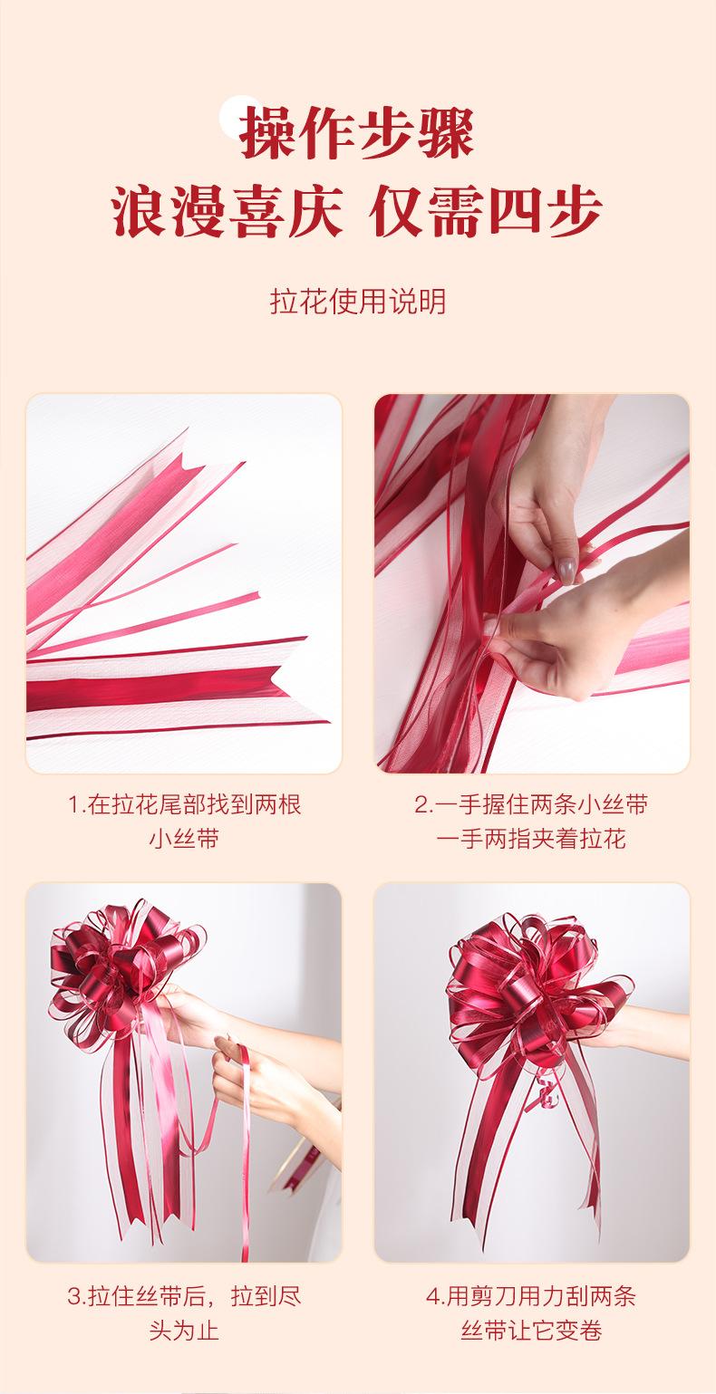 Suministros de decoración para equipos de flores para autos de boda, diseño de sala de bodas, lazo, cinta para auto, flor para tirar a mano