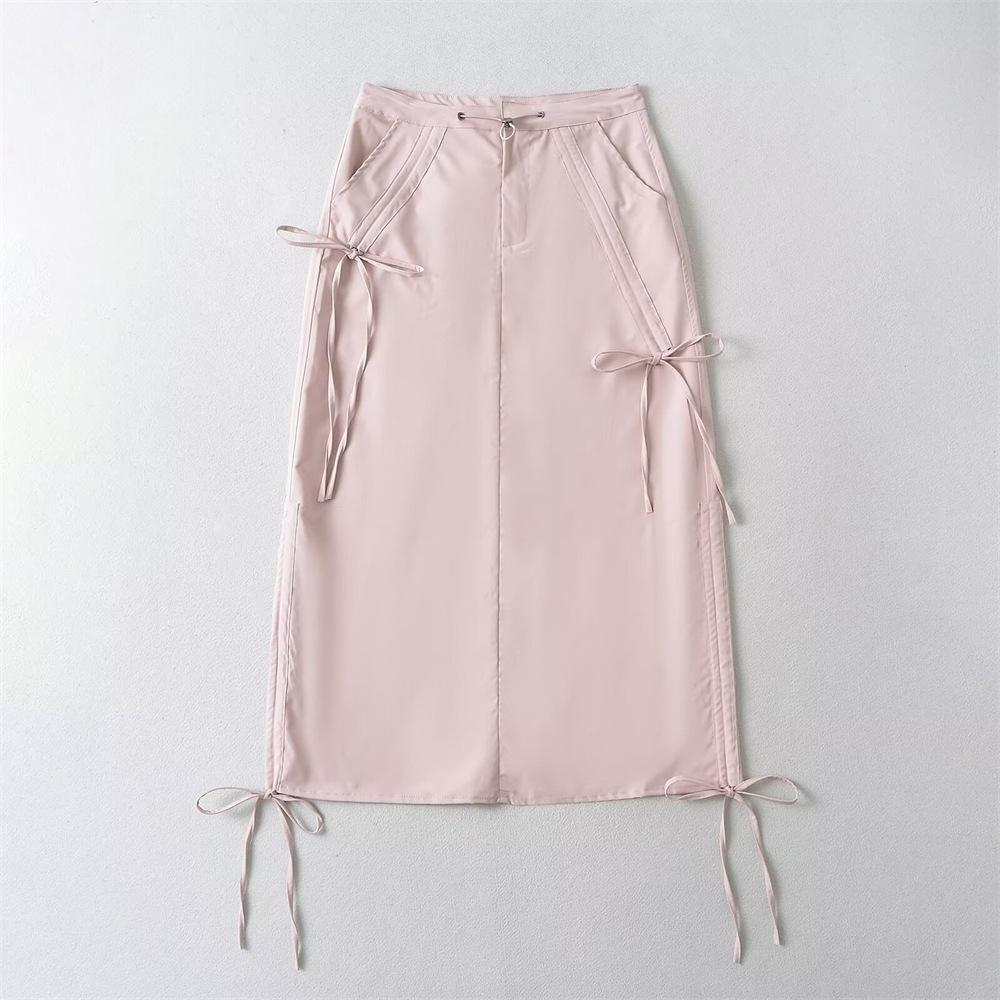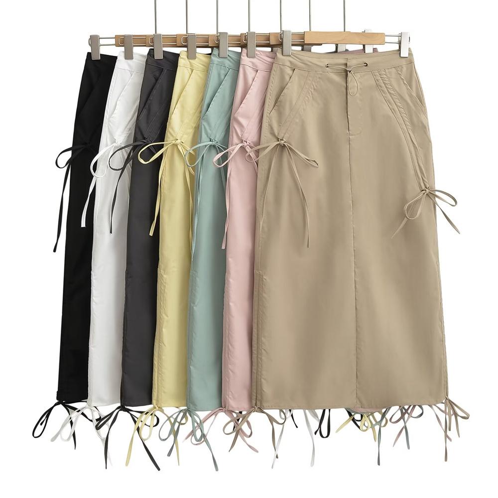 YPFF Falda de Trabajo Moderna para Mujer Estilo Hot Girl con Lazo, Tirantes, Cintura Alta con Cordón Ajustable, Casual, Caderas, Largo Medio