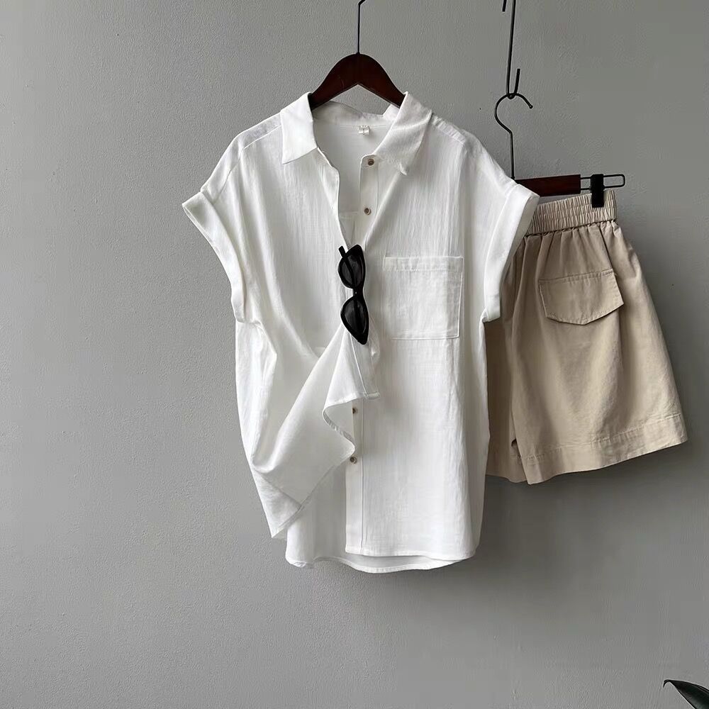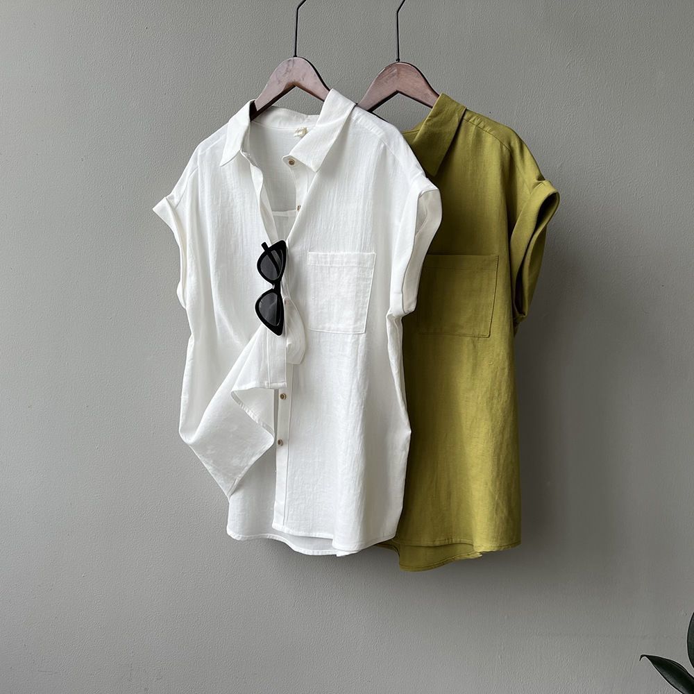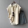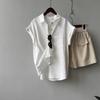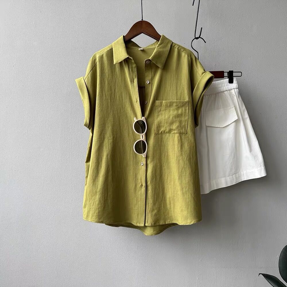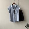 Camisa rizada de manga corta para mujer, top francés de verano, diseño holgado, camisa de gasa de manga corta de nicho