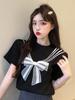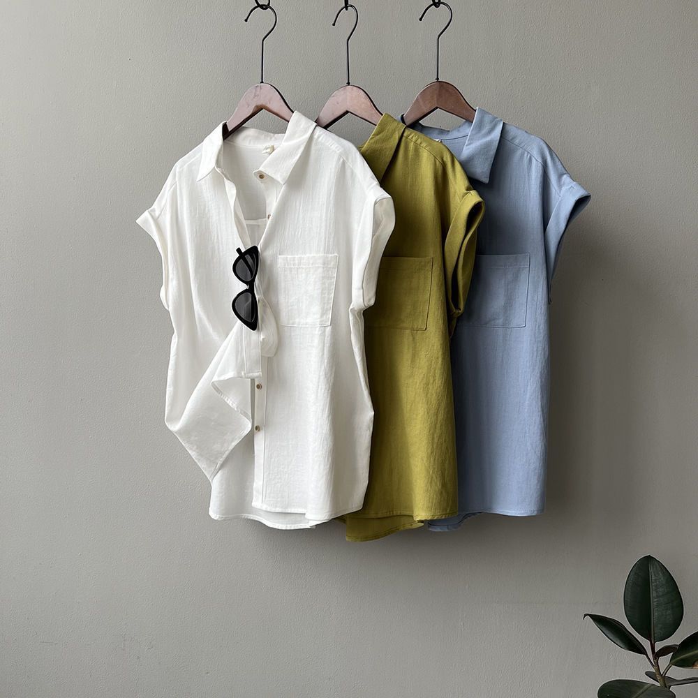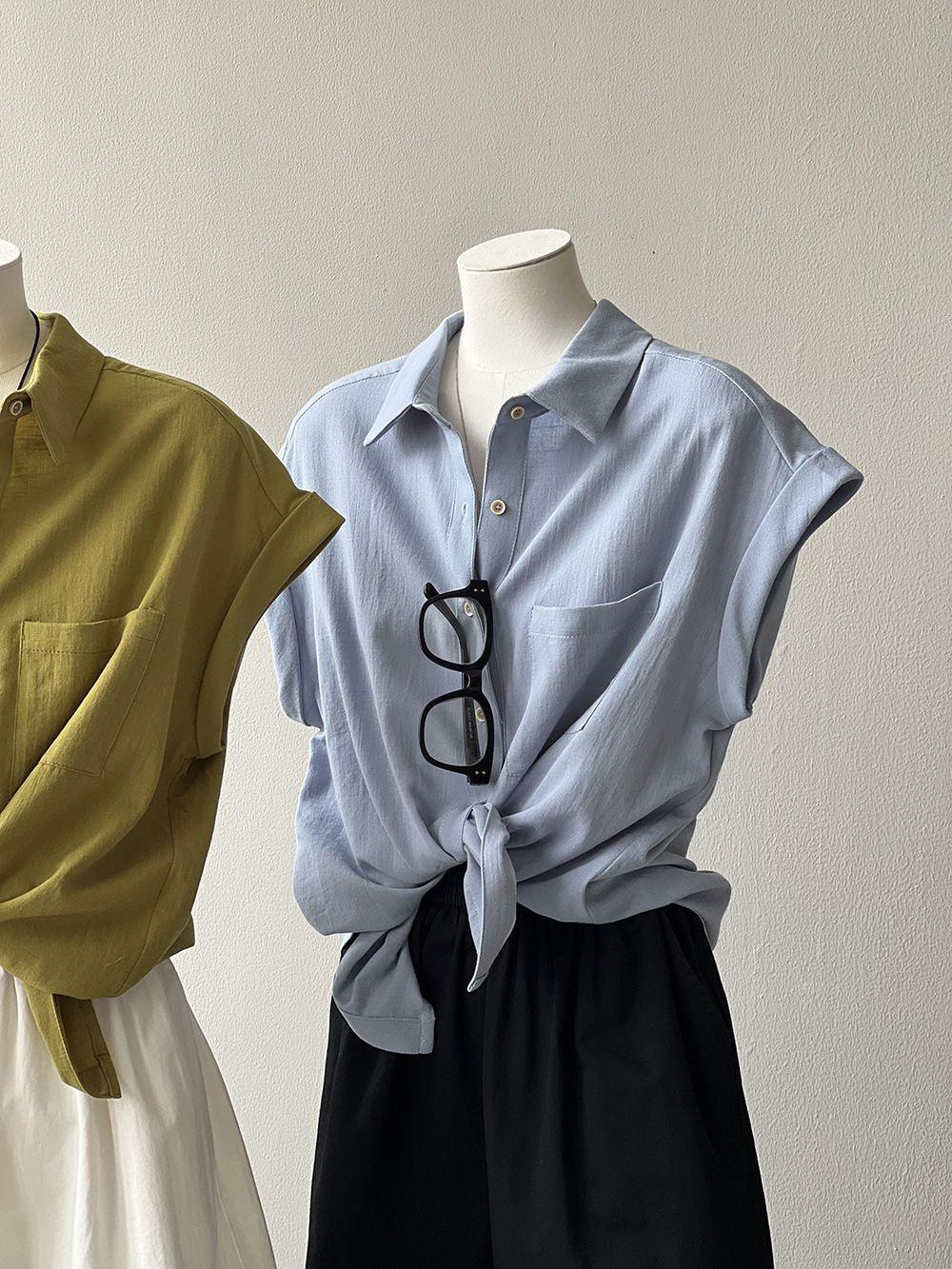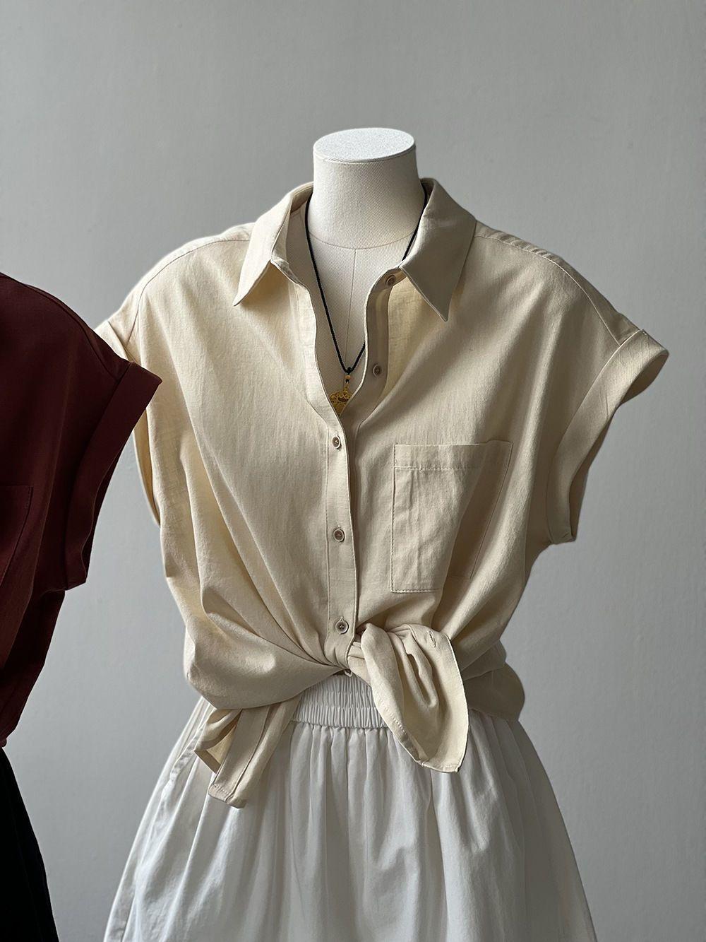 Camisa rizada de manga corta para mujer, top francés de verano, diseño holgado, camisa de gasa de manga corta de nicho