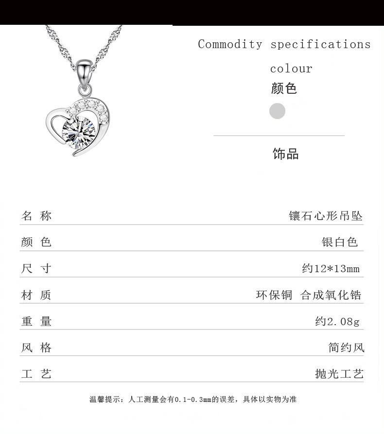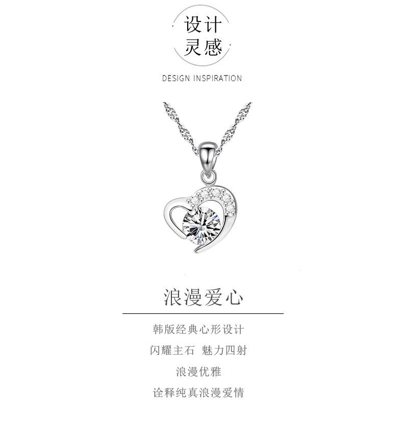 Colgante de corazón de moda para mujer, cadena de clavícula con diamantes de imitación, collar pequeño y fresco de circonita simple, joyería de Taobao muy vendida