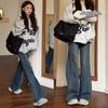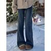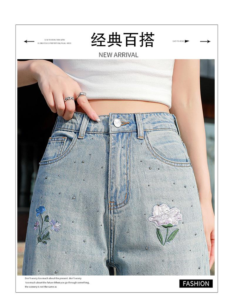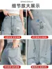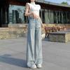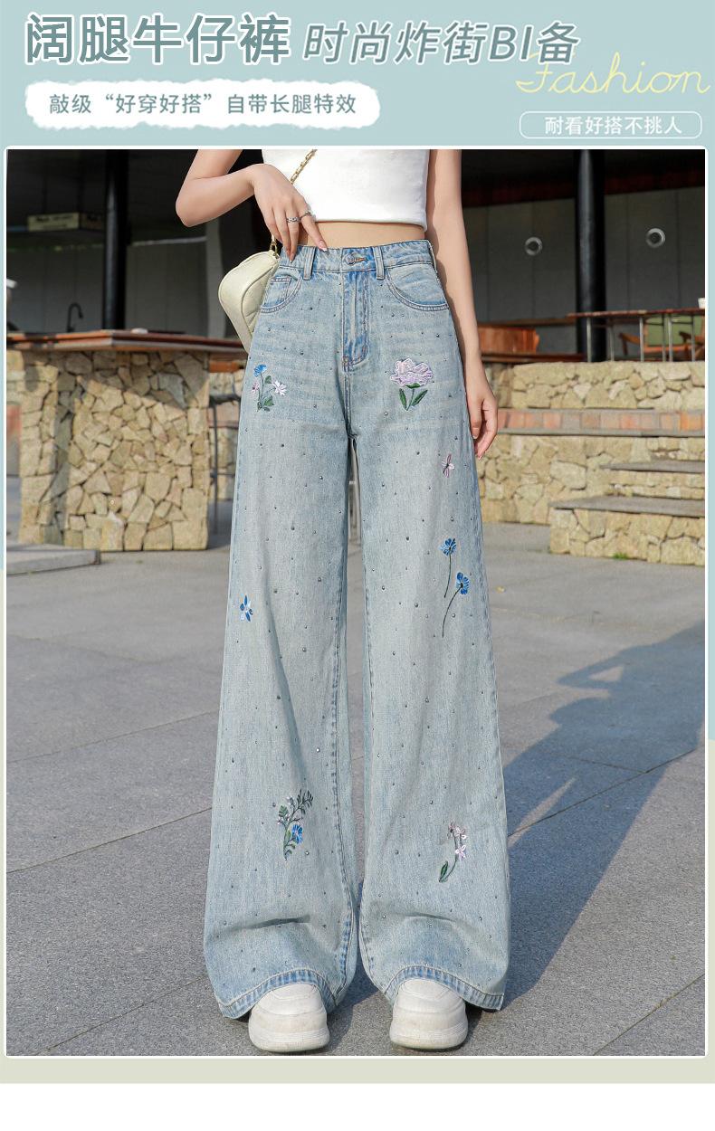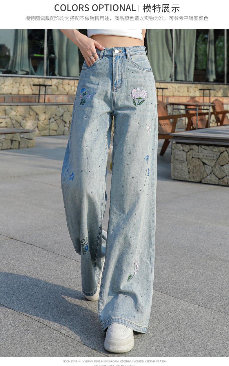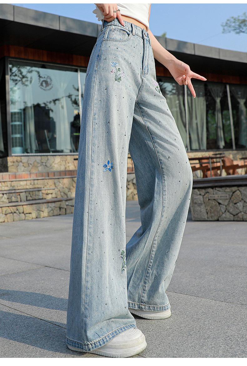 Pantalones Retro de Mezclilla Azul de Pierna Ancha para Mujer 2025 Verano Nuevo Estilo Alto y Delgado Bordados Pequeños Sueltos Pantalones Largos