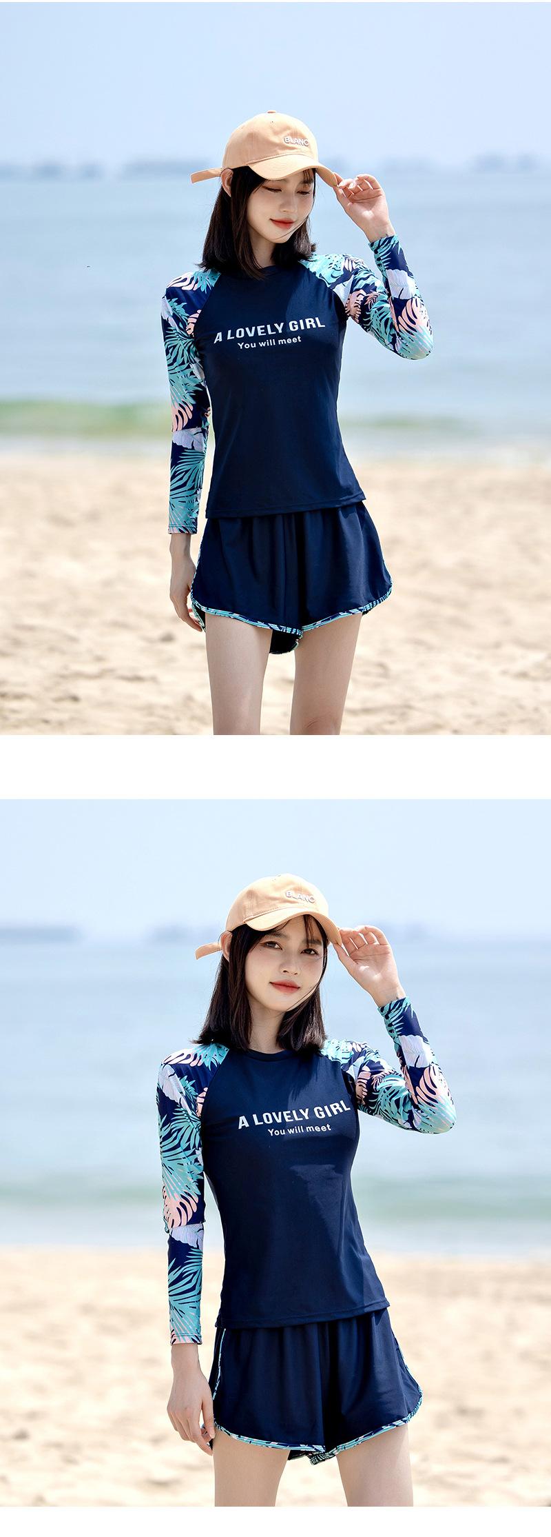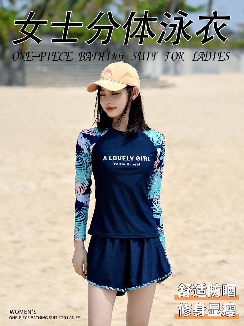 Traje de Baño Separado para Mujer al por Mayor 2025 Nuevo Coreano Ins Manga Larga Conservador Cubre Vientre Adelgazante Look Aguas Termales Traje de Baño para Mujer