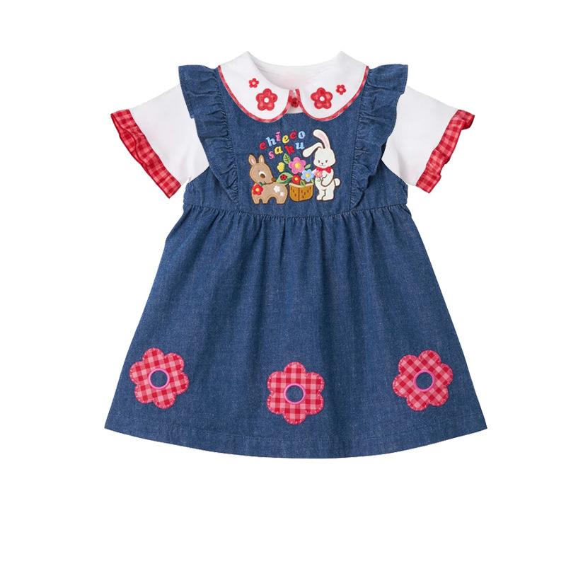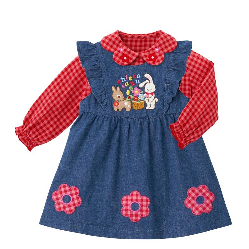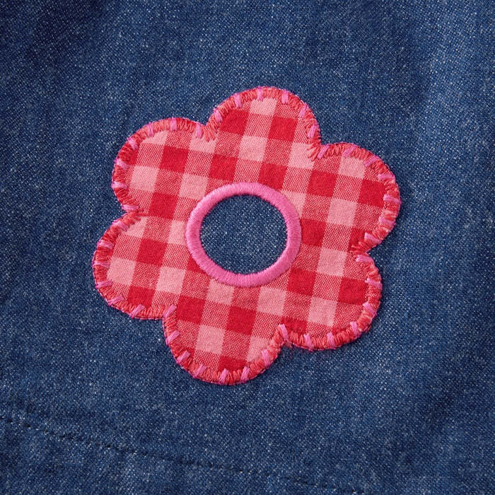 Dobladillo de falda con delicado bordado de apliques florales a cuadros