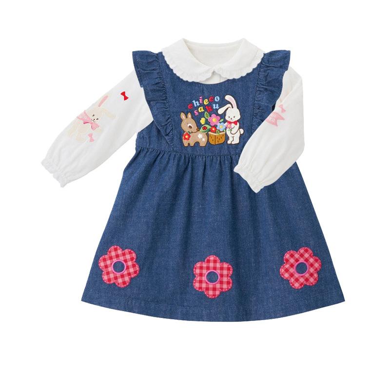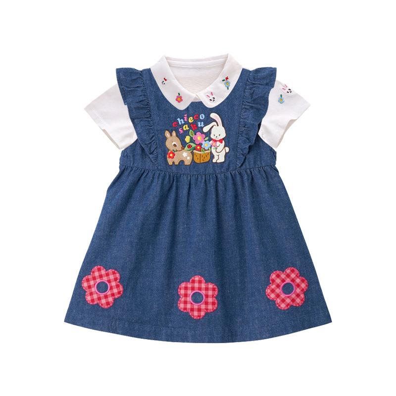 Diseño de bordado 3D de dibujos animados de conejito, ciervo y flores