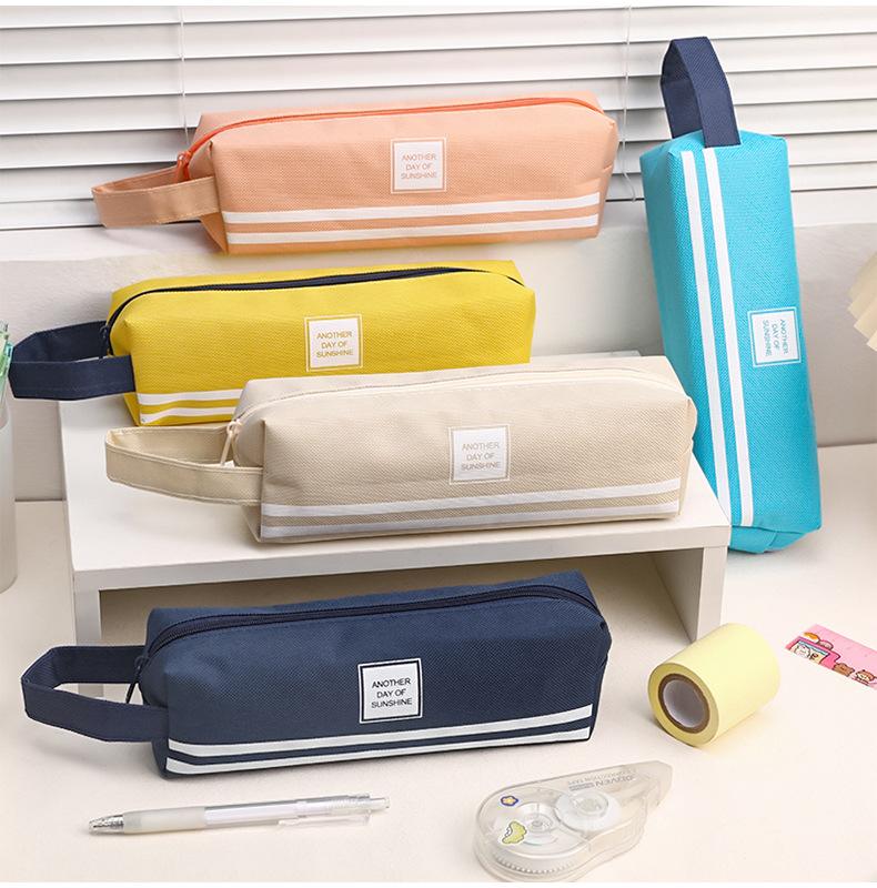Bolsa de almacenamiento portátil, creativa y sencilla, de color sólido, de gran capacidad, para lápices de papelería, bolsa de tela Oxford para estudiantes, bolsa portátil con cremallera