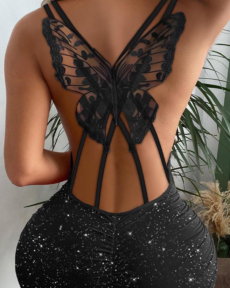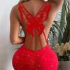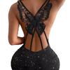 Vestido cruzado de moda europea y americana 2024 con espalda descubierta de mariposa y destellos elásticos
