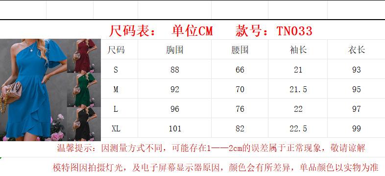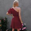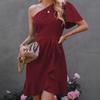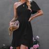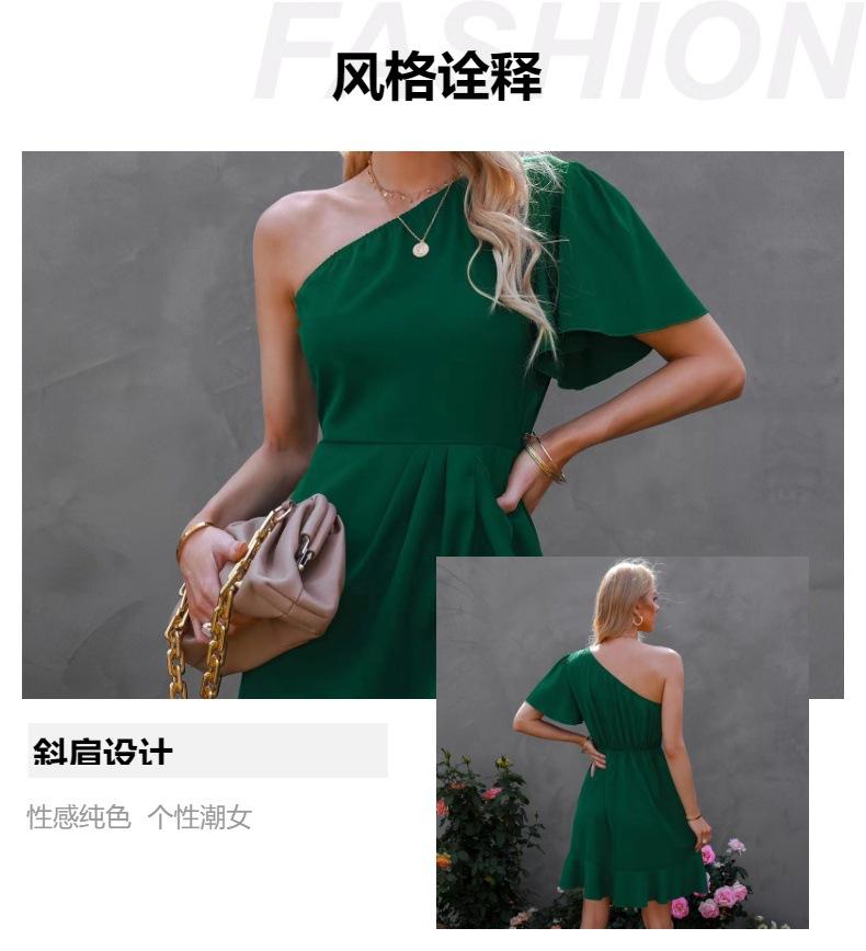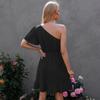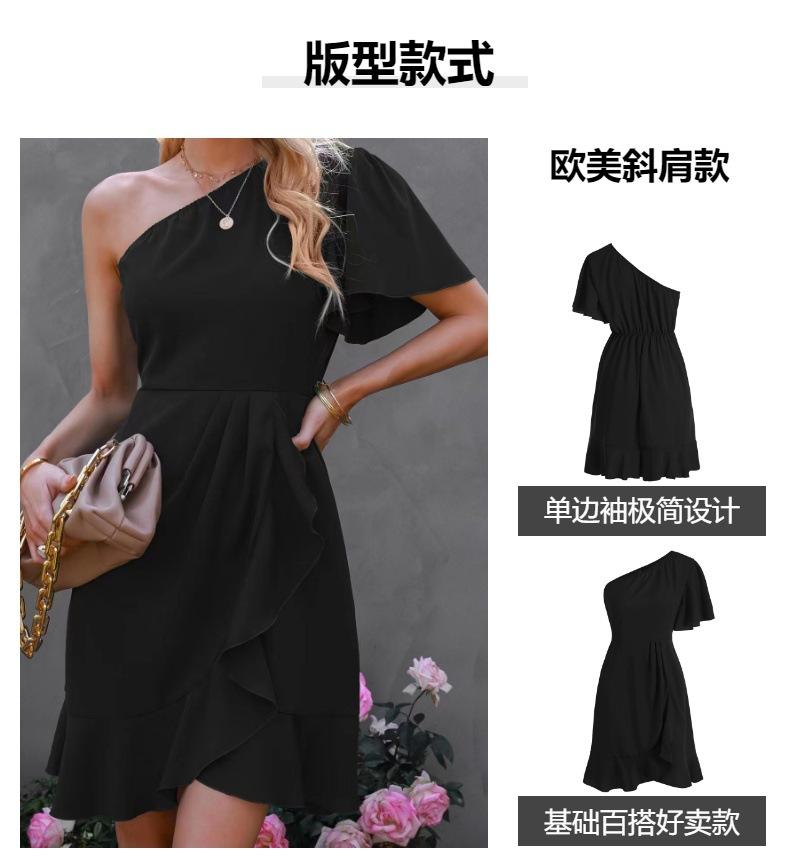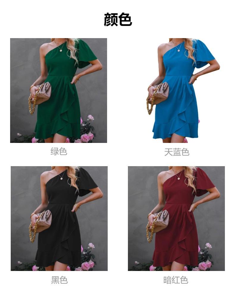 Vestido 2024 Verano Europeo y Americano Amazon Transfronterizo Nuevo Sexy Color Sólido Volantes Hombro Inclinado Manga Unilateral Falda Midi