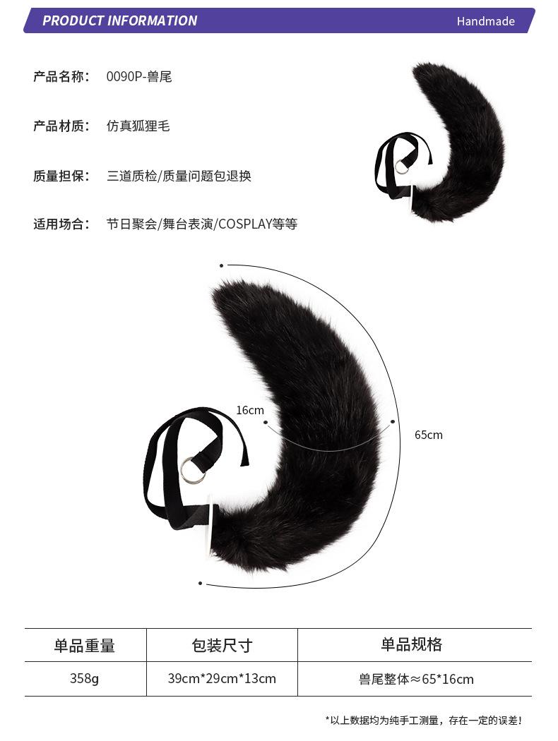 Accesorios de cosplay de cola de bestia de peluche hechos a mano, simulación de cola de zorro, accesorios de cola de lobo, vestido de fiesta de cómic