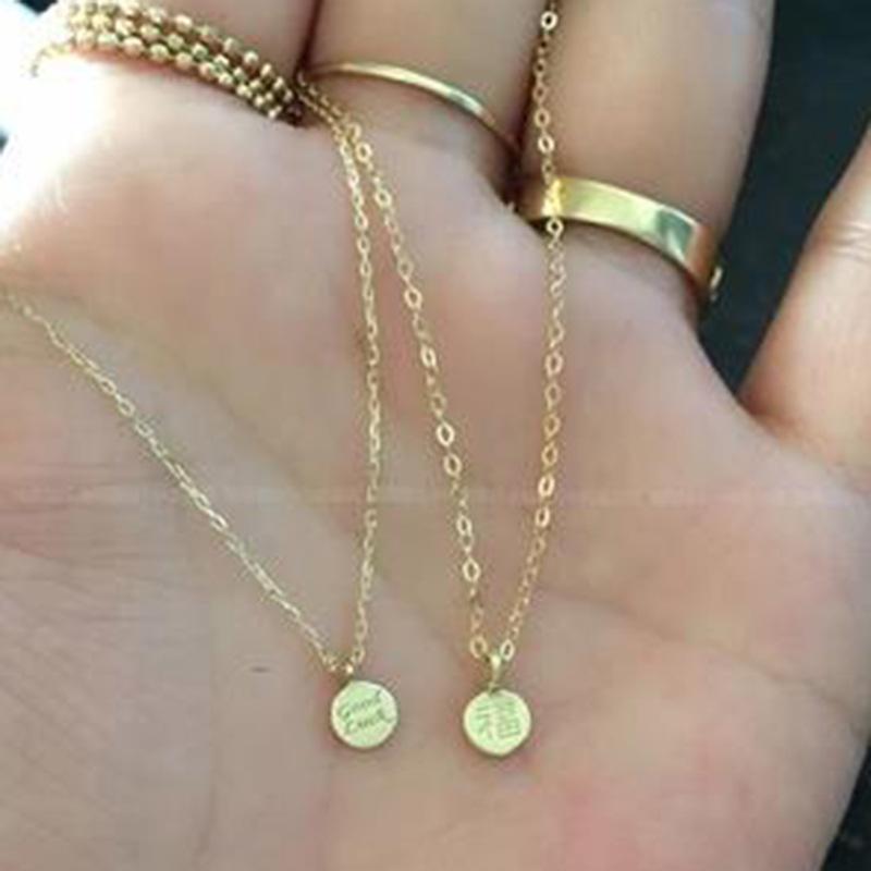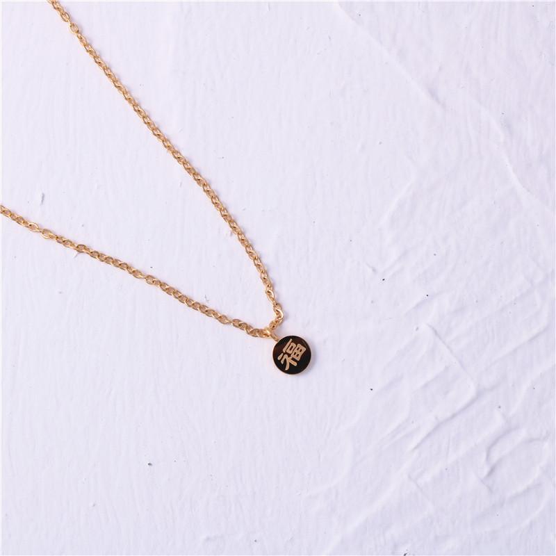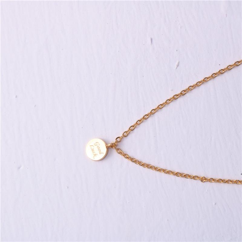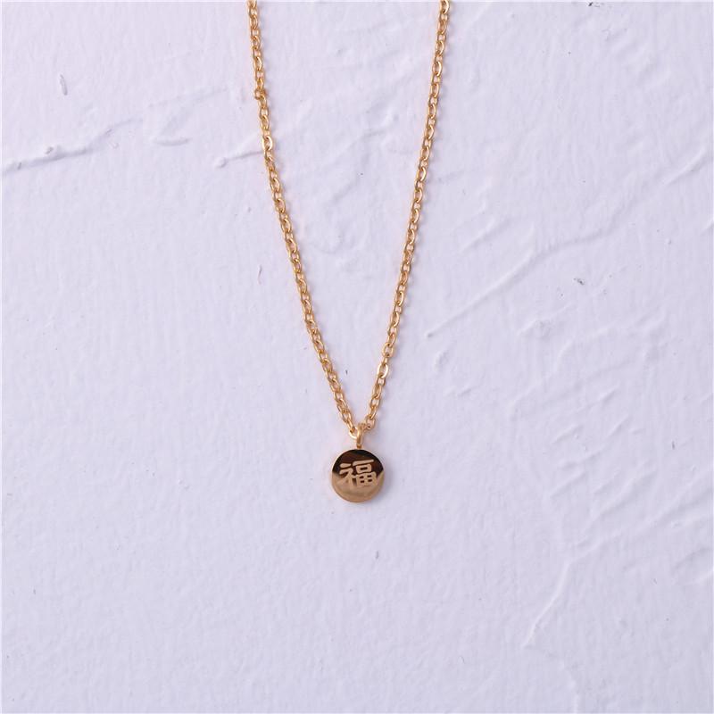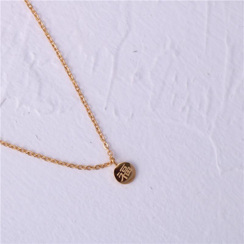 Collar de oro de 18 quilates para mujer, mini colgante de buena suerte de doble cara, cadena de clavícula