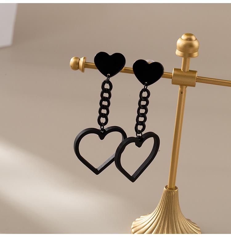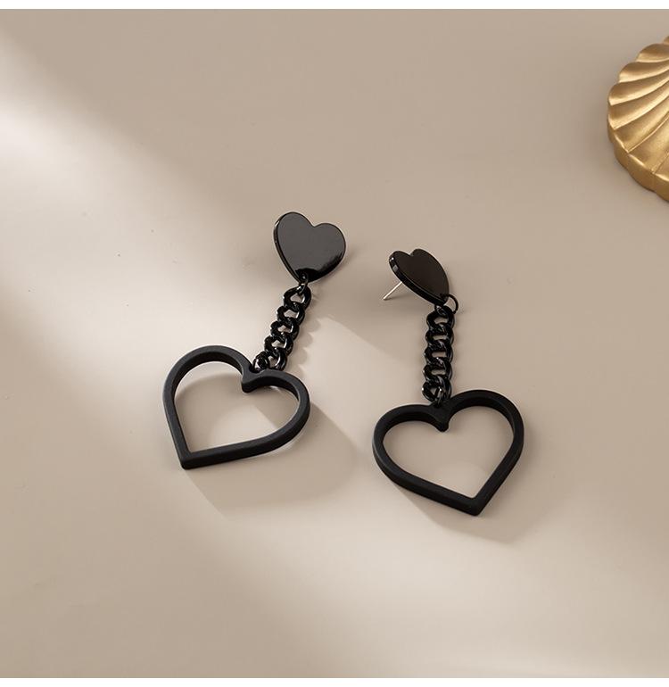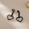 Pendientes largos de cadena de amor negros retro personalizados, pendientes de borlas exageradas de moda sin clip de oreja perforado con espiral antimosquitos