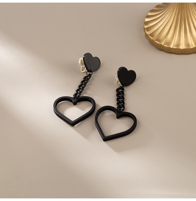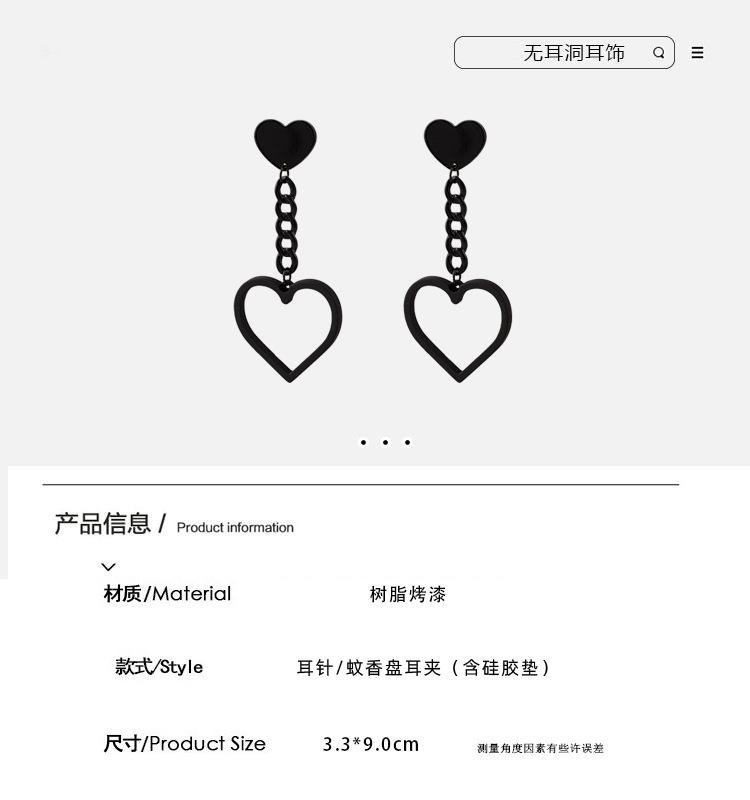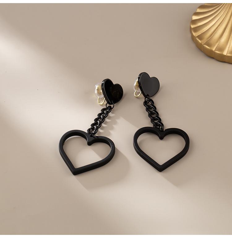 [1325] black chain love ear pin, [1325] black chain love mosquito coil ear clip