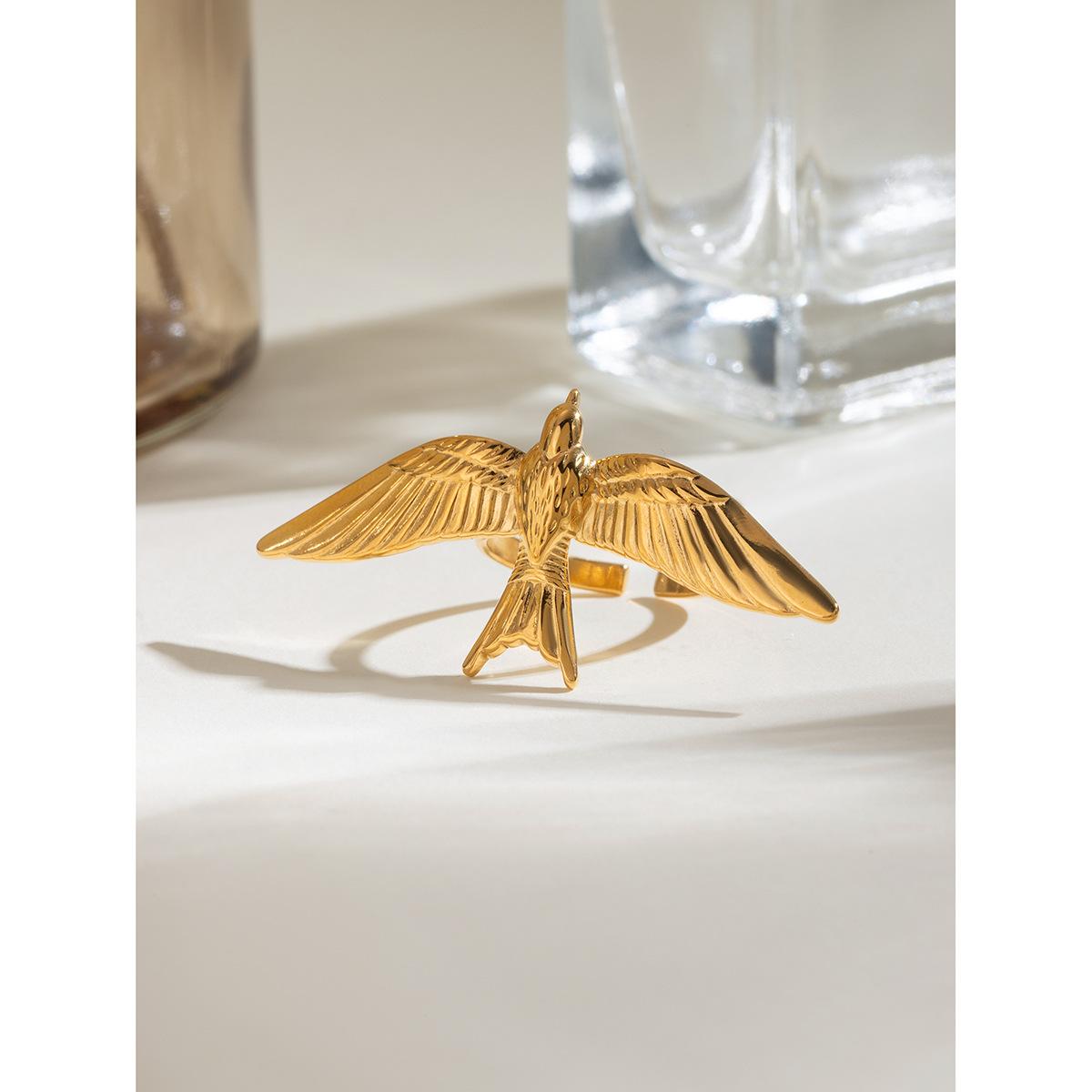 Anillo de apertura con alas de pájaro de acero inoxidable, estilo retro, metálico, oro de 18 quilates, joyería al por mayor