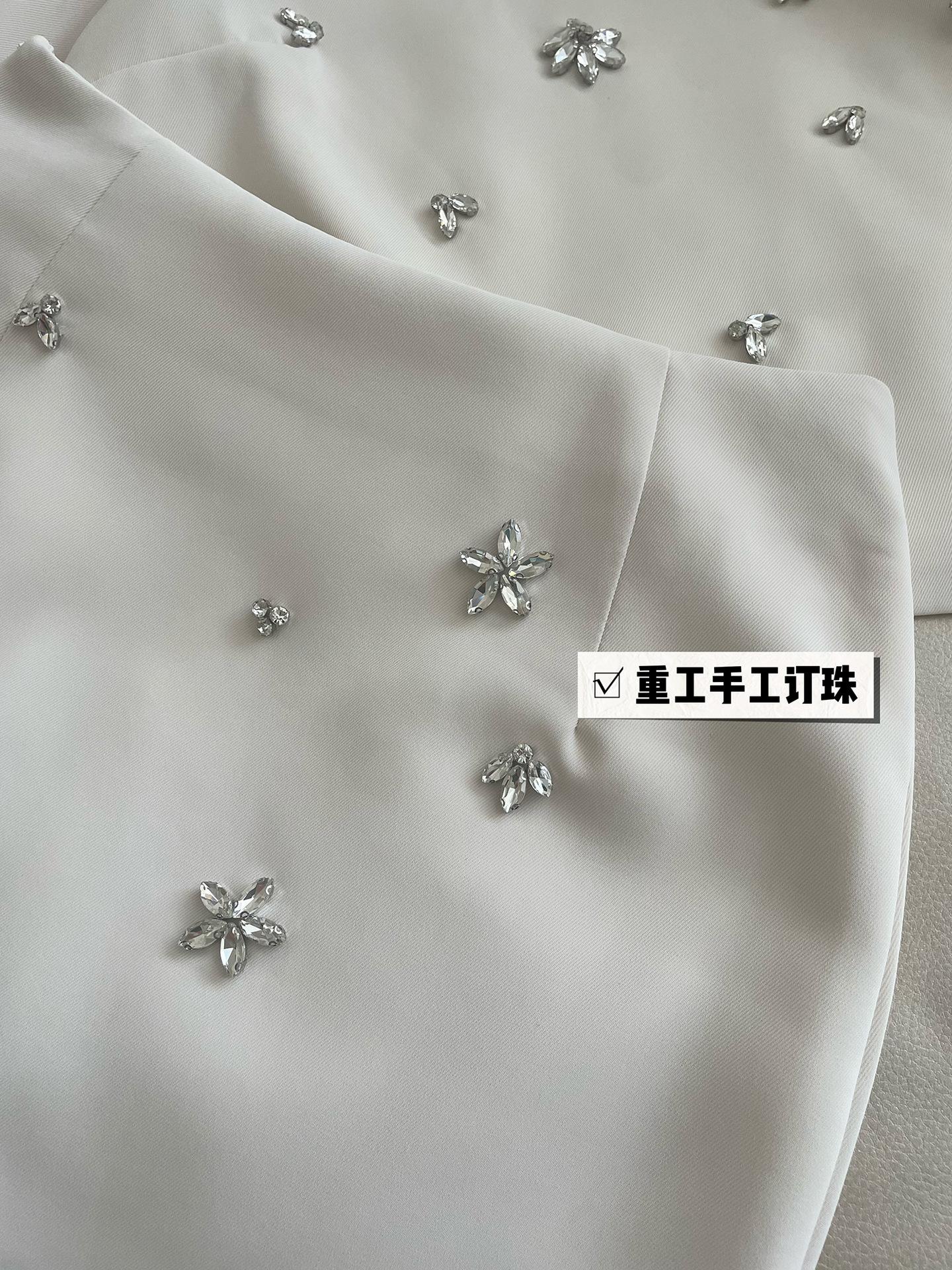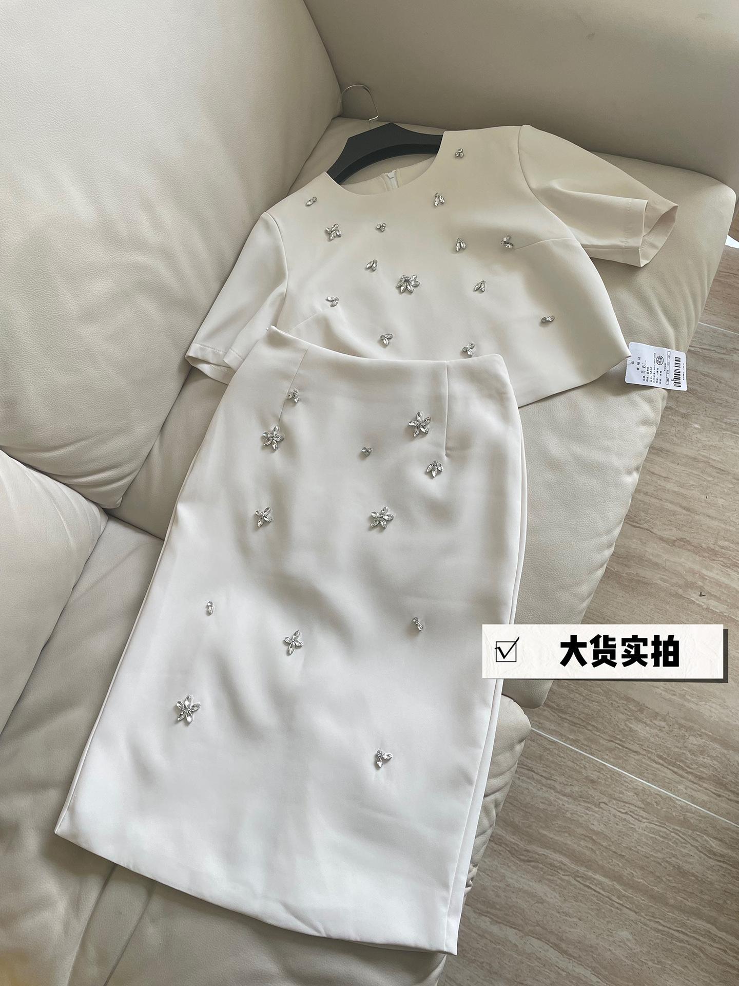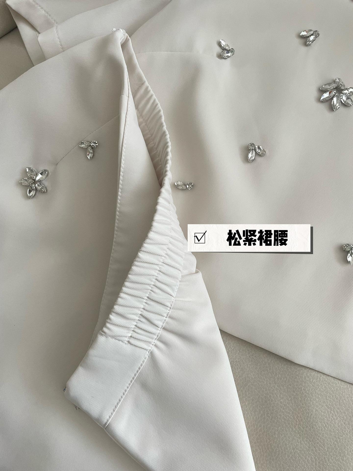 Traje de Temperamento de Celebridad 2025 Ropa de Verano Diamante de Industria Pesada Estilo Diosa Estilo Pequeña Fragancia Falda Blanca Conjunto de Dos Piezas 1785