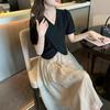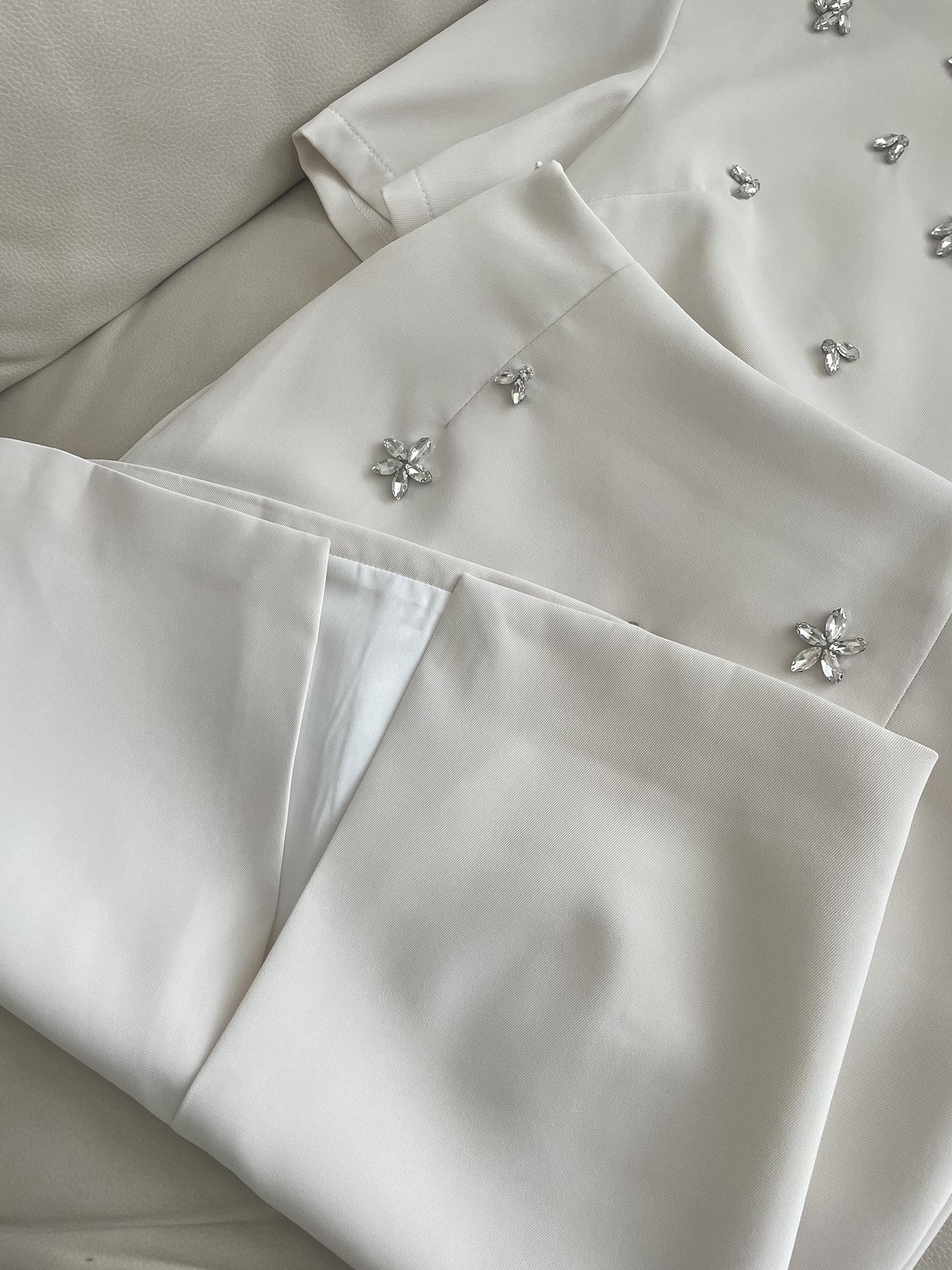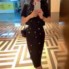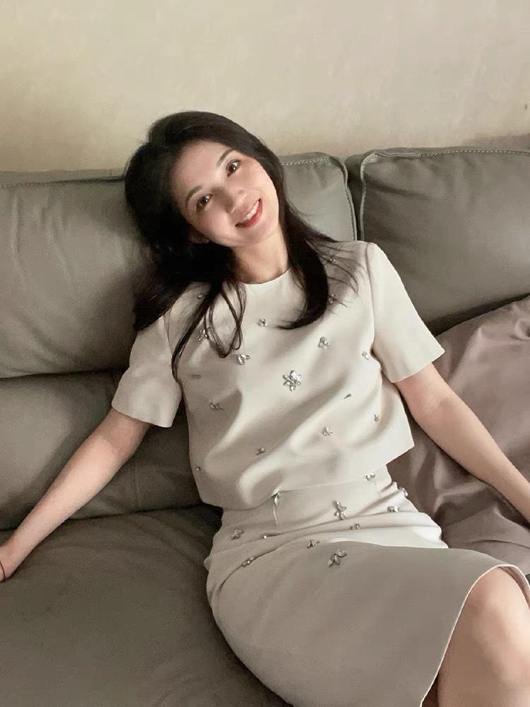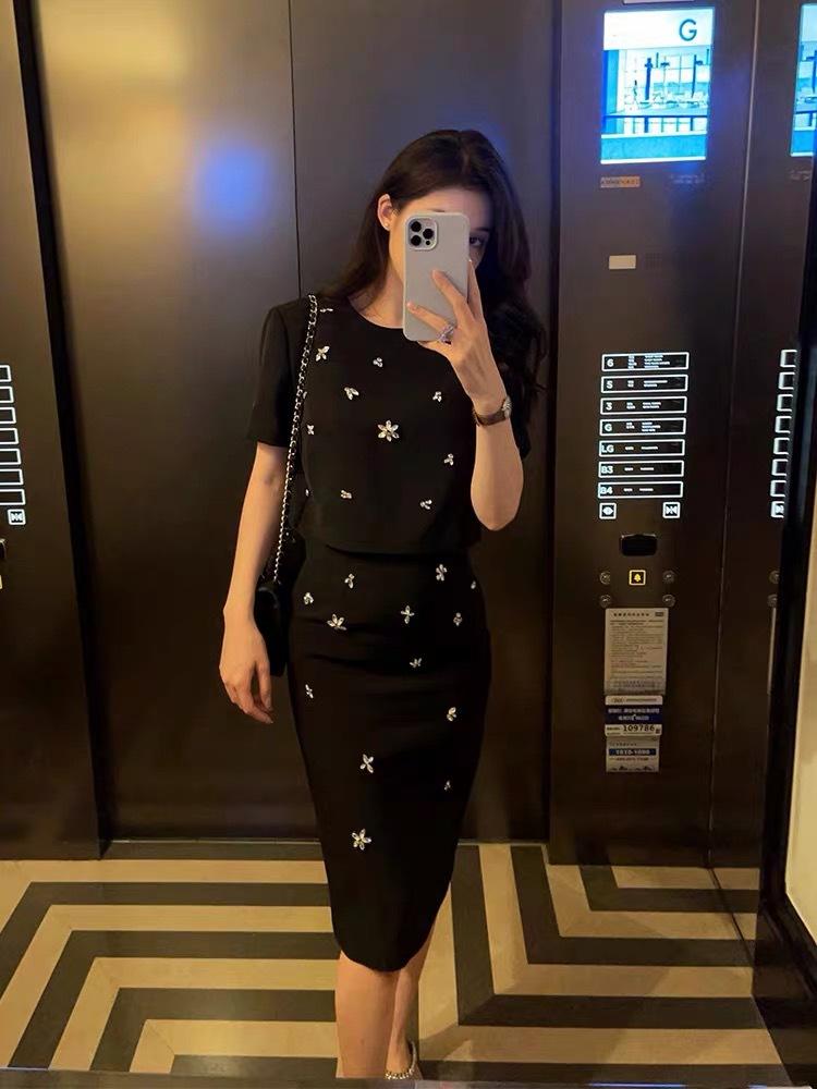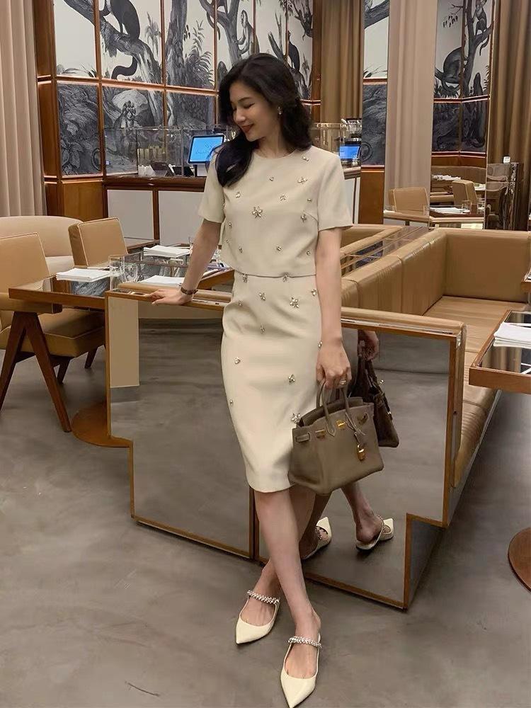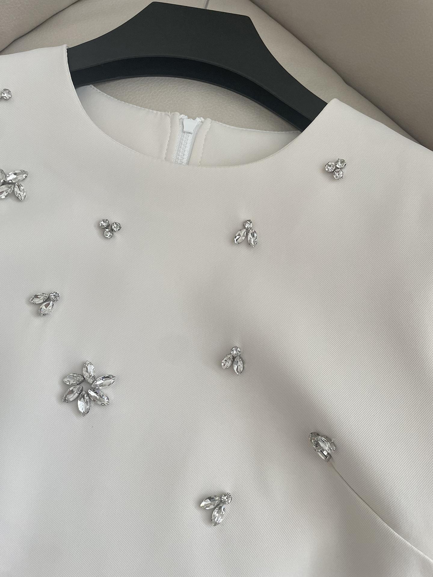Traje de Temperamento de Celebridad 2025 Ropa de Verano Diamante de Industria Pesada Estilo Diosa Estilo Pequeña Fragancia Falda Blanca Conjunto de Dos Piezas 1785
