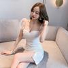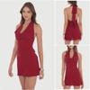 Falda Corta para Mujer Estilo Primavera 2025 Nuevo Cintura en V Profunda Abertura Cubre Caderas Vestido Elegante Sexy de Club Nocturno Escotado Muestra Pechos
