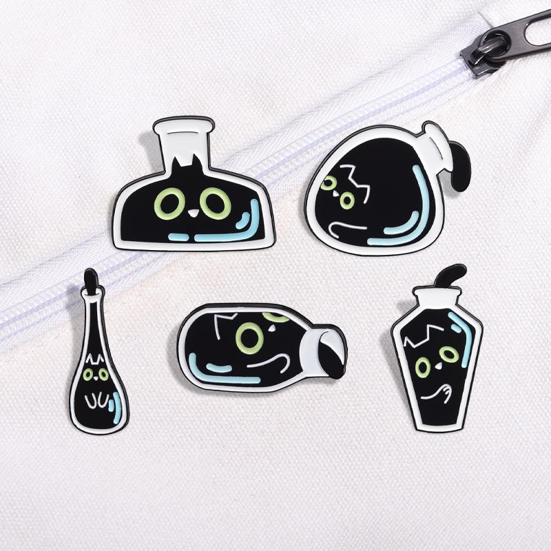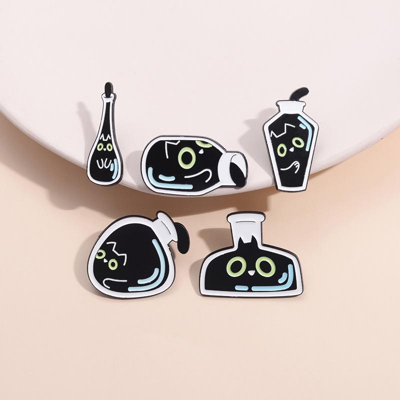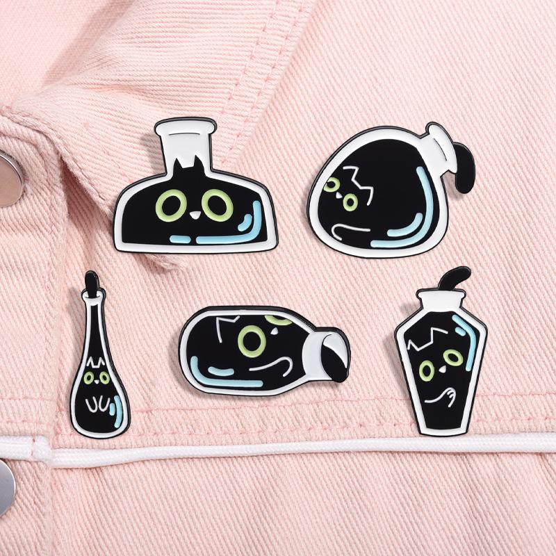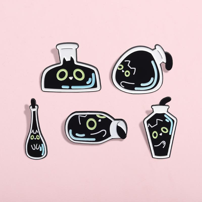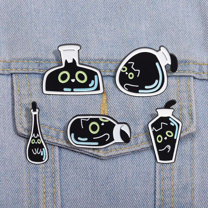 Lindo gatito negro botella de vidrio broche divertido animal insignia de metal accesorios de ropa pin de solapa regalo negro