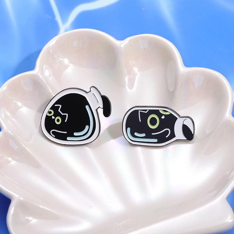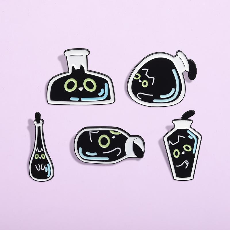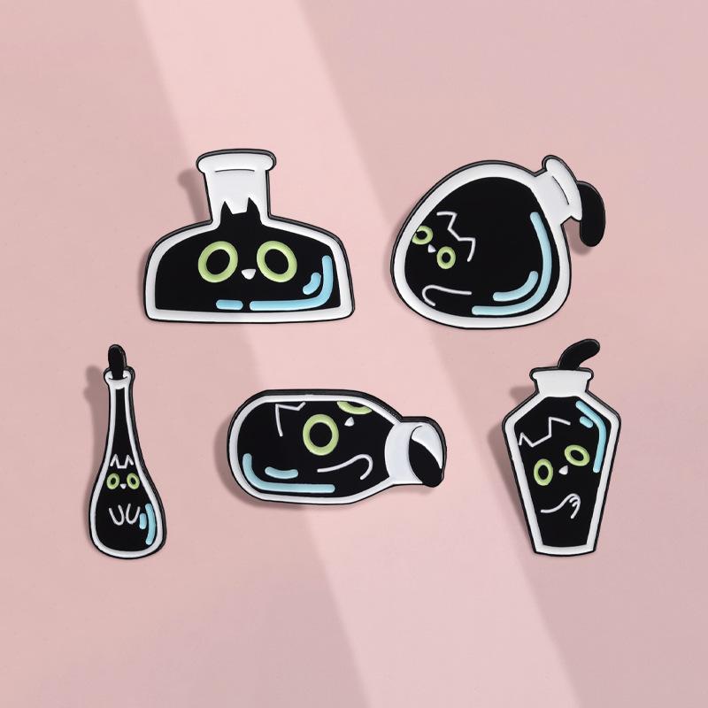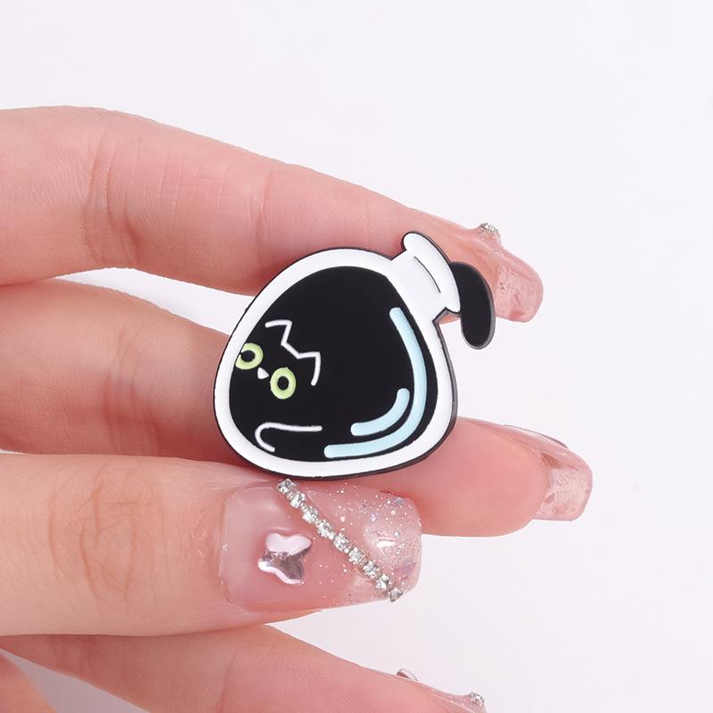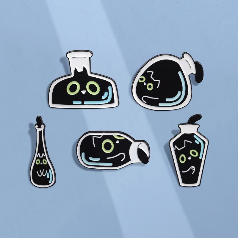 Lindo gatito negro botella de vidrio broche divertido animal insignia de metal accesorios de ropa pin de solapa regalo negro