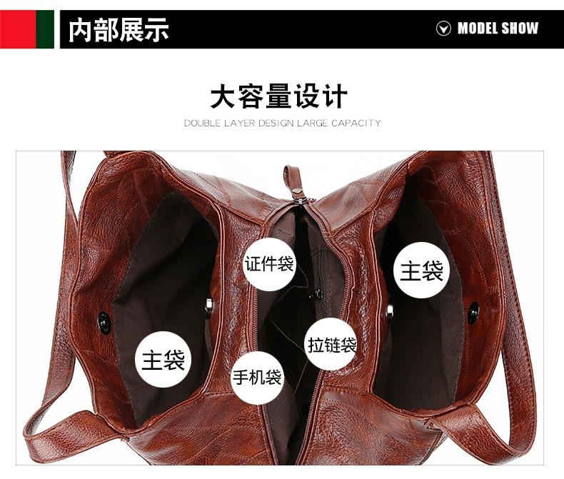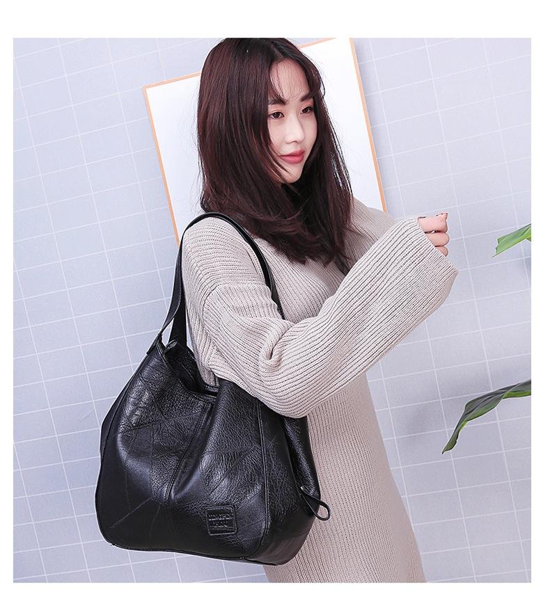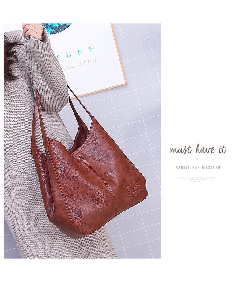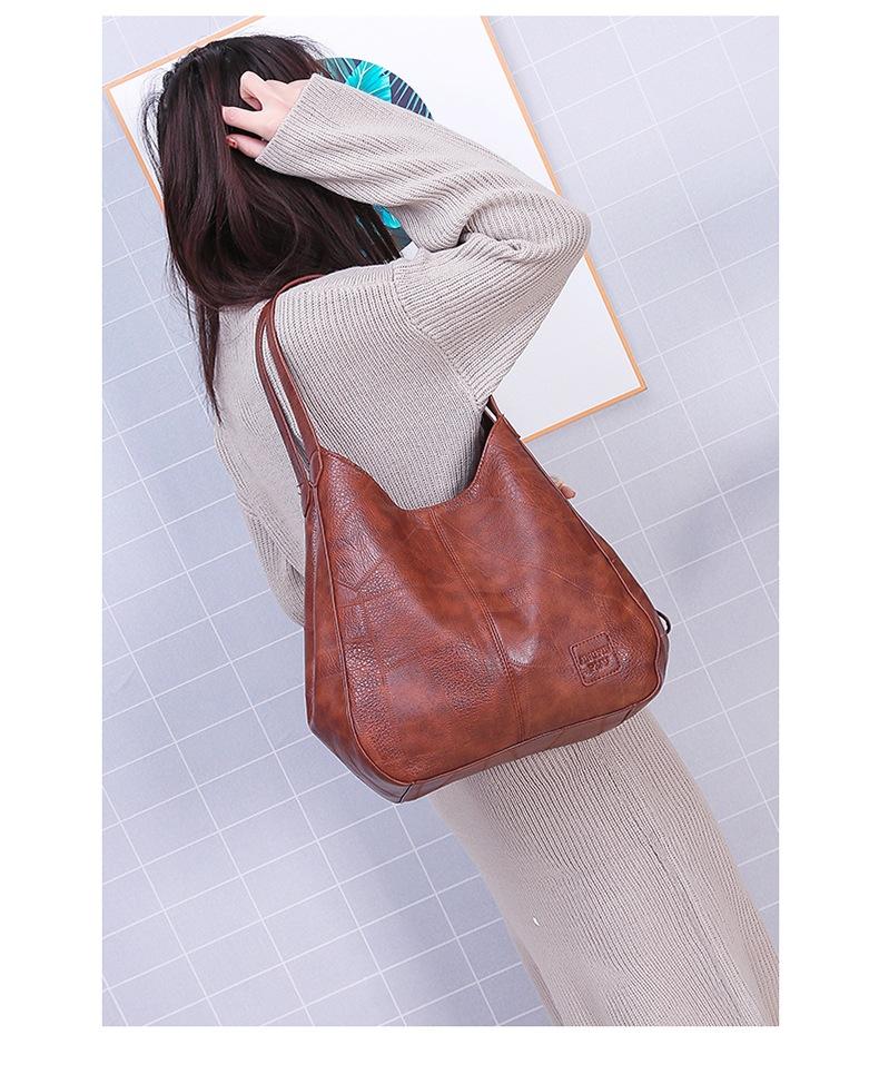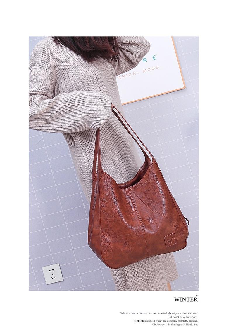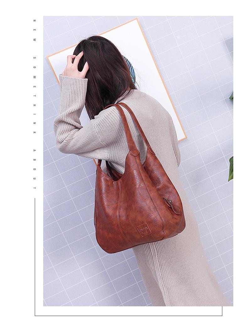 Bolso de mano retro de cuero suave estilo coreano para comercio exterior, bolso de hombro sencillo y artístico, bolso cruzado informal multicapa para mujer