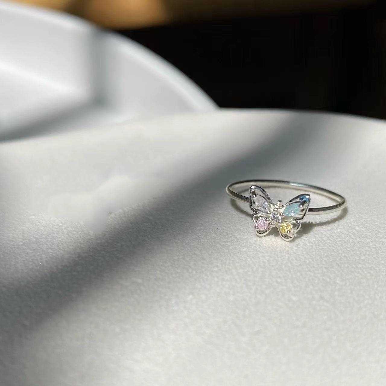 Anillo de Hada Mariposa Femenino Diseño Nicho Ins Original Alto Sentido Zircón Mariposa Pequeña Anillo Simple para Novia