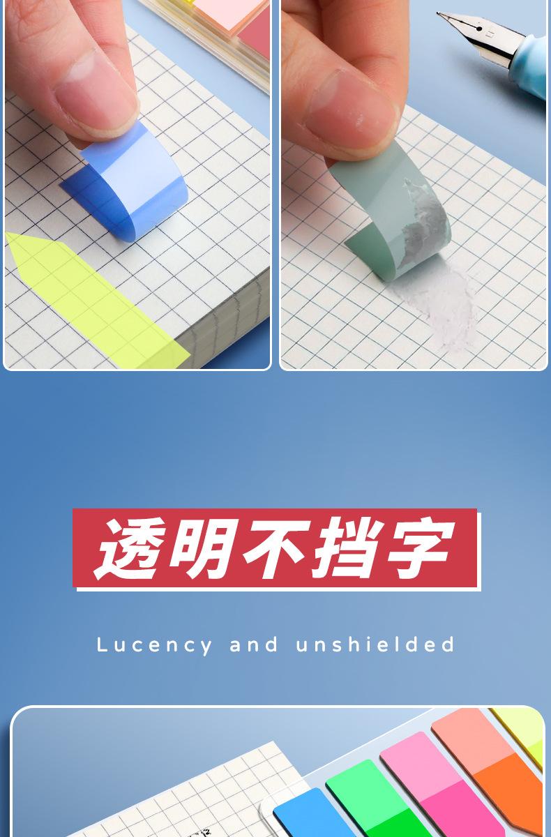 Etiqueta adhesiva de índice, papel, nota adhesiva, escritura, marcapáginas de plástico con tira pequeña, marcapáginas transparente para estudiantes