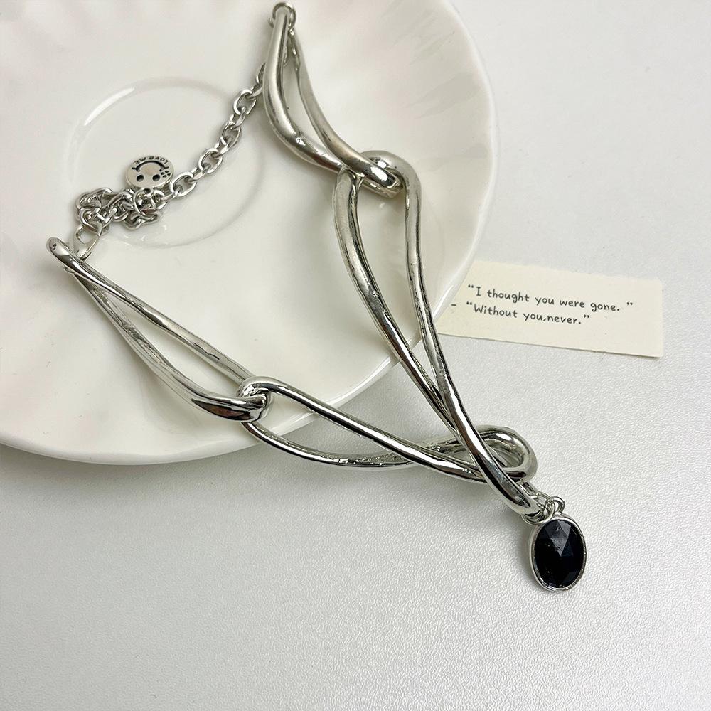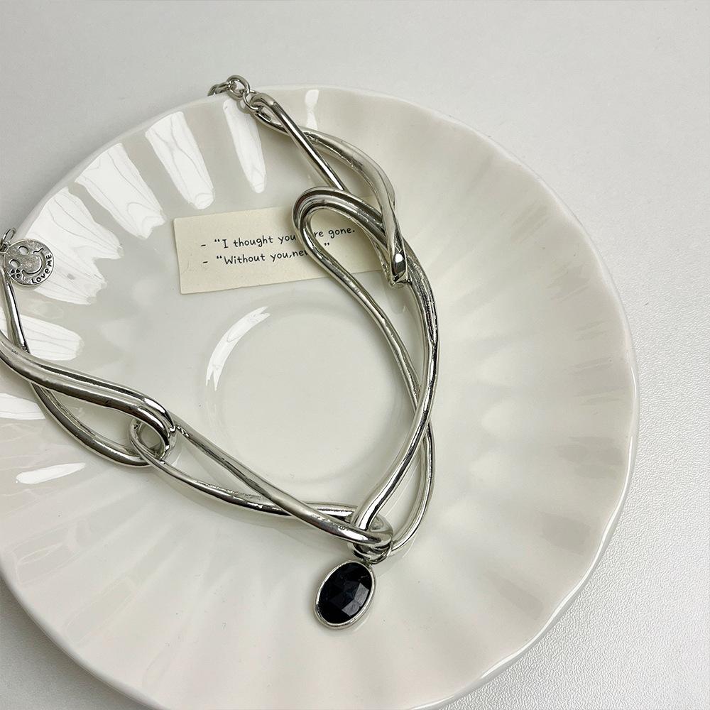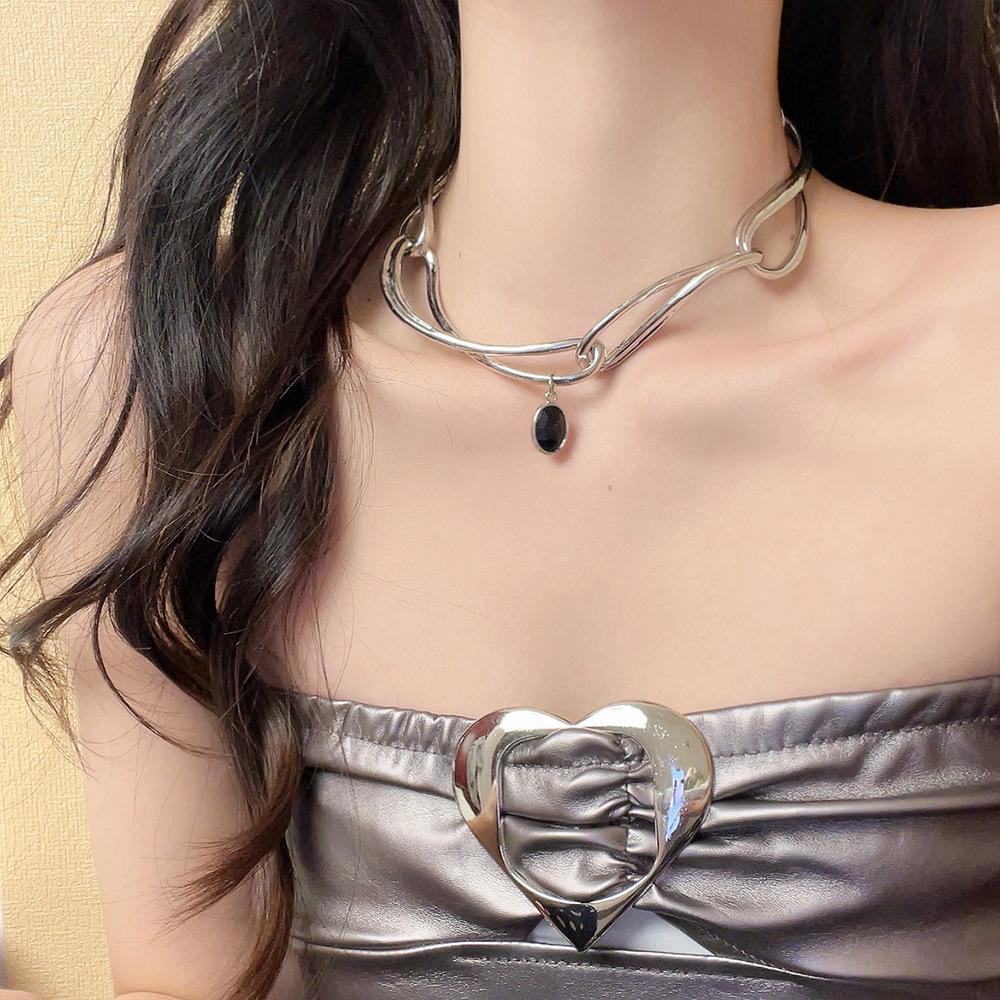 Collar de ágata marina exagerada, popular y de lujo, de alta calidad, con cadena geométrica de plata, para mujer, 2023