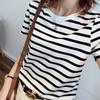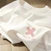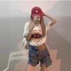 Camiseta de manga corta de algodón pesado estilo retro americano para mujer, camiseta holgada de verano de estilo coreano, top de media manga con hombros descubiertos para mujer, venta al por mayor