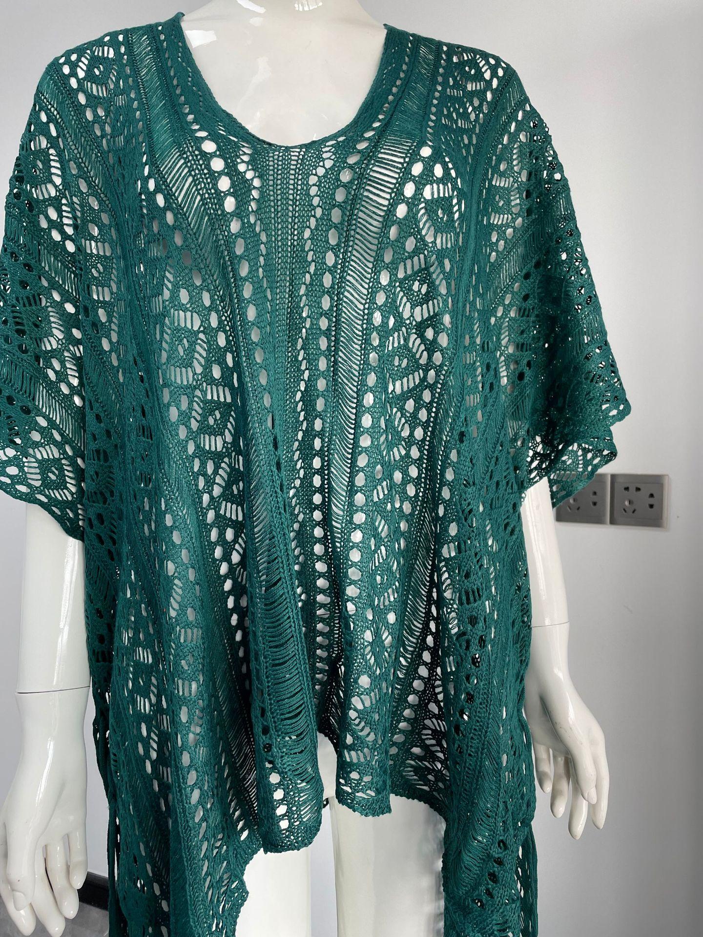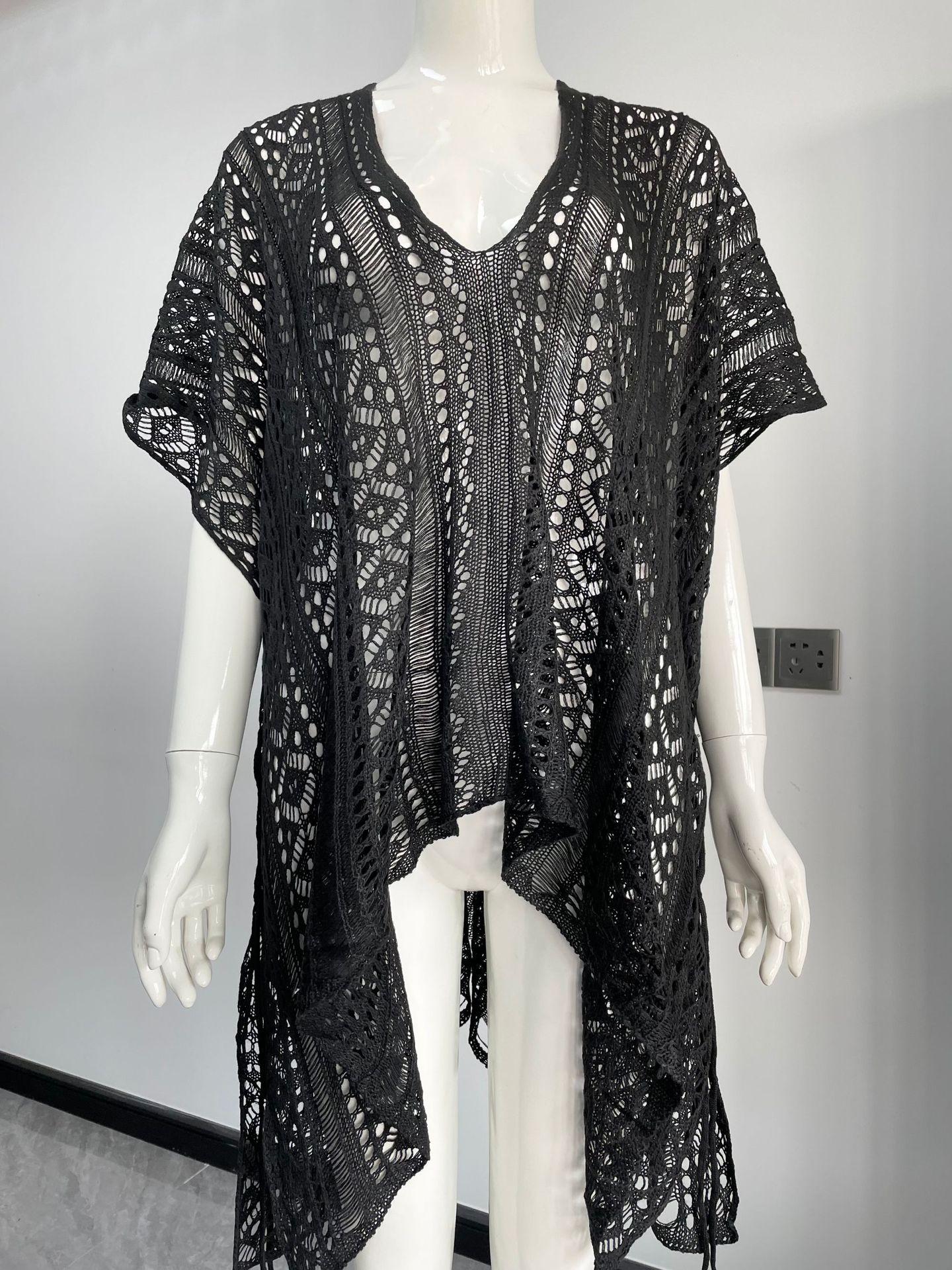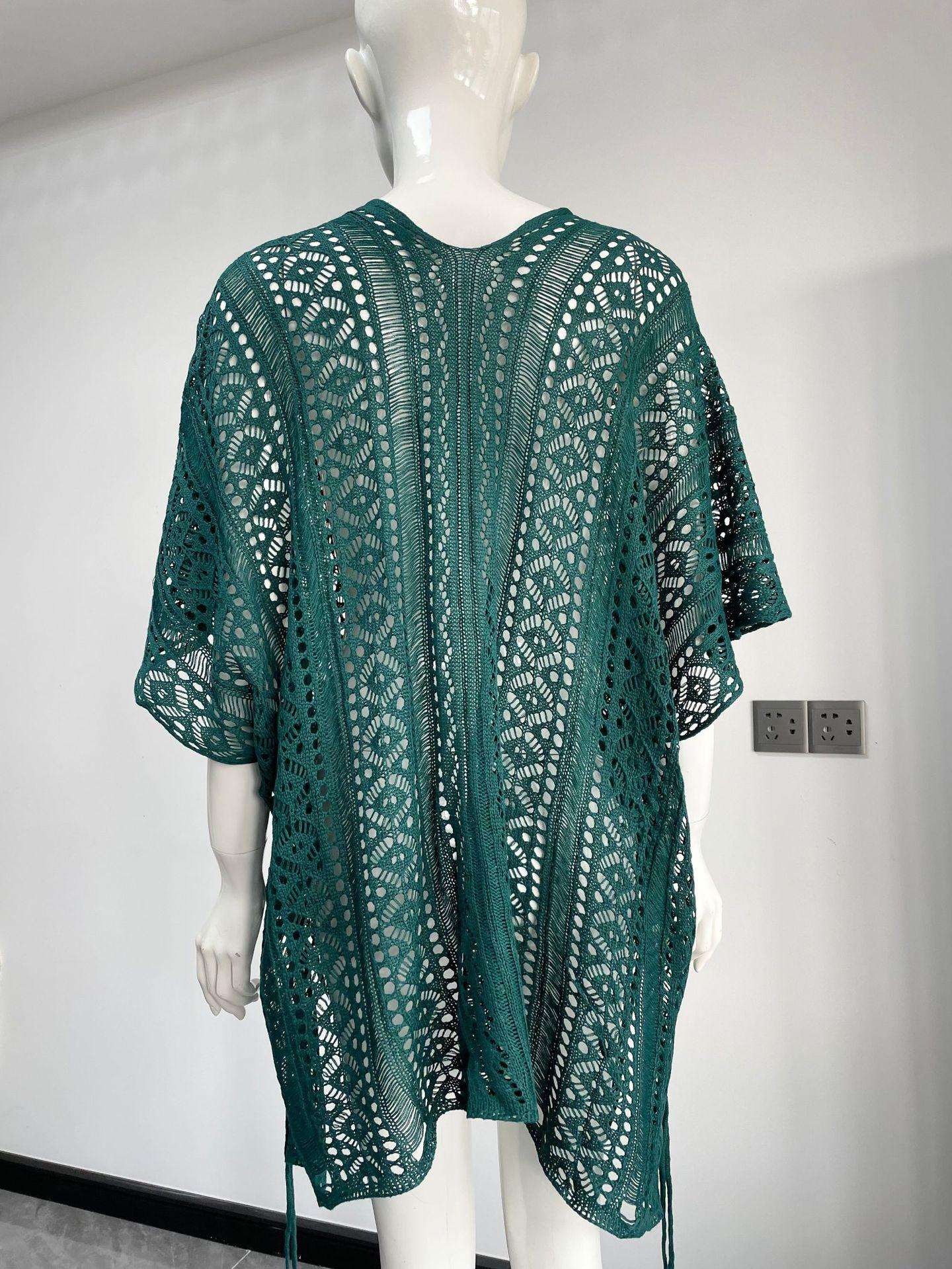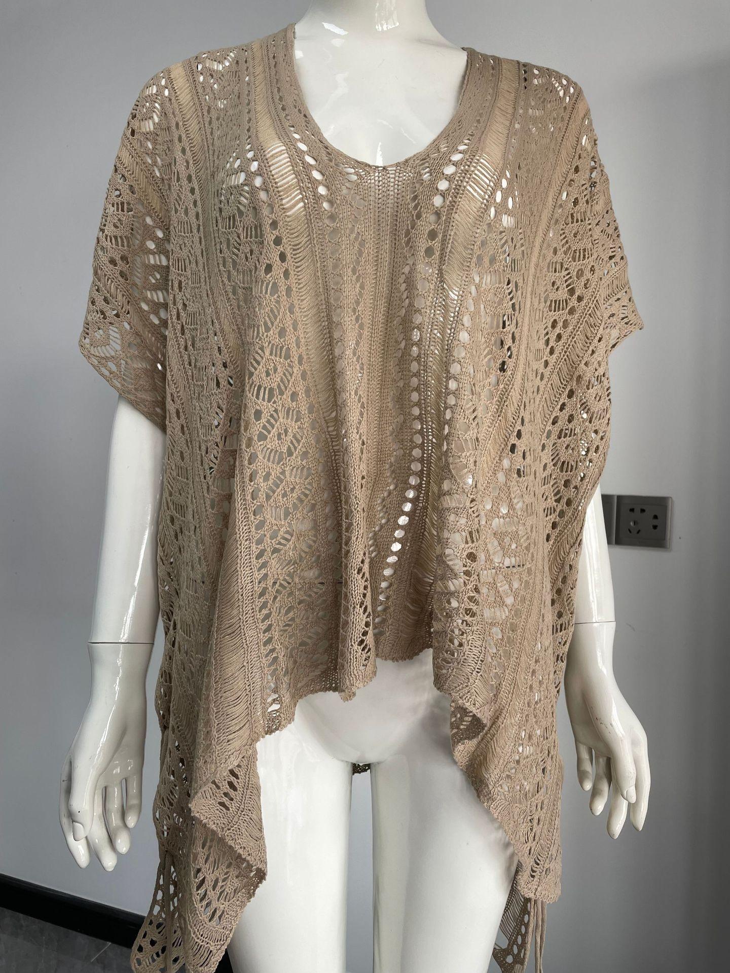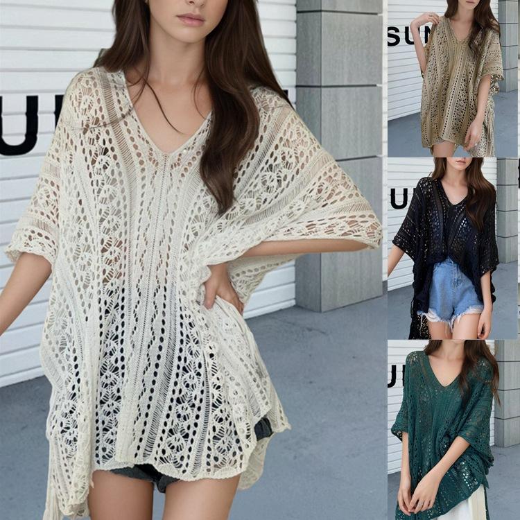 2025 Export Amazon Vacaciones de Playa Protección Solar Bikini Cover-Up Jersey Cuello V Calado Talla Grande Tejido de Punto para Mujer