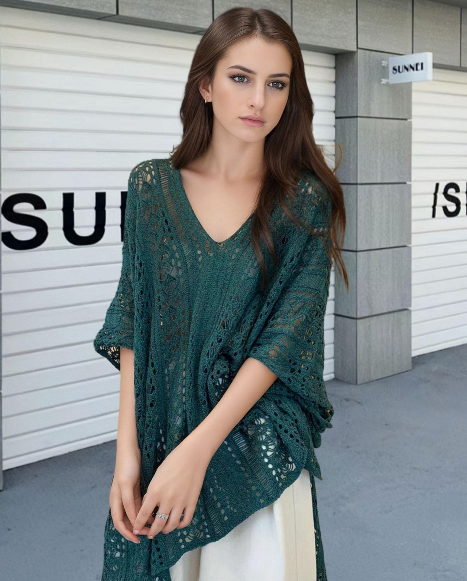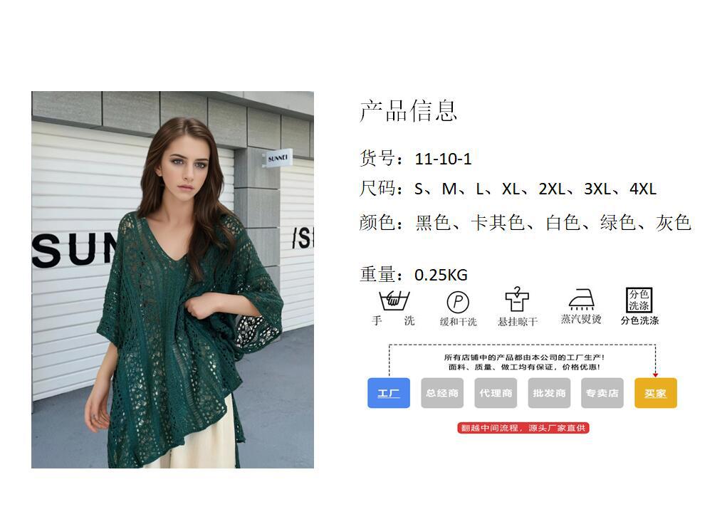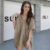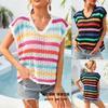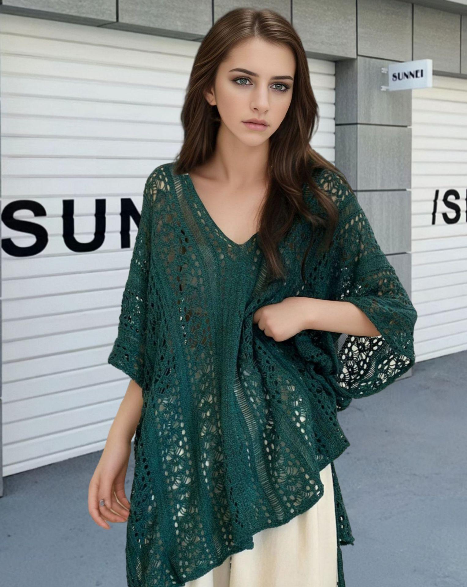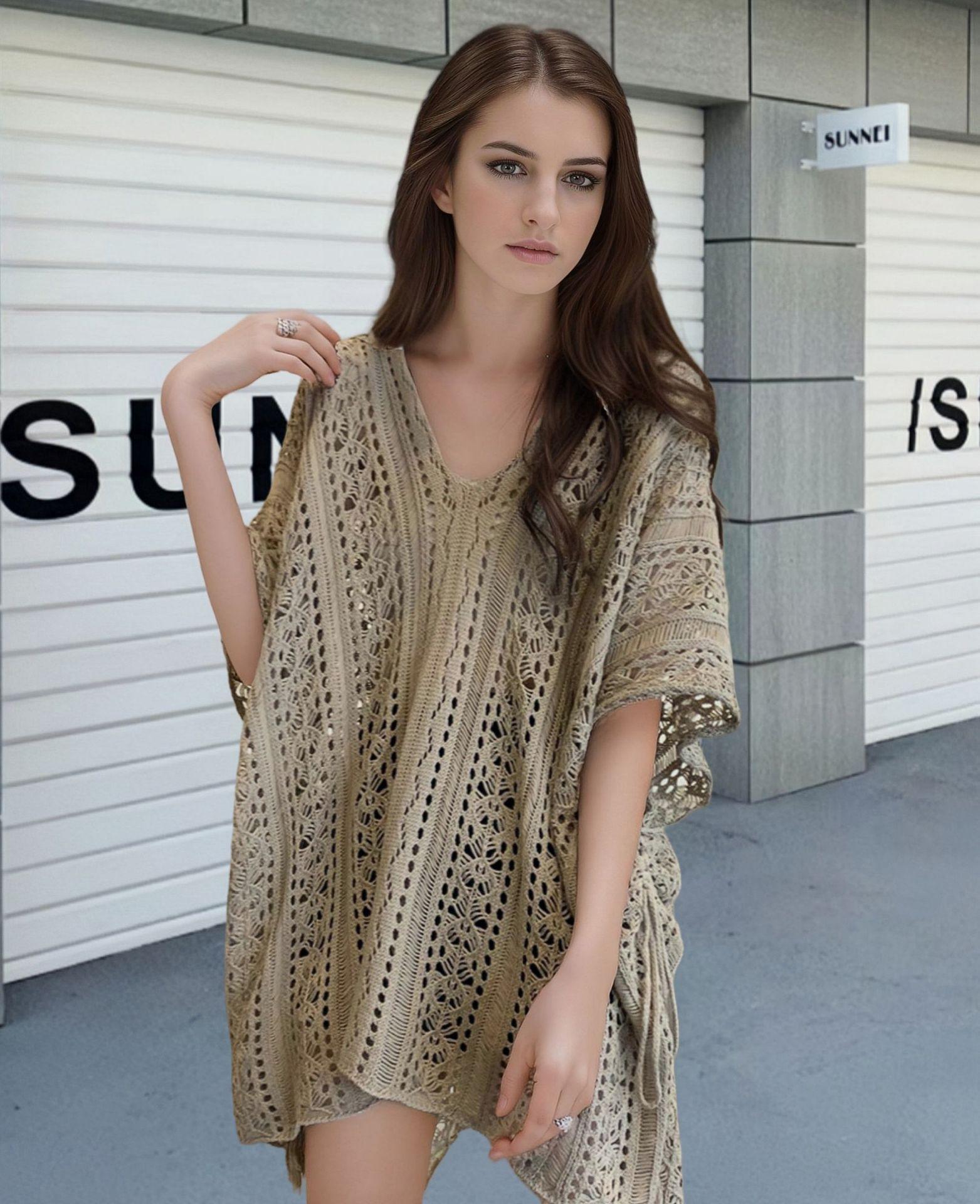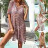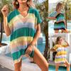 2025 Export Amazon Vacaciones de Playa Protección Solar Bikini Cover-Up Jersey Cuello V Calado Talla Grande Tejido de Punto para Mujer