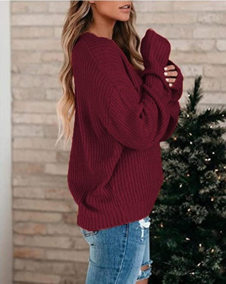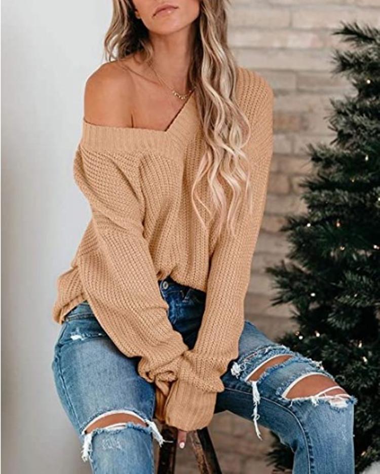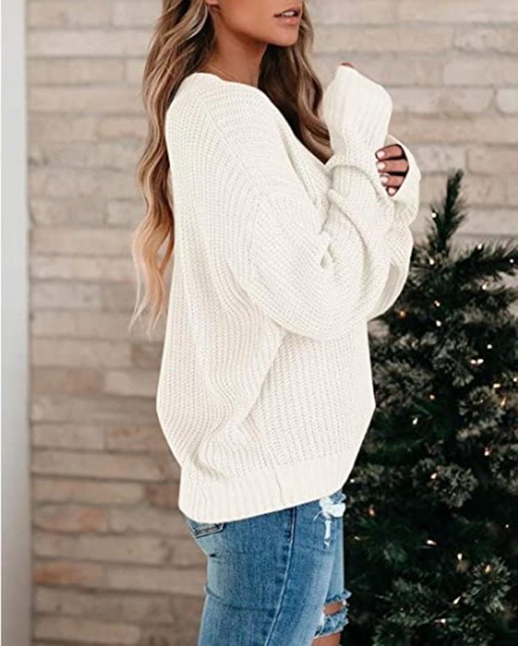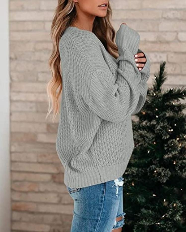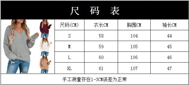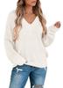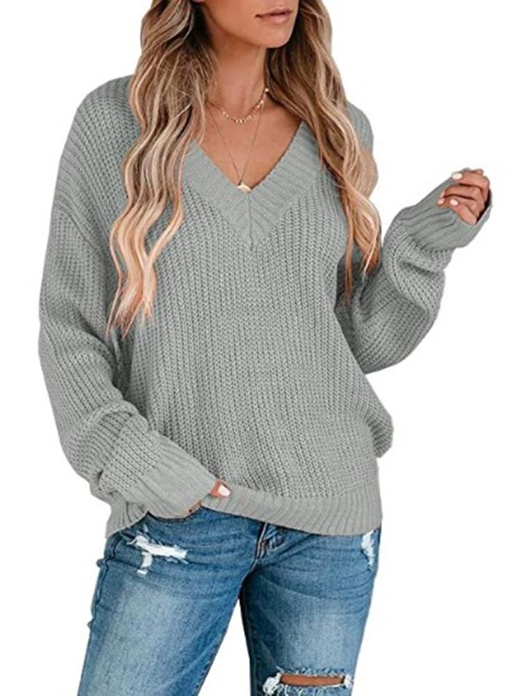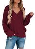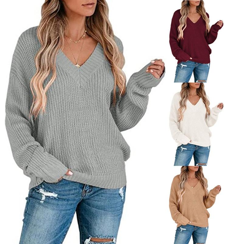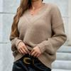 Suéter de mujer de color sólido con cuello en V y manga larga holgado informal de comercio exterior de Amazon, para mujer, de Europa y América