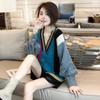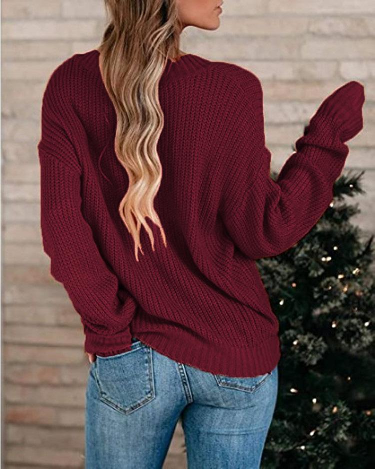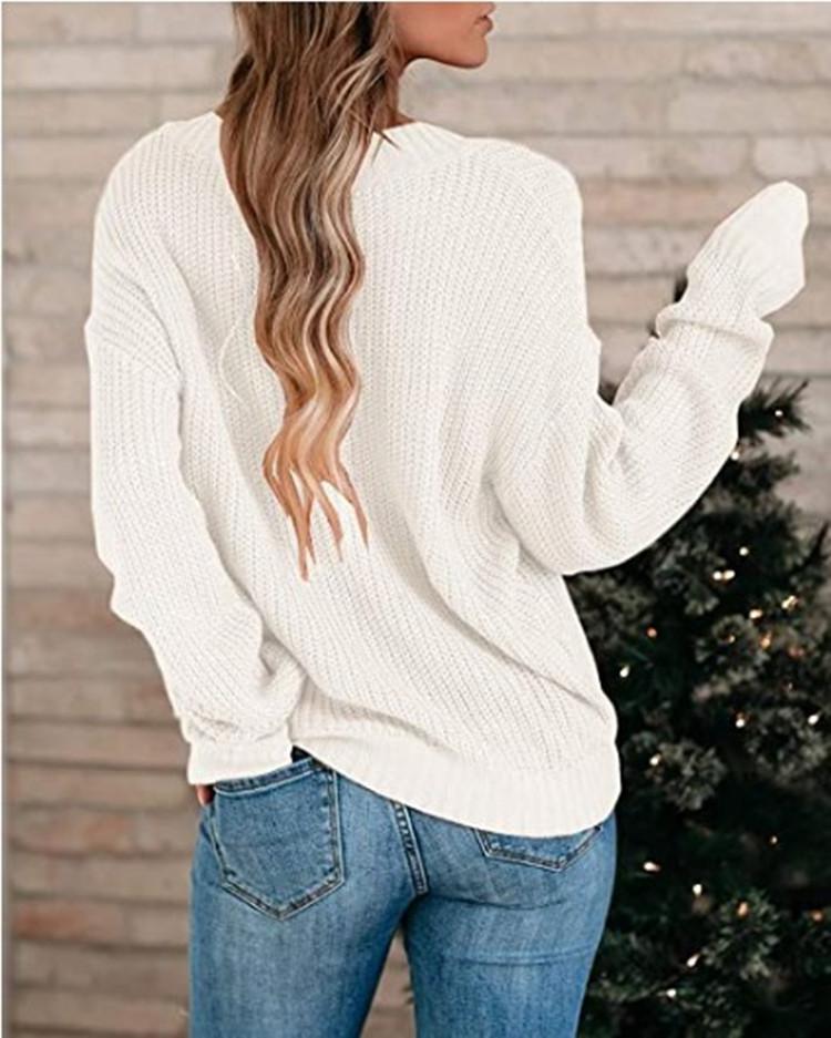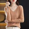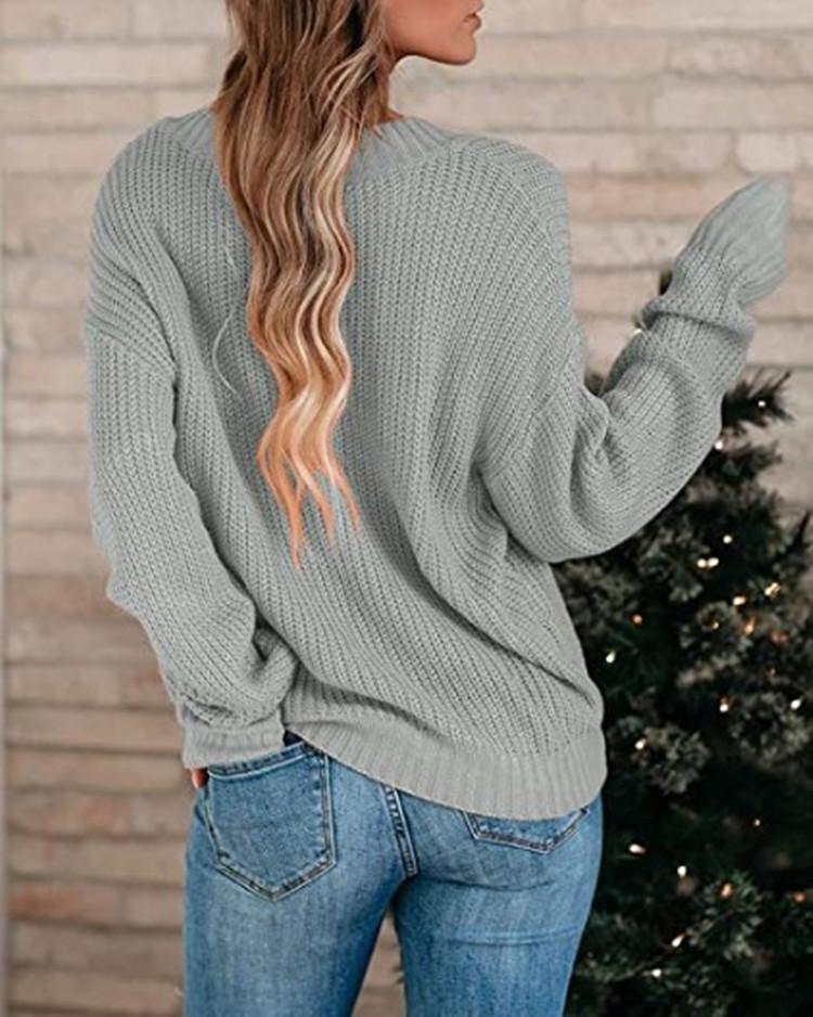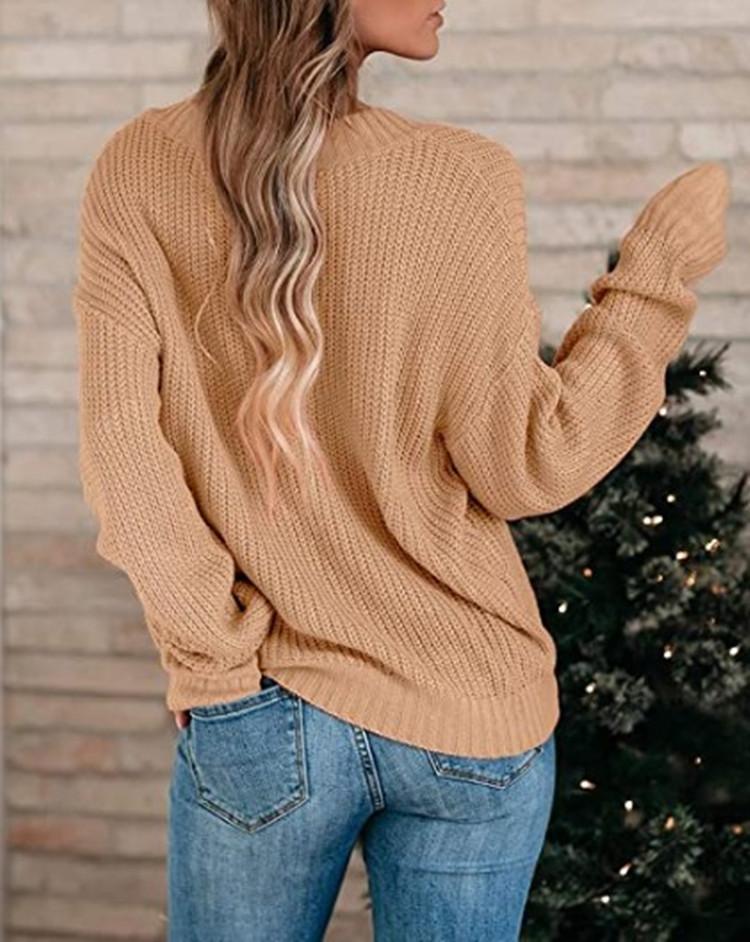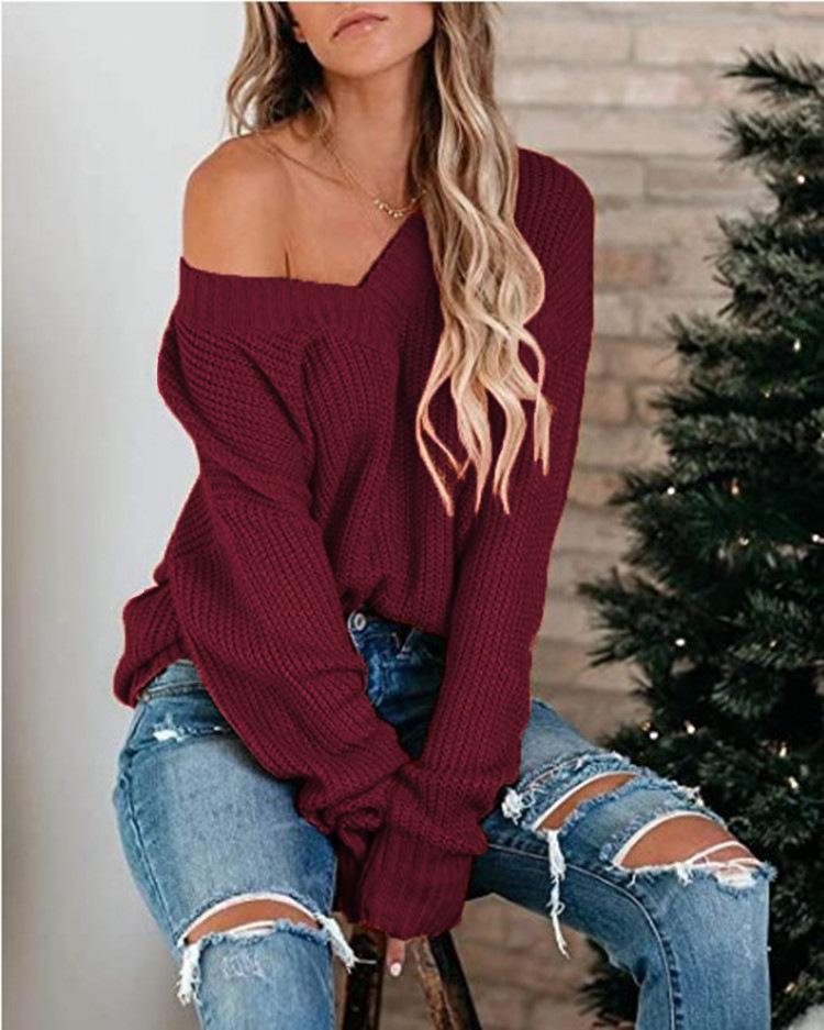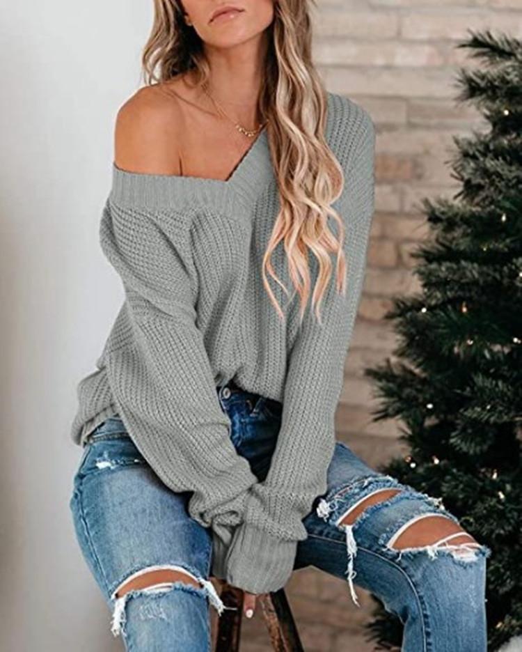 Suéter de mujer de color sólido con cuello en V y manga larga holgado informal de comercio exterior de Amazon, para mujer, de Europa y América