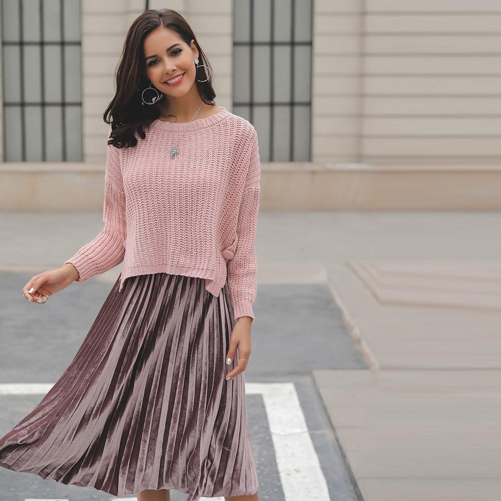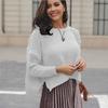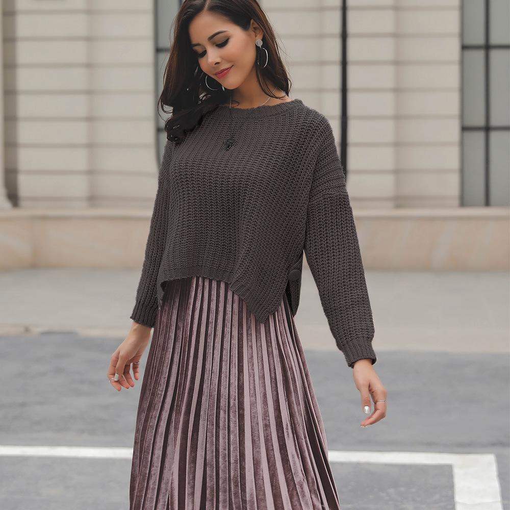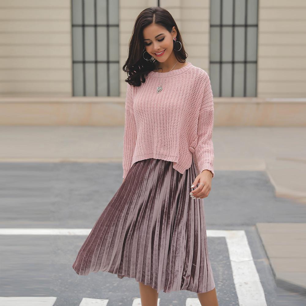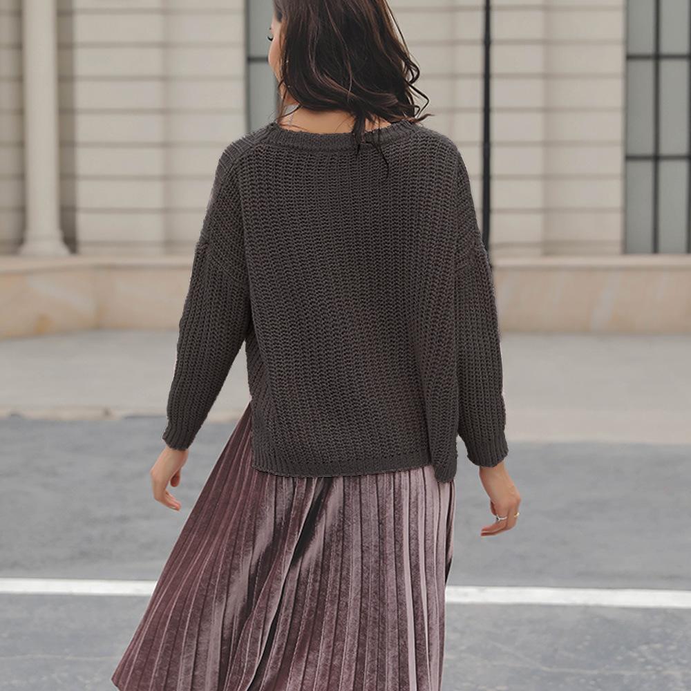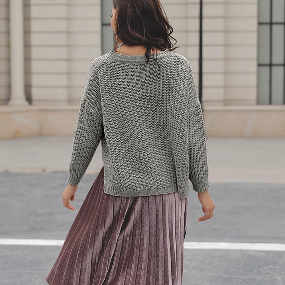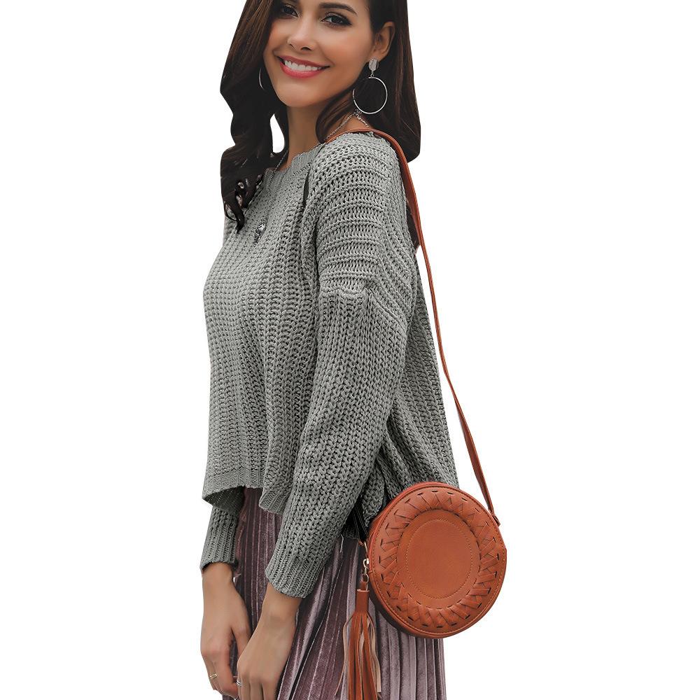 Suéter corto alto decorativo con hebilla de cartucho de punto básico de cuello redondo de color sólido de otoño e invierno para mujer de comercio exterior