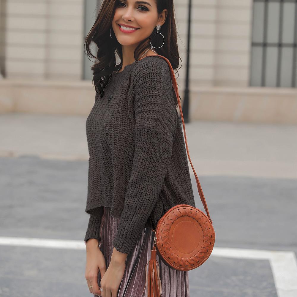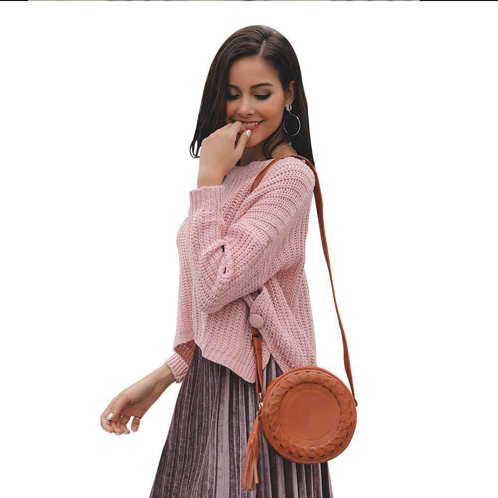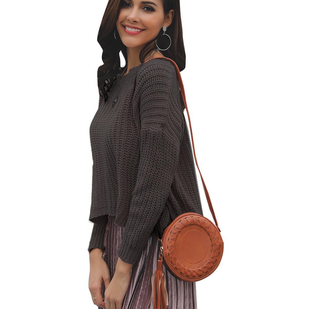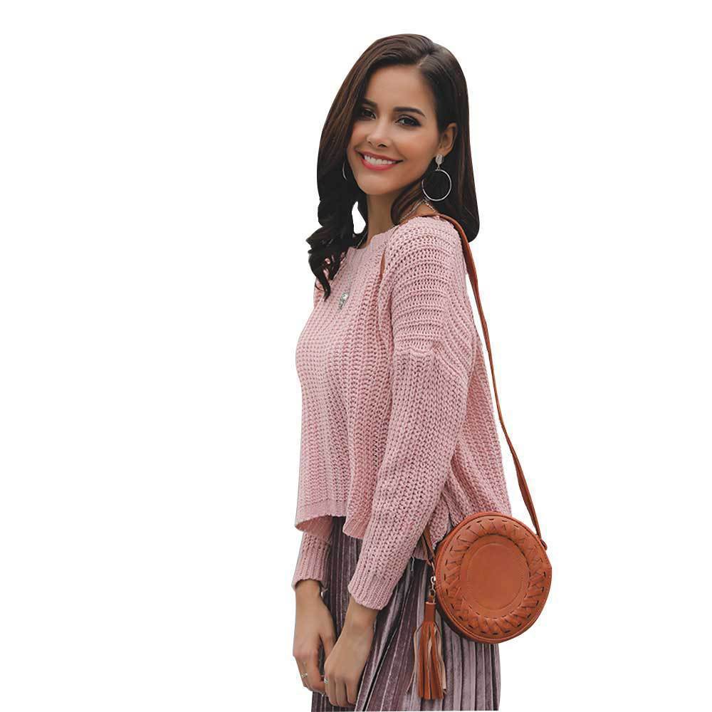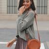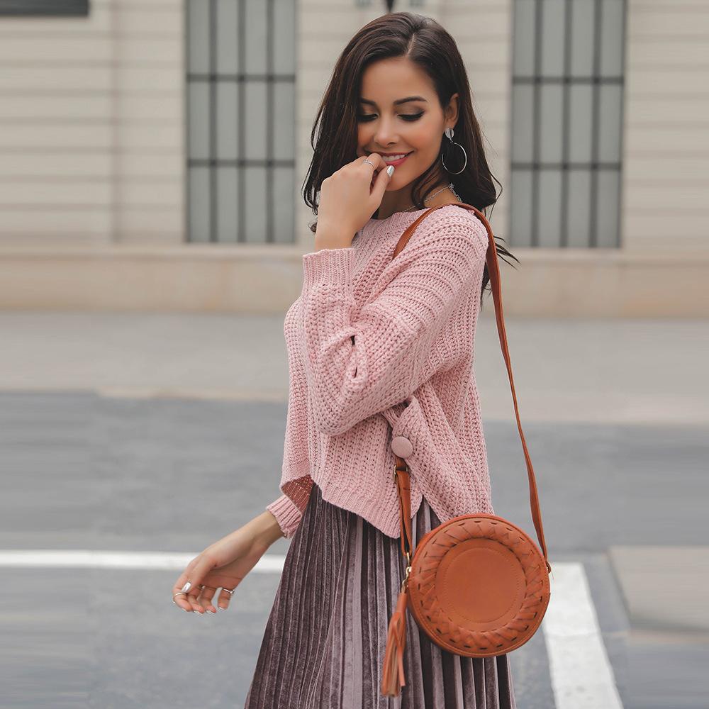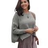 Suéter corto alto decorativo con hebilla de cartucho de punto básico de cuello redondo de color sólido de otoño e invierno para mujer de comercio exterior