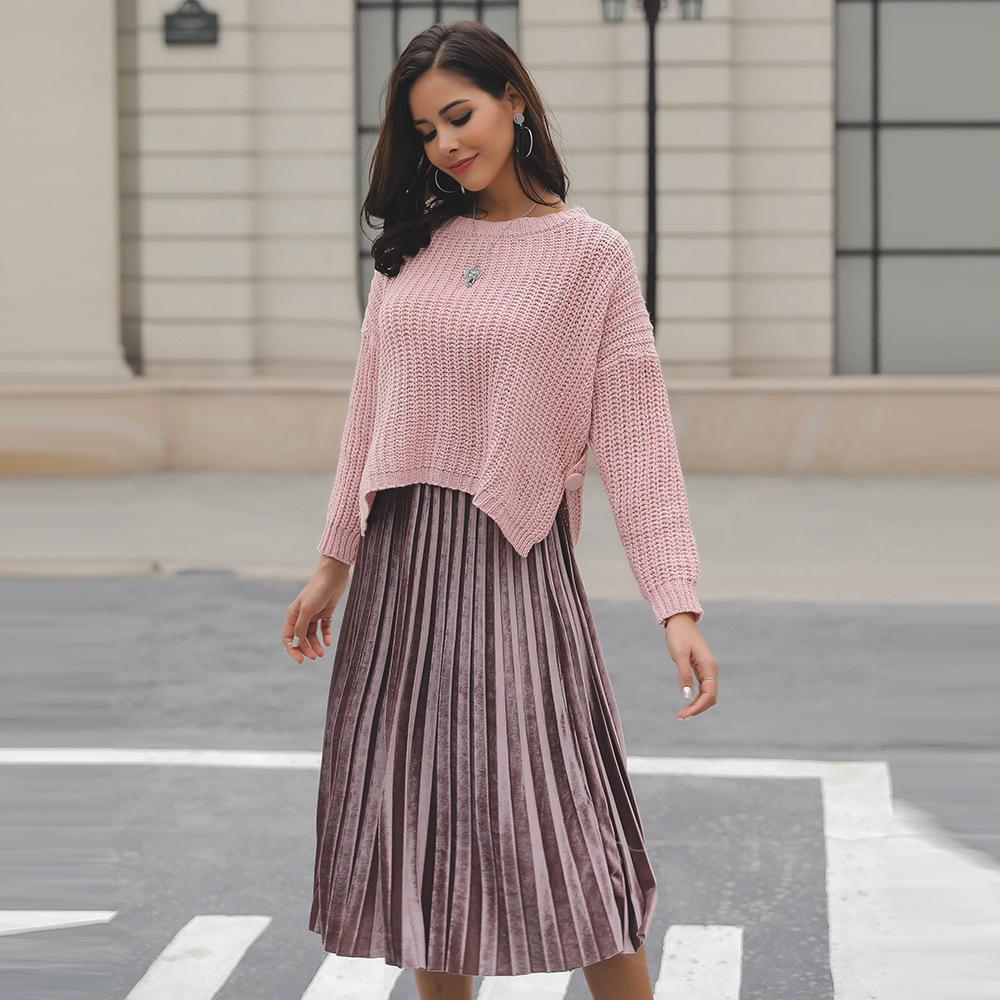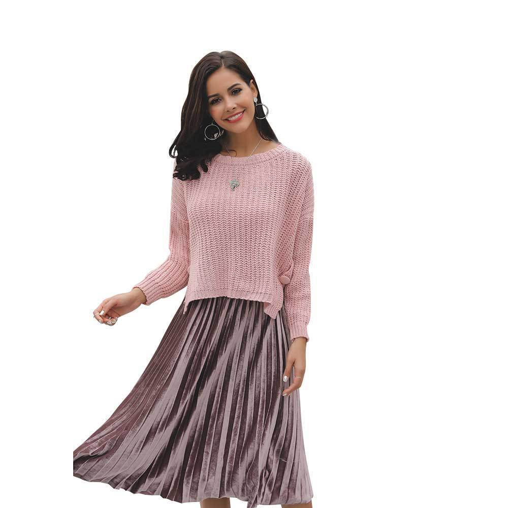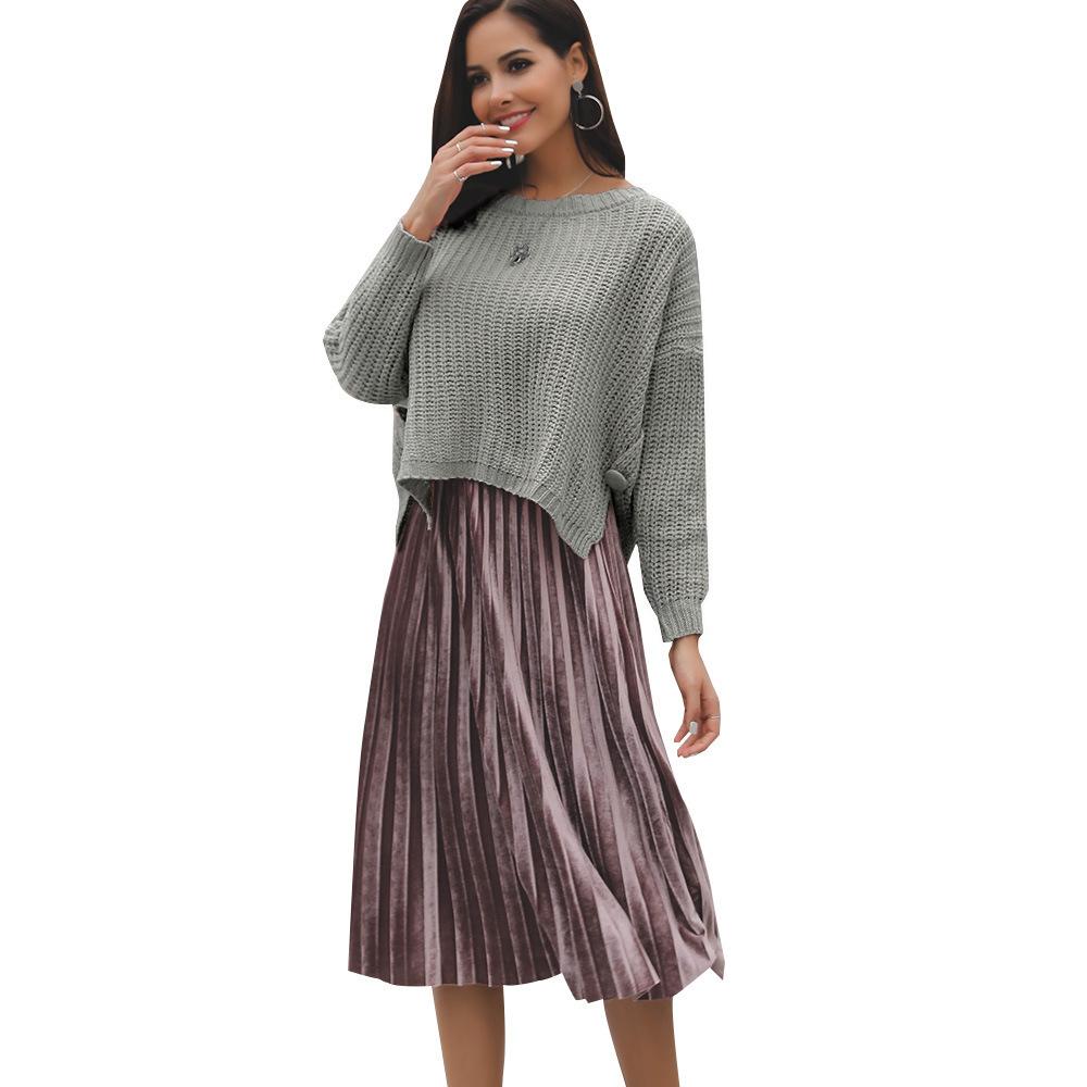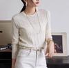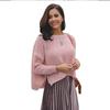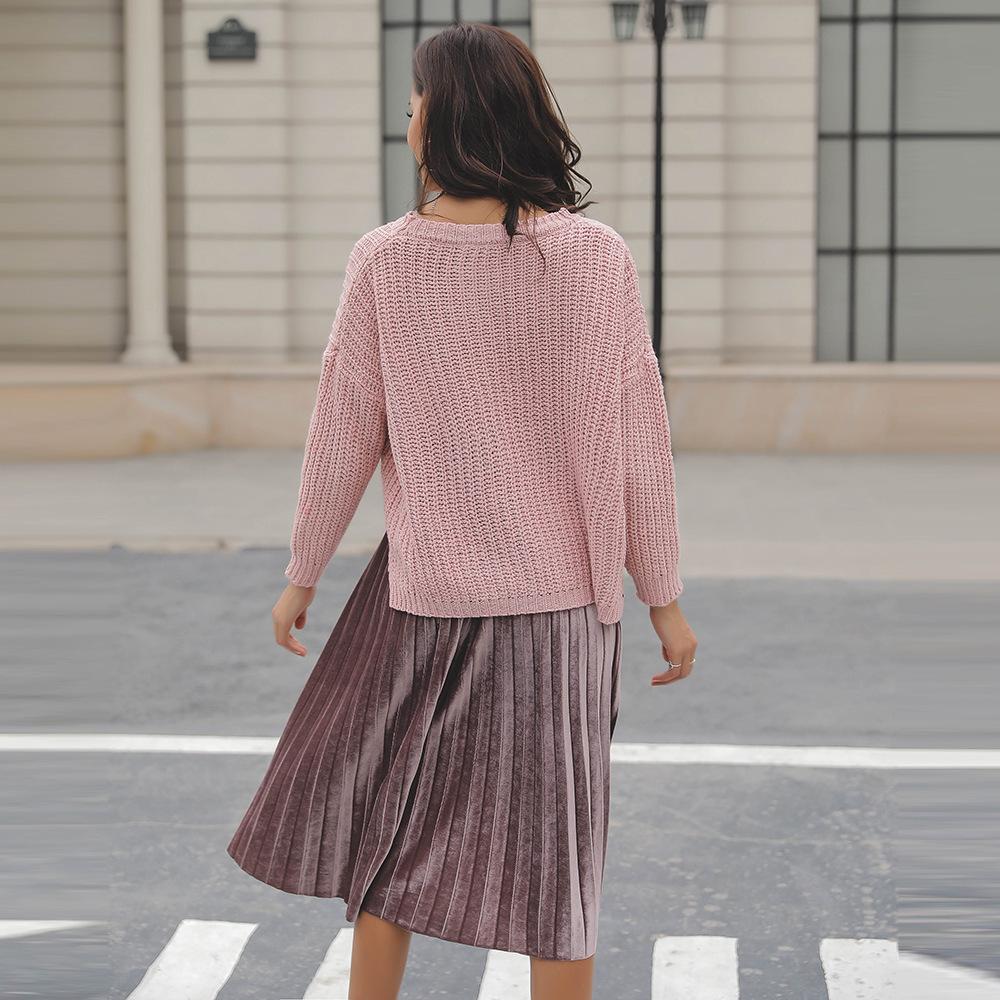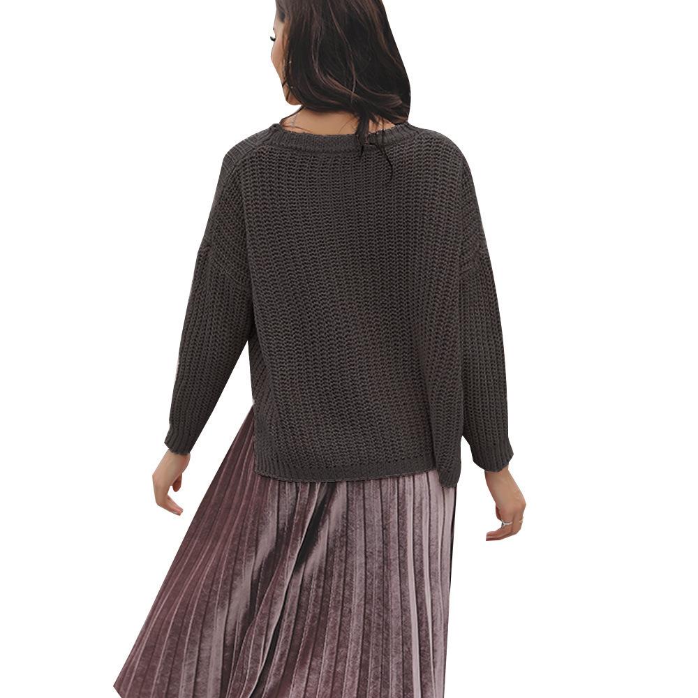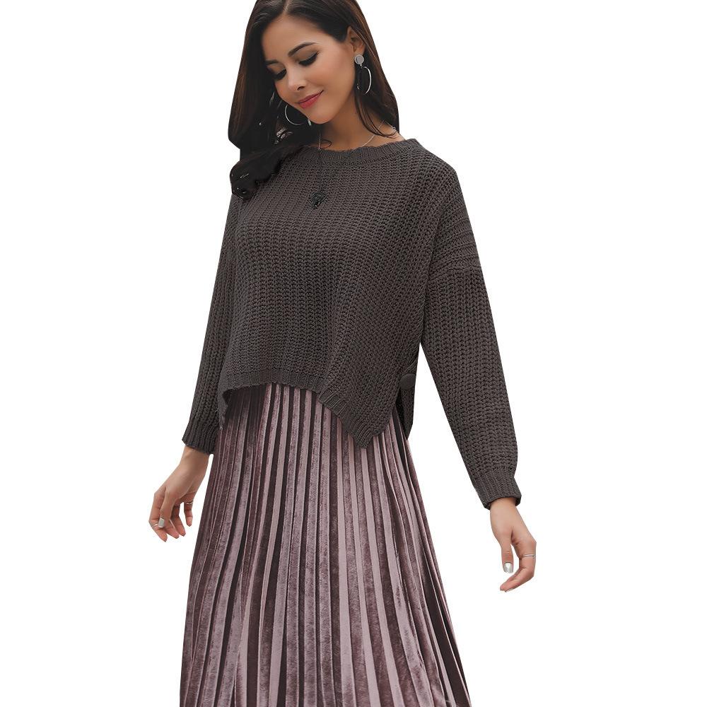 Suéter corto alto decorativo con hebilla de cartucho de punto básico de cuello redondo de color sólido de otoño e invierno para mujer de comercio exterior