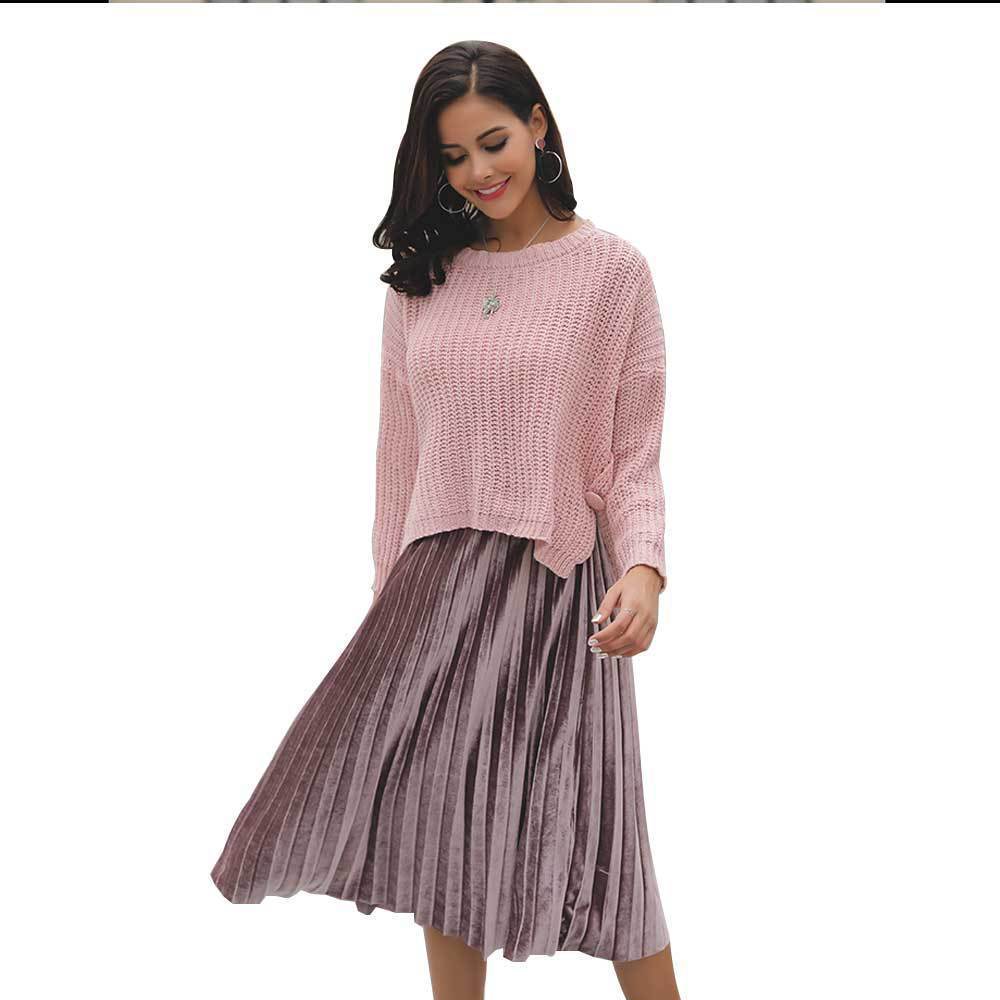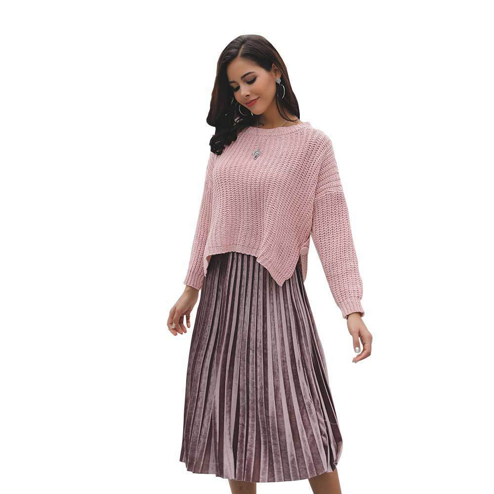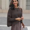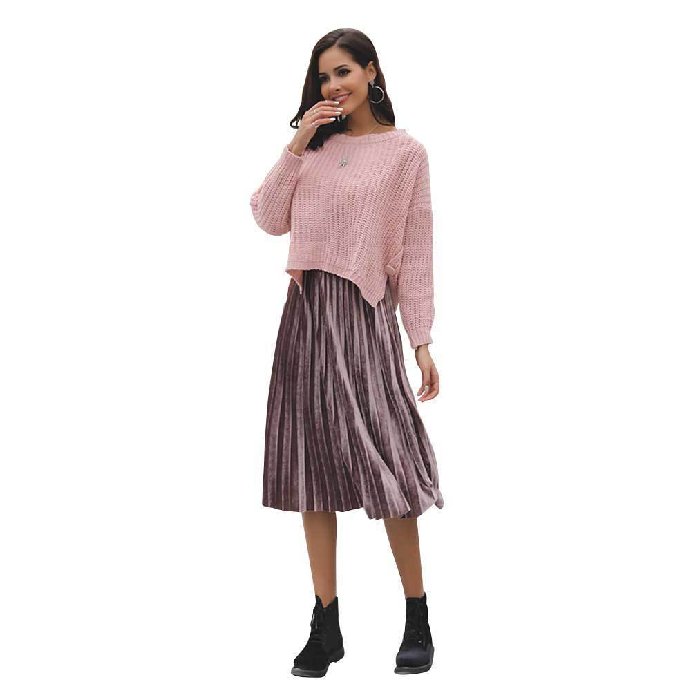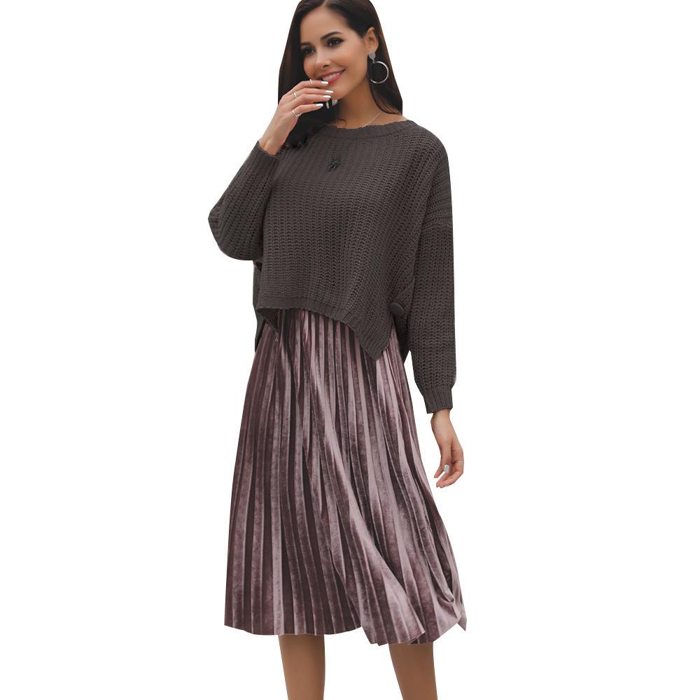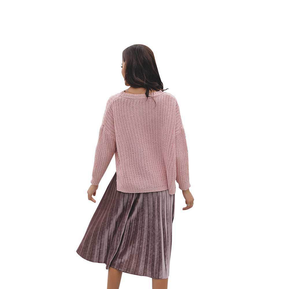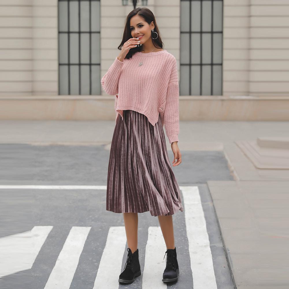 Suéter corto alto decorativo con hebilla de cartucho de punto básico de cuello redondo de color sólido de otoño e invierno para mujer de comercio exterior