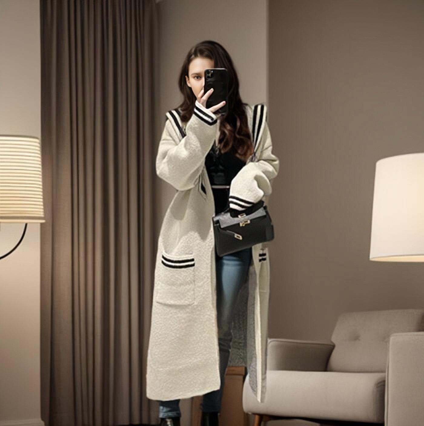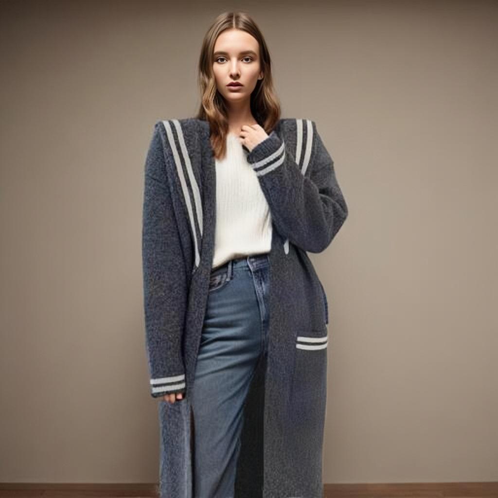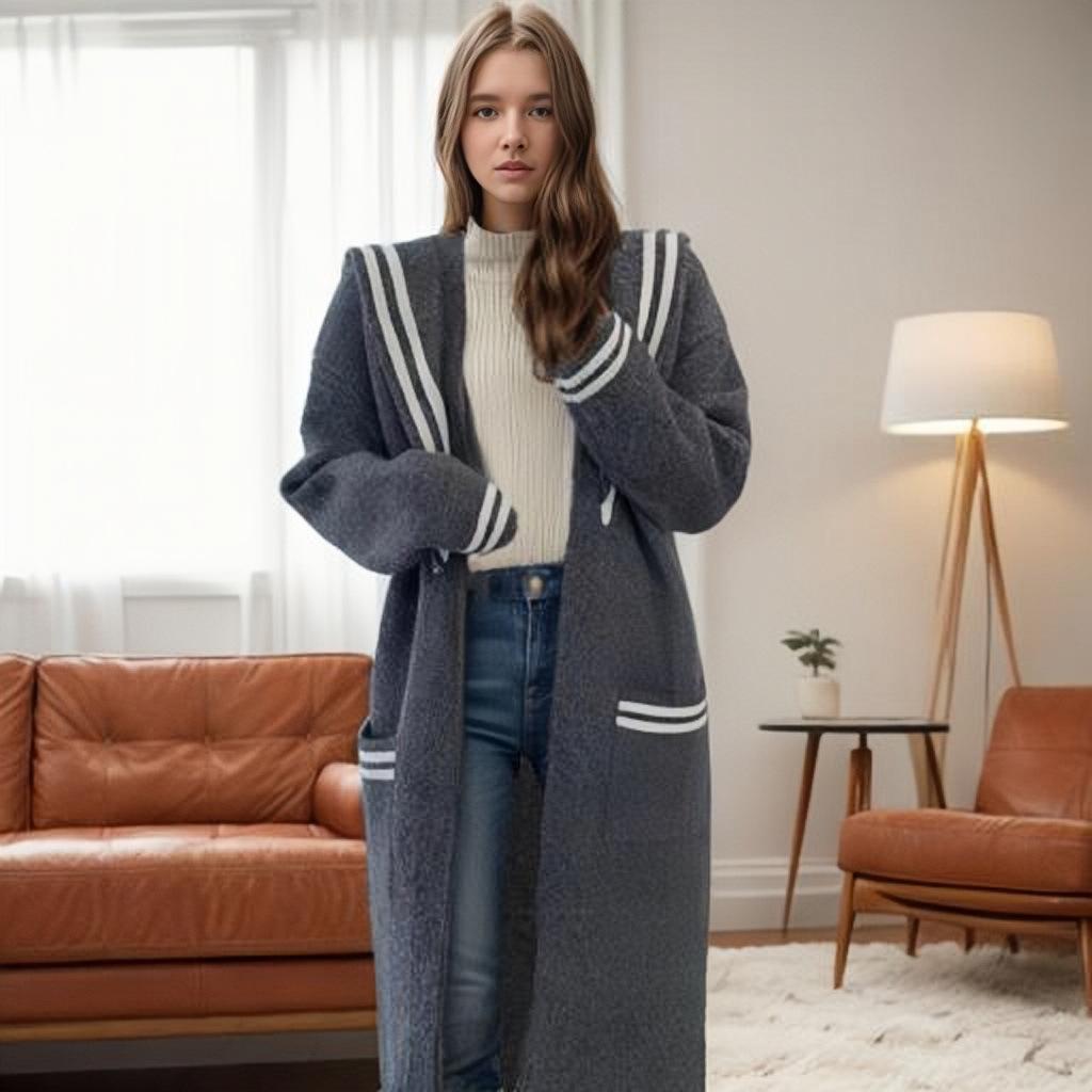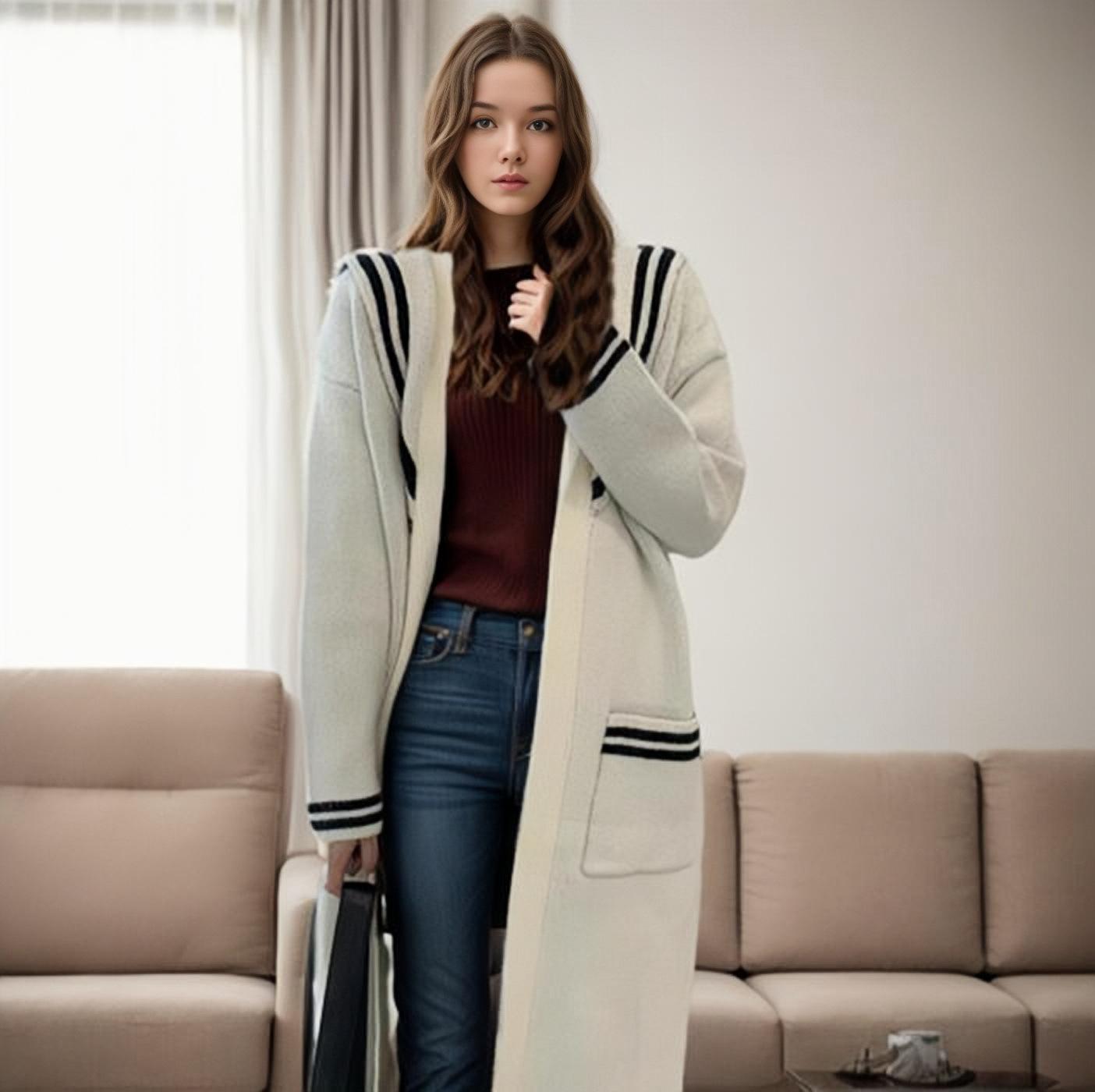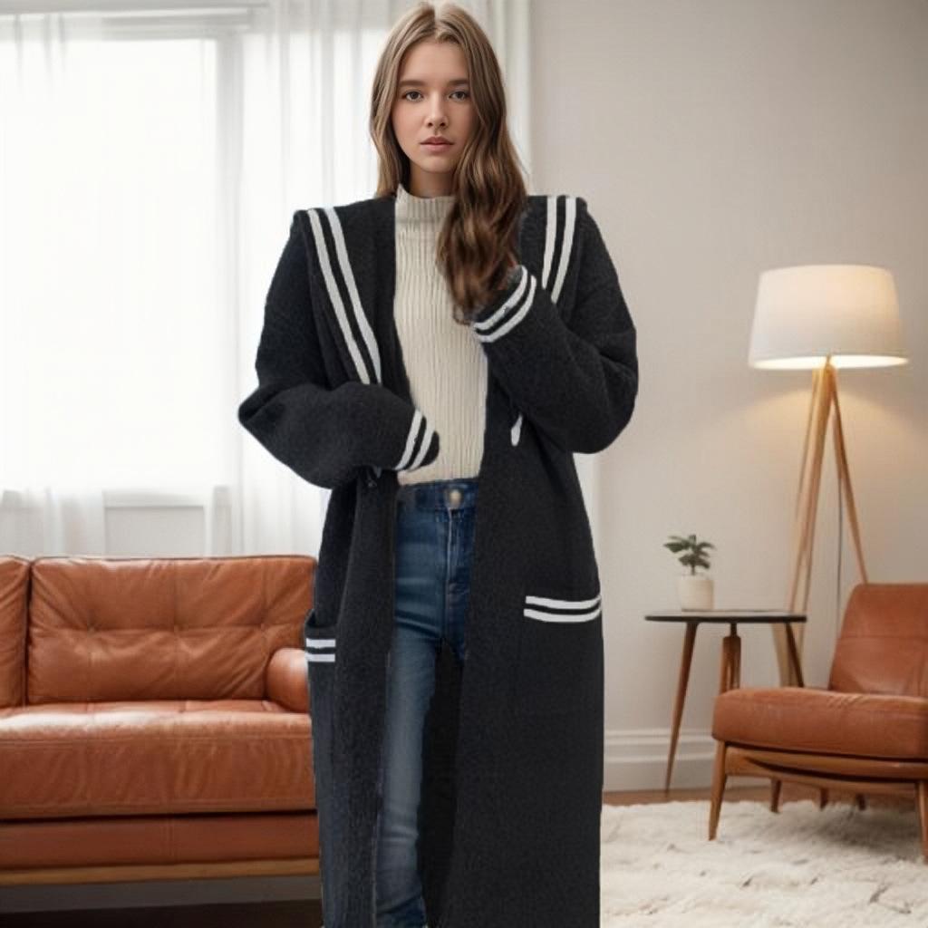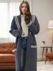 Chaqueta informal a rayas de moda transfronteriza de Amazon para mujer europea y americana, suéter de punto de uniforme de béisbol versátil de manga larga