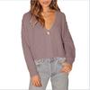 Comercio exterior otoño suministro transfronterizo cárdigan de punto de manga larga con botones para mujer europeo y americano suéter suelto con cuello en V de color sólido