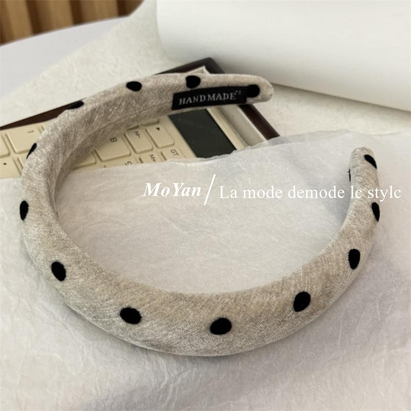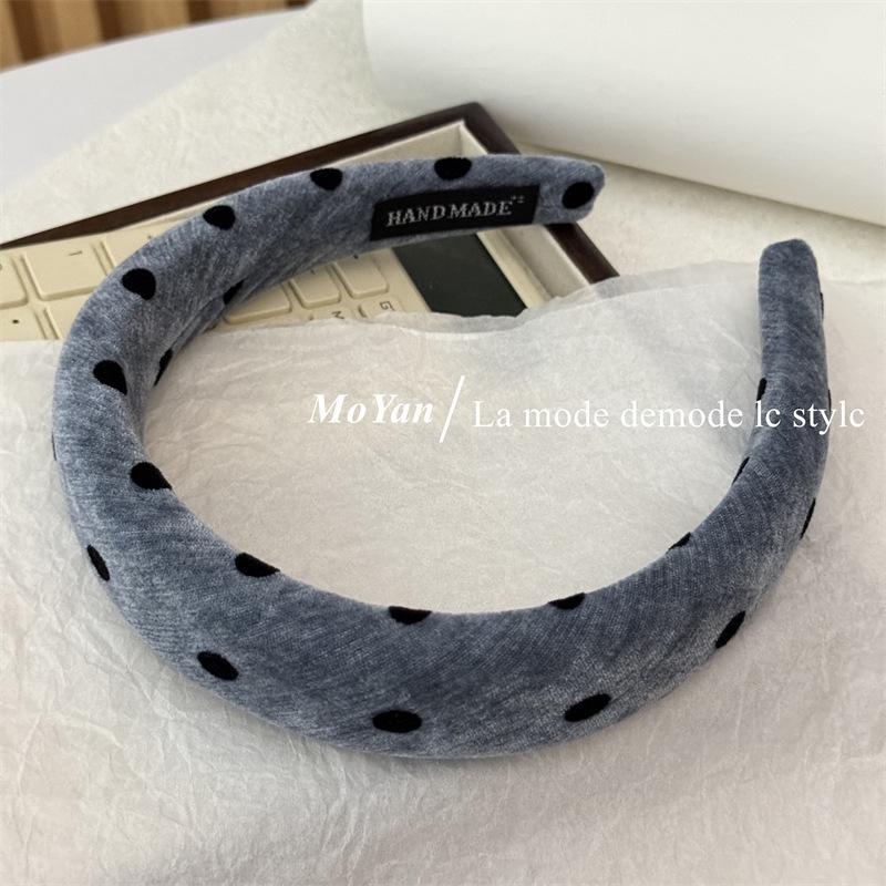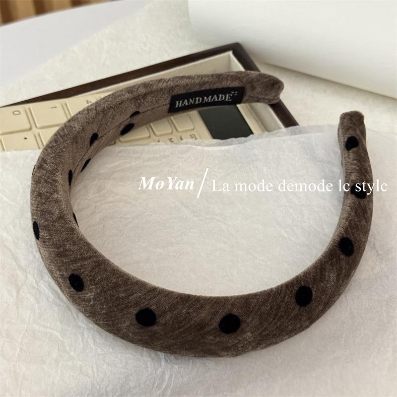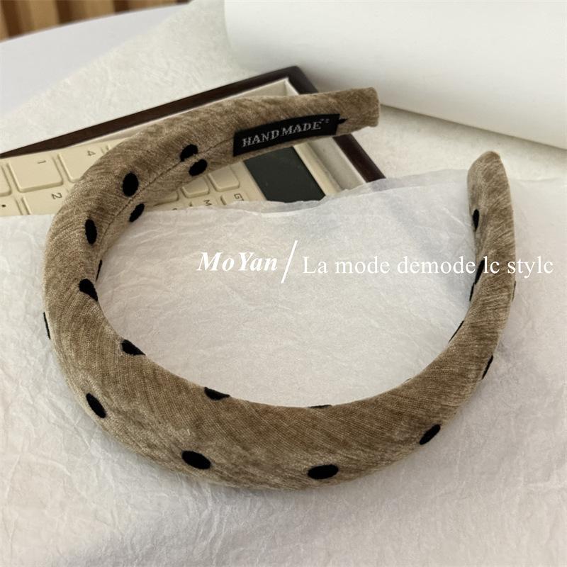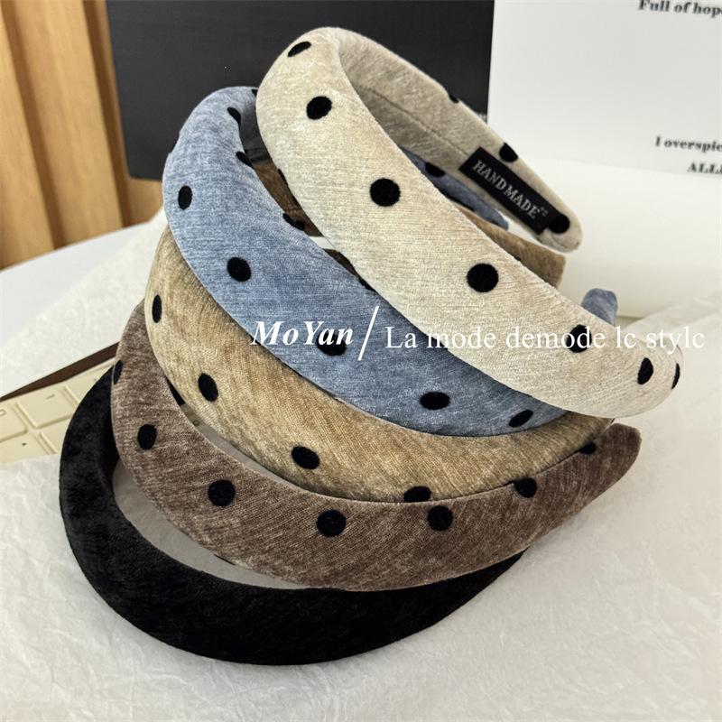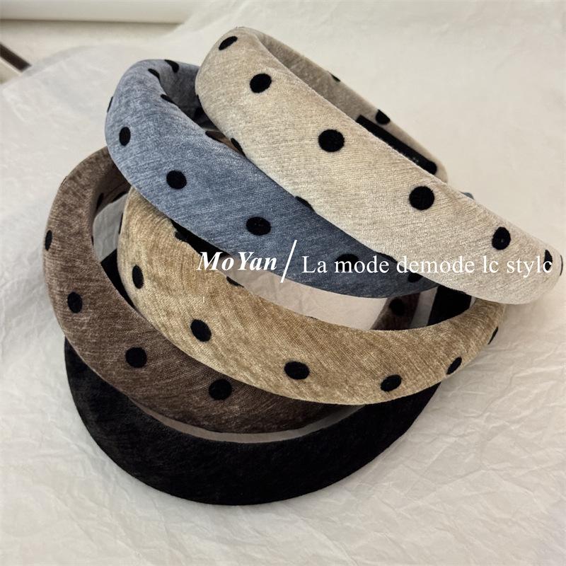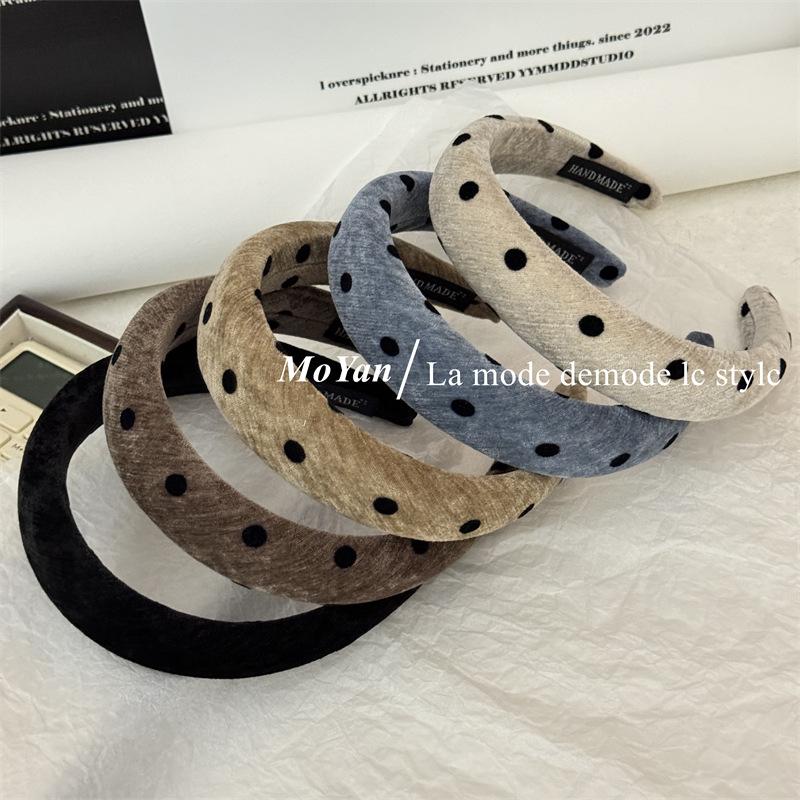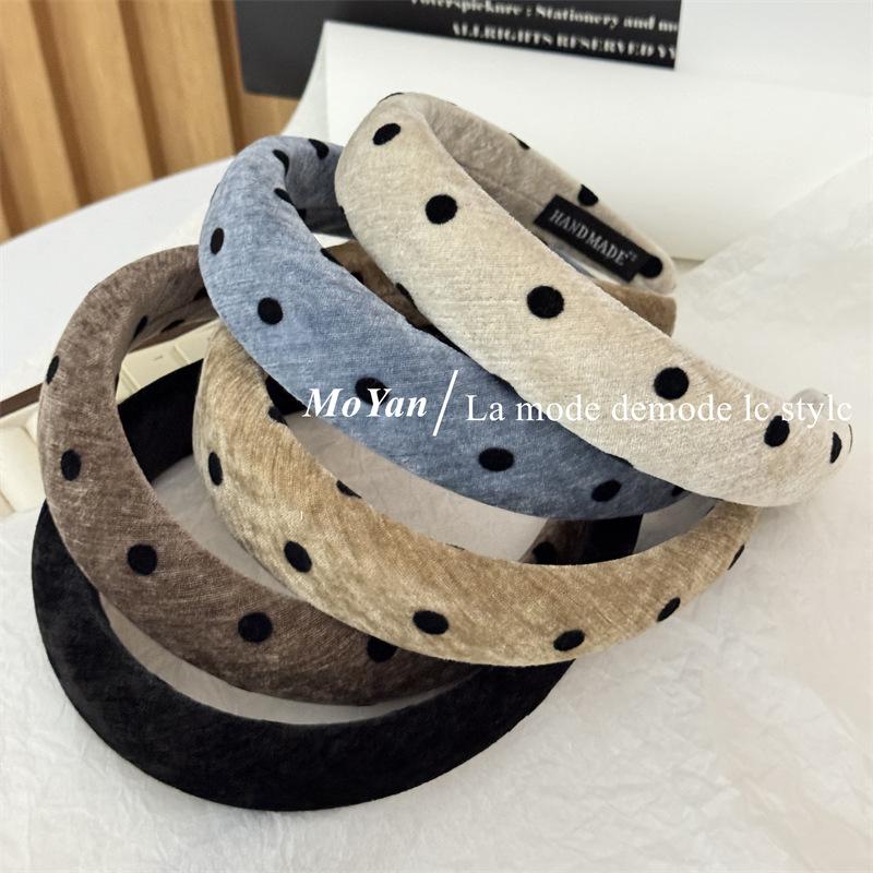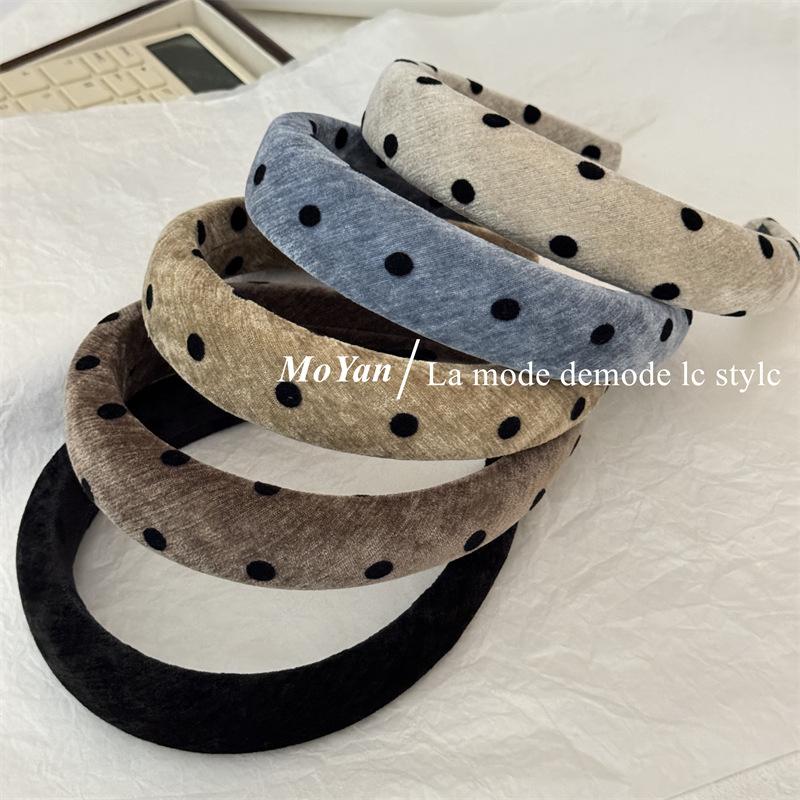 Diadema Retro Francesa de Terciopelo con Lunares de Onda Perezosa Simple para Combinar con Todo Diadema de Copa Craneal Alta para Mujer 2024 Nuevo Estilo Elegante Sello para el Cabello