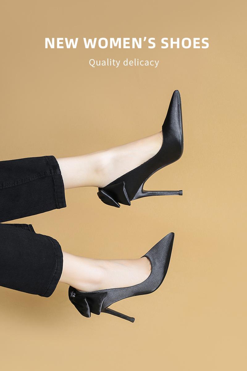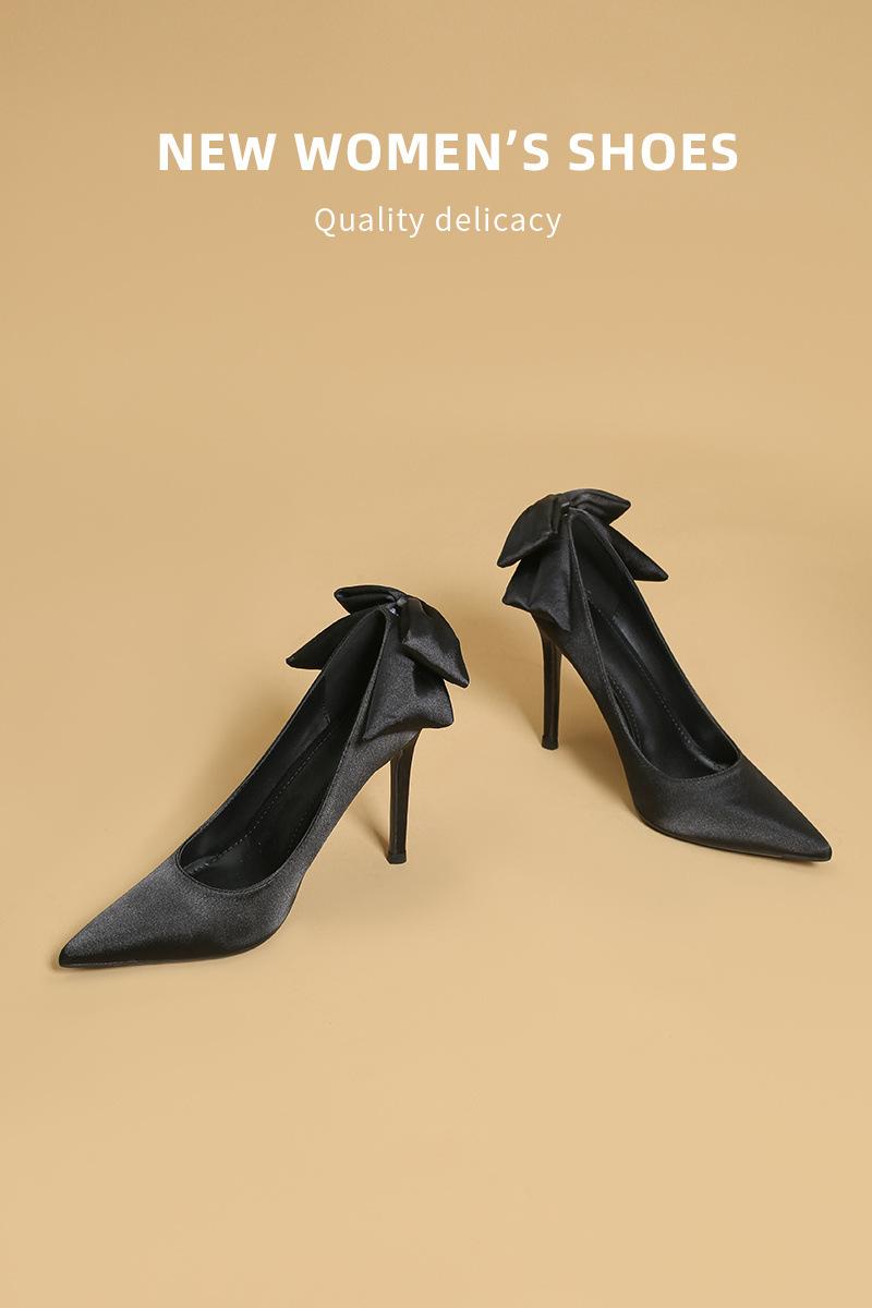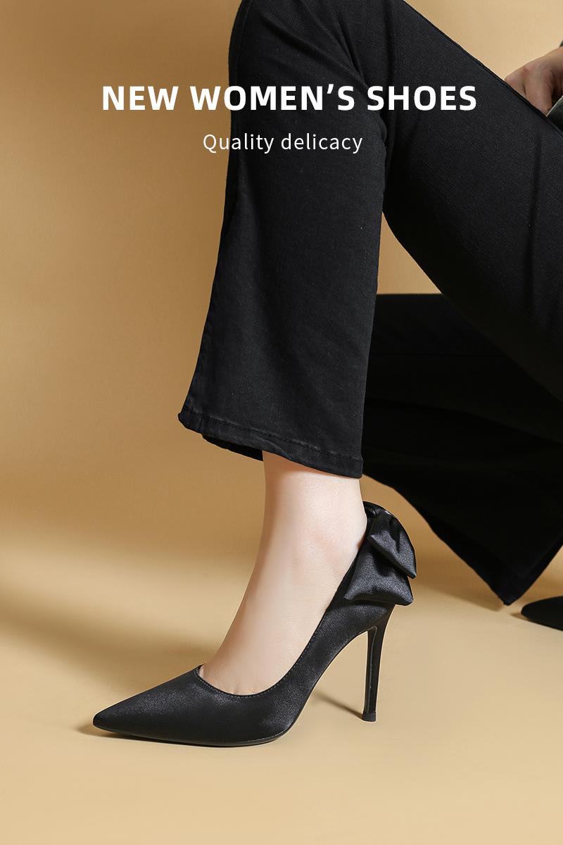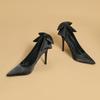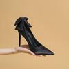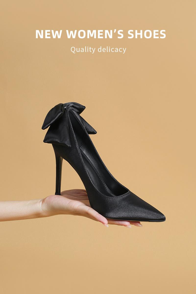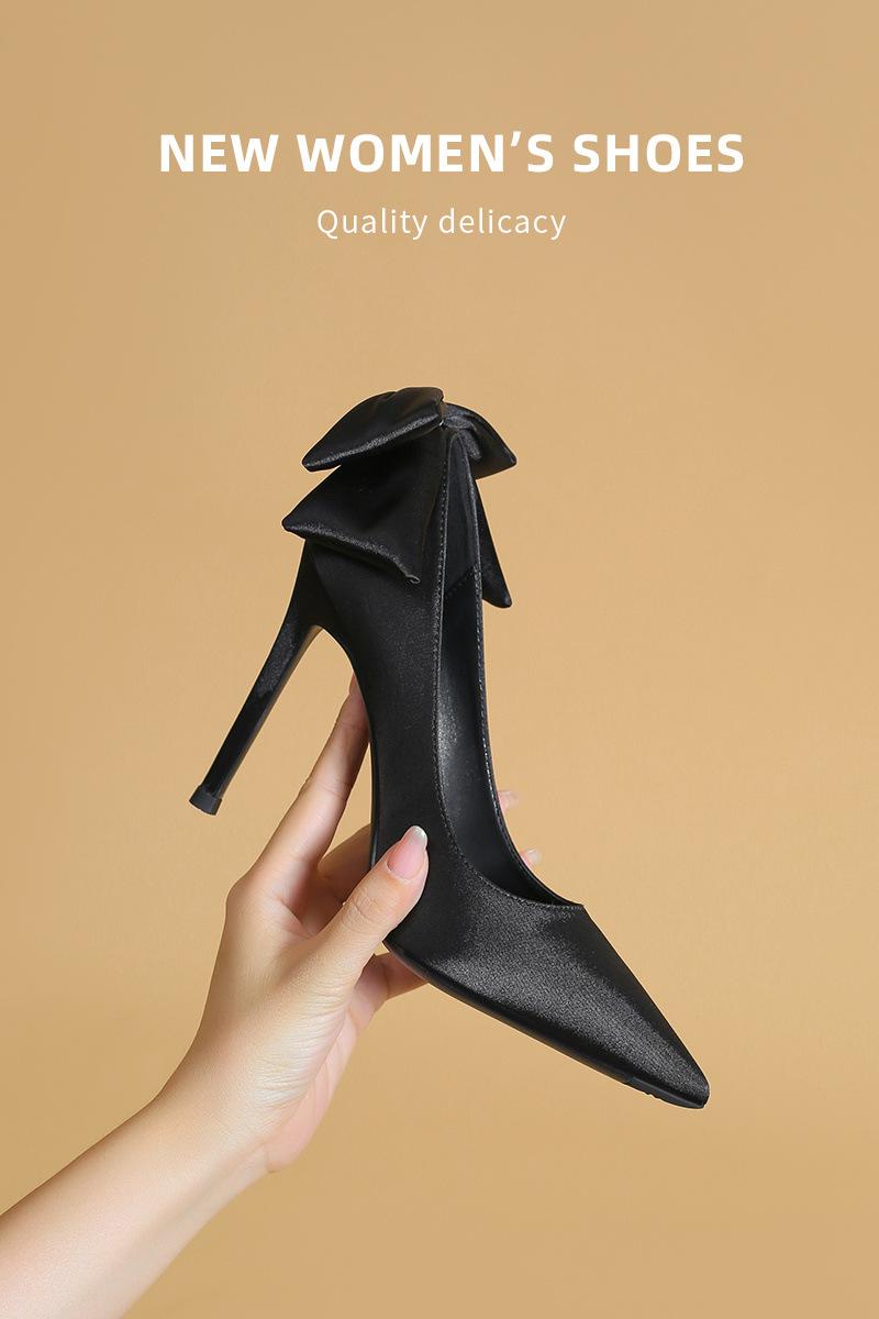Zapatos de novia negros de tacón alto de aguja puro para mujer, con lazo para dama de honor, para banquete, de doble uso, sencillos, 2024
