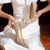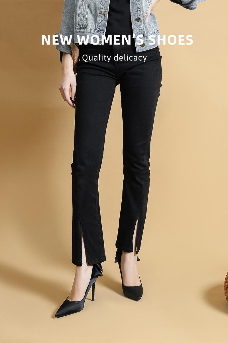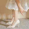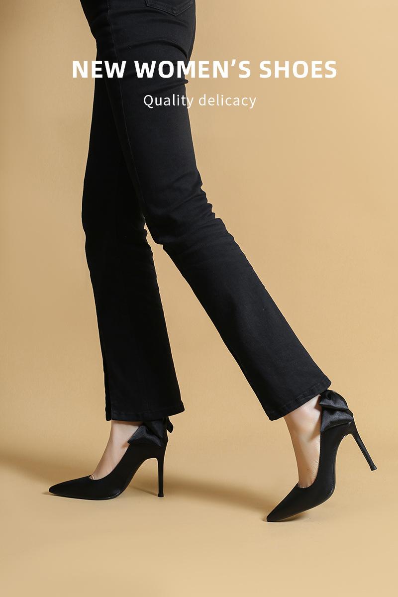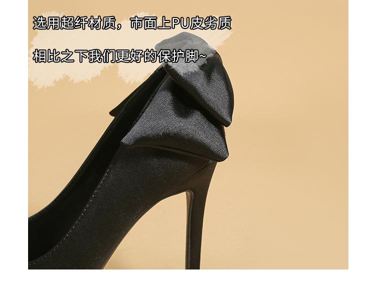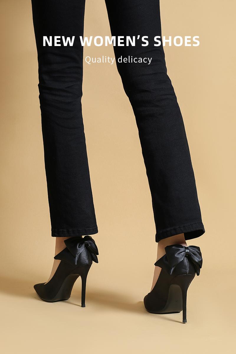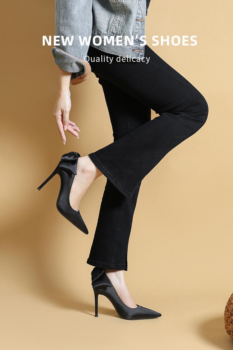 Zapatos de novia negros de tacón alto de aguja puro para mujer, con lazo para dama de honor, para banquete, de doble uso, sencillos, 2024