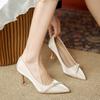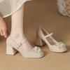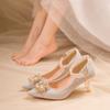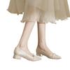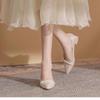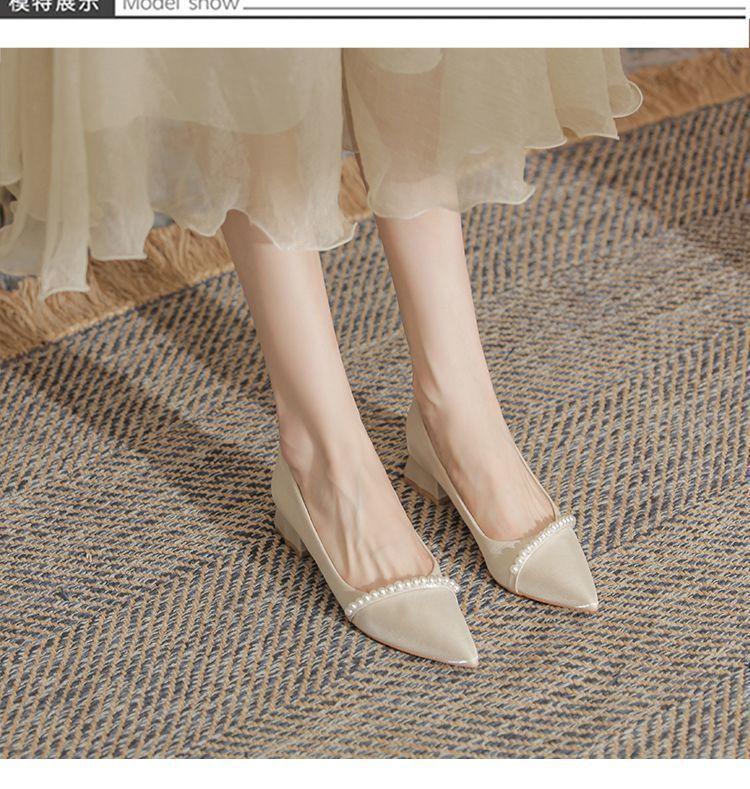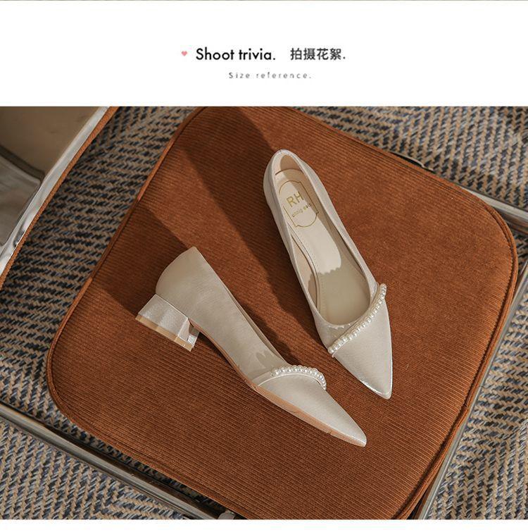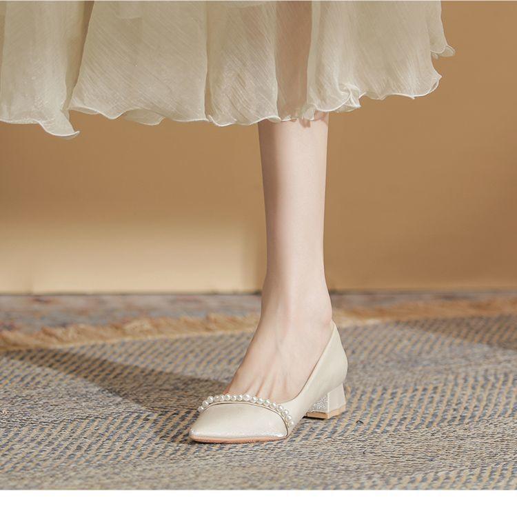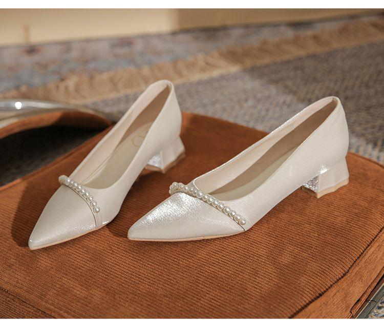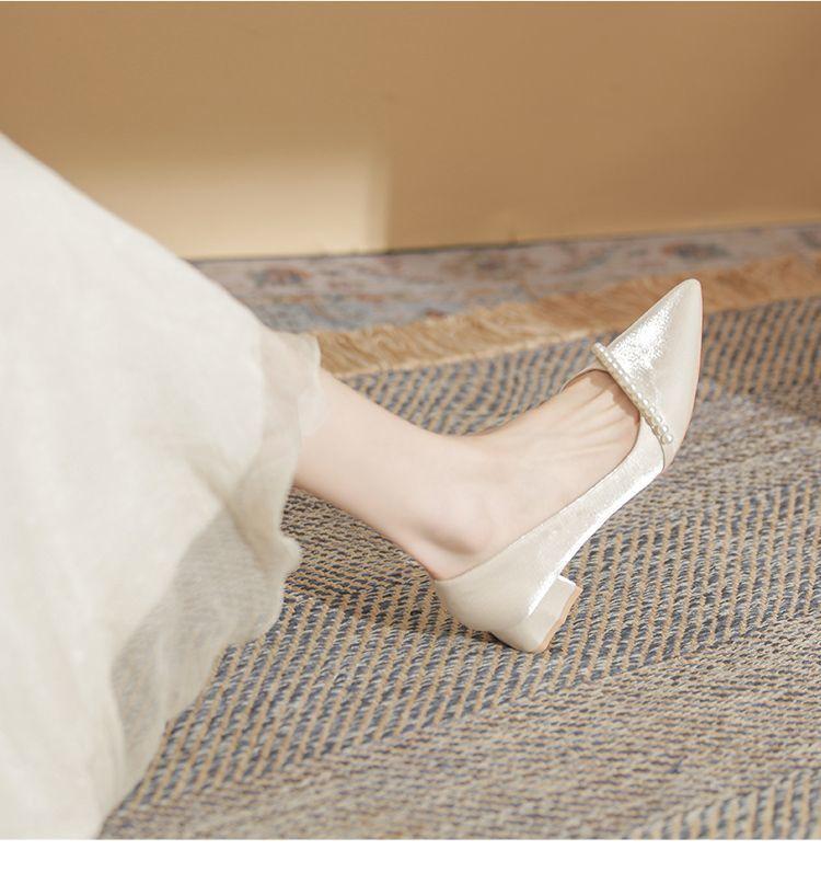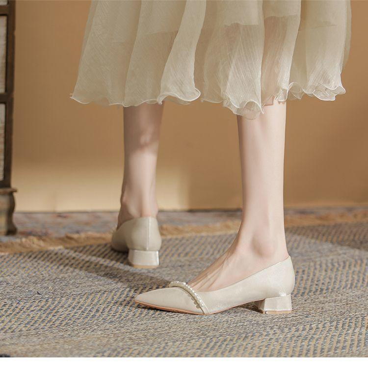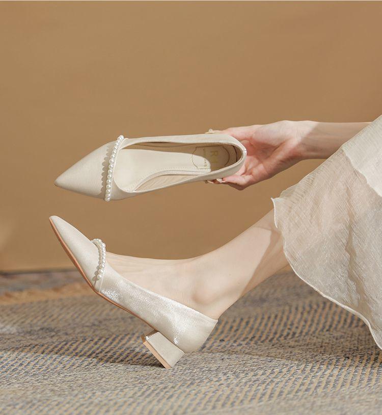 Zapatos de boda estilo francés color champán para mujer, elegantes zapatos de dama de honor con perla para ceremonia adulta, de tacón alto y una sola capa, 2024
