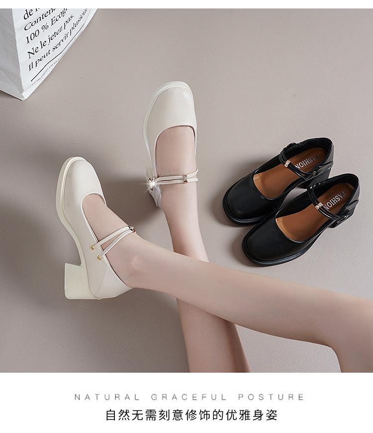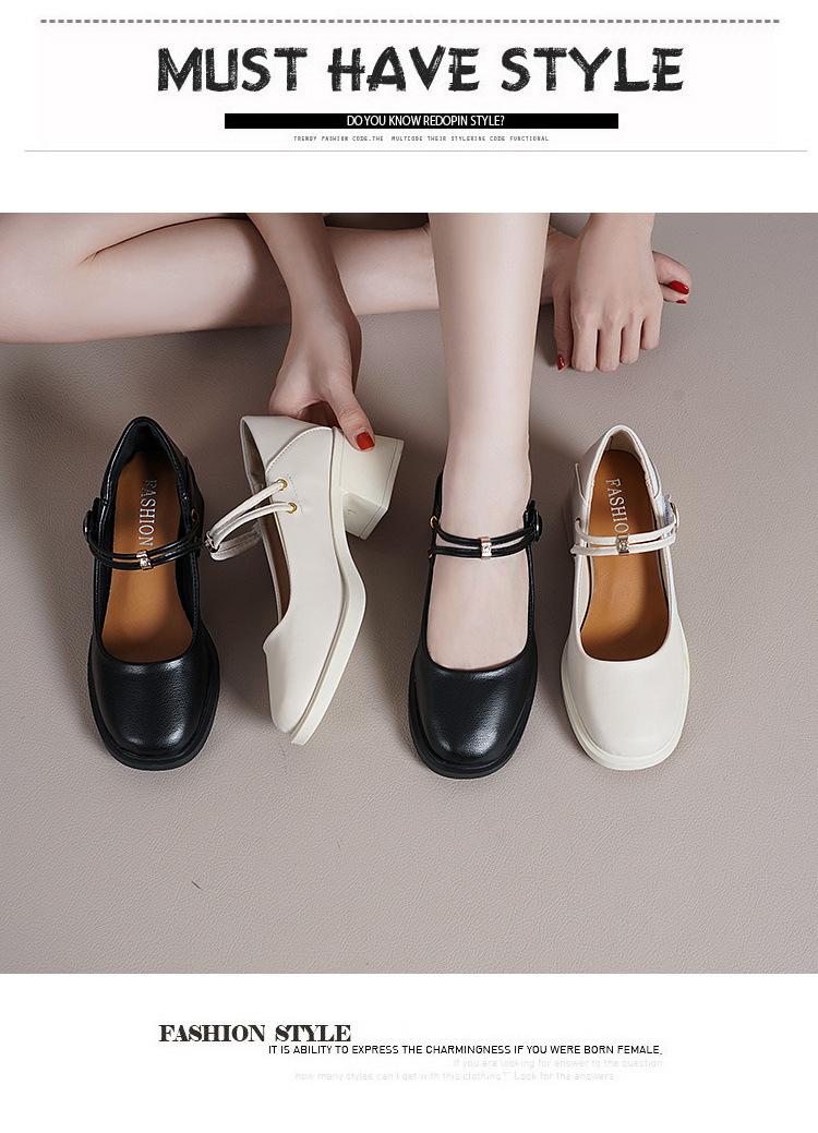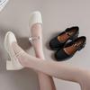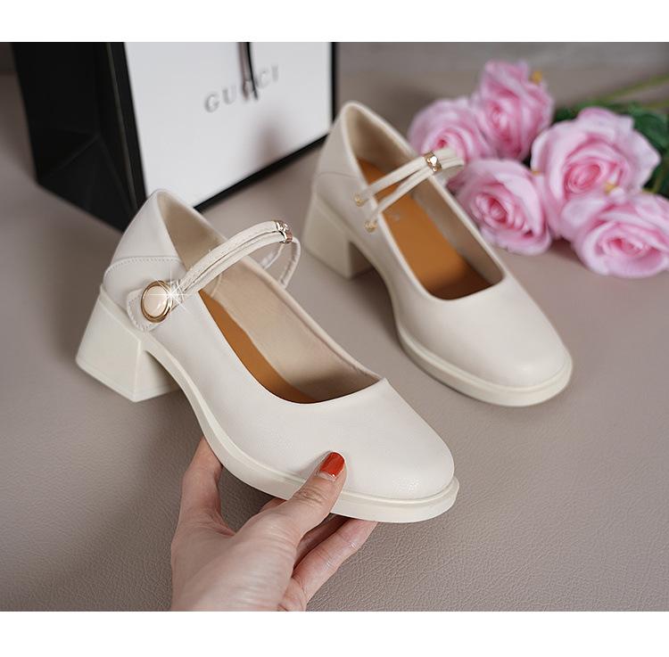 Guofeng 2024 - Zapatos Mary Jane blancos de una sola capa, mocasines cómodos y combinables para mujer, zapatos de trabajo de tacón alto y fino.